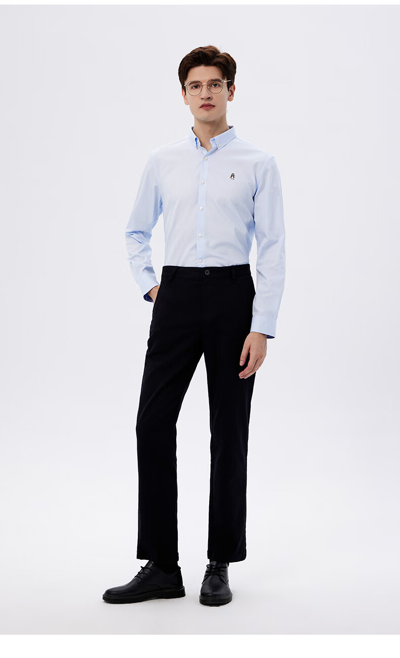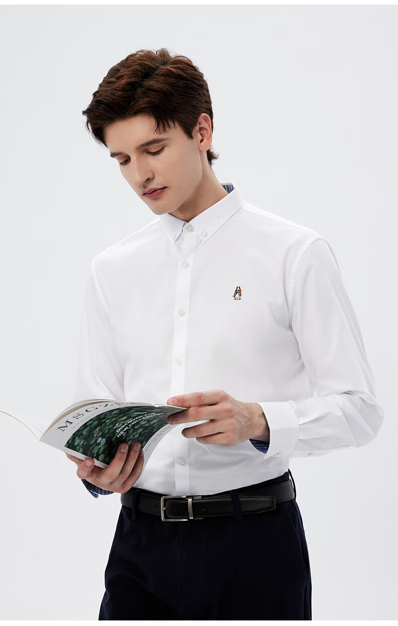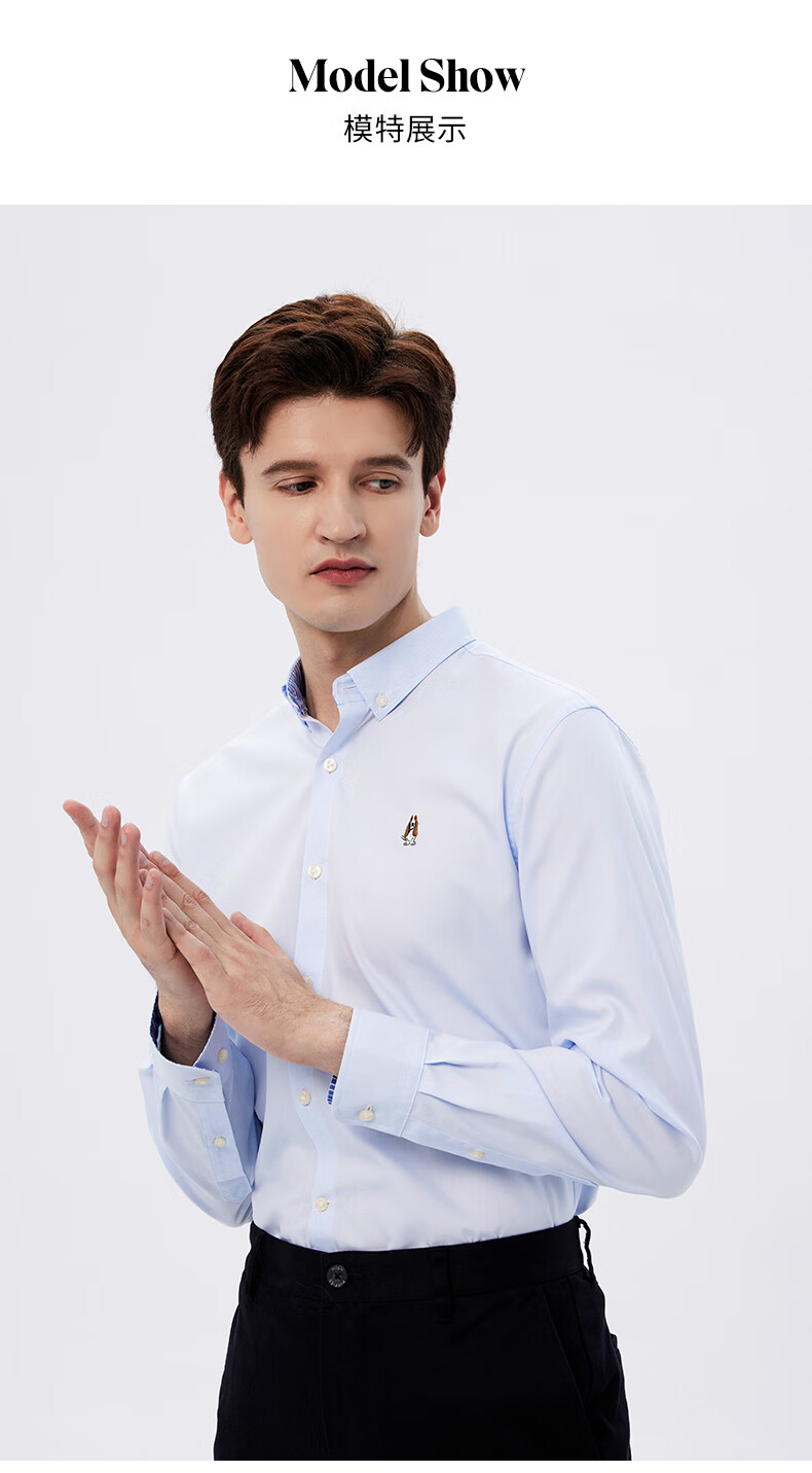 暇步士(Hush Puppies)男装春季新款纯棉基础款商务通勤休闲衬衫 025浅蓝2 L