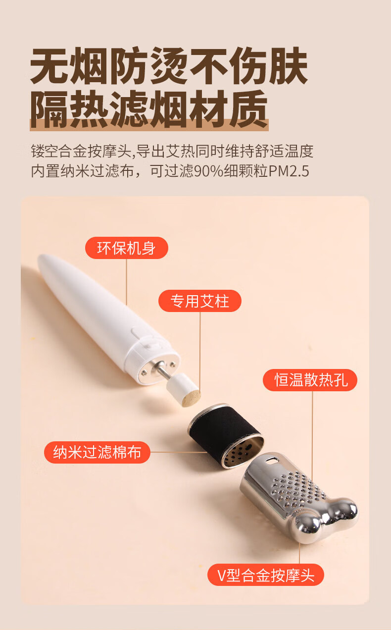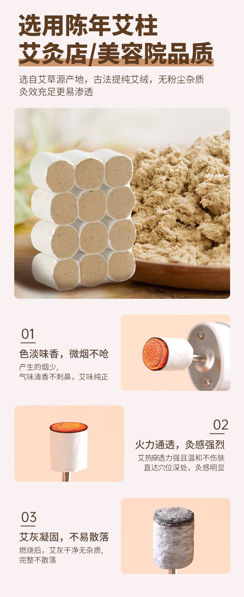 万年灵小美灸面部艾灸棒艾柱艾灸盒随身灸家用按摩刮痧熏蒸仪桃花灸器具 1.2*1.5专用艾柱60粒 正品