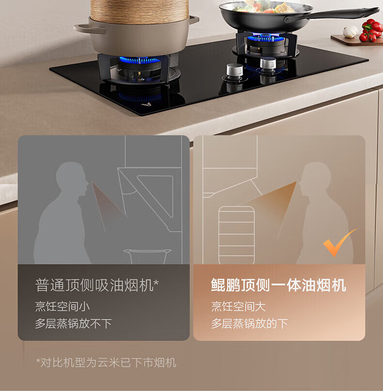 云米(VIOMI)鲲鹏抽油烟机家用厨房顶侧双吸26大吸力0缝真平嵌静音一级能效变频AI自清洁以旧换新家电烟灶联动 鲲鹏烟机+5.2KW液化气灶