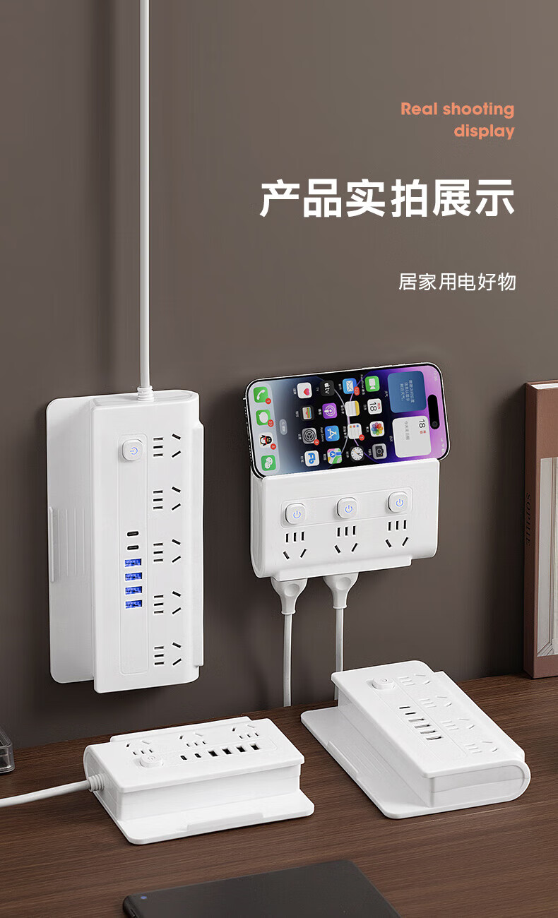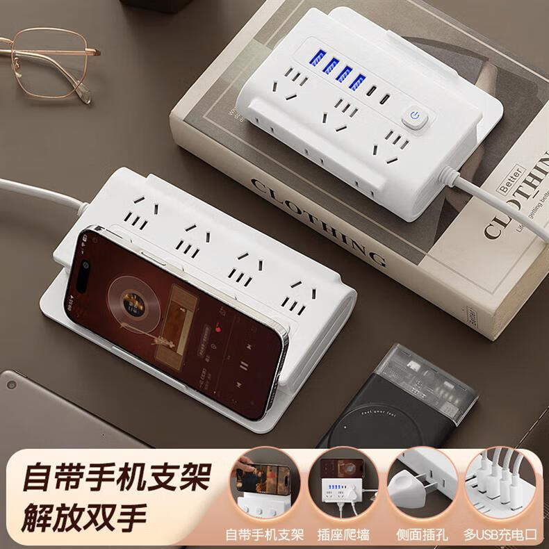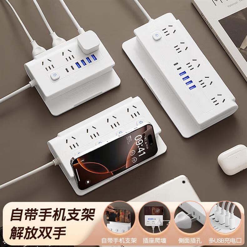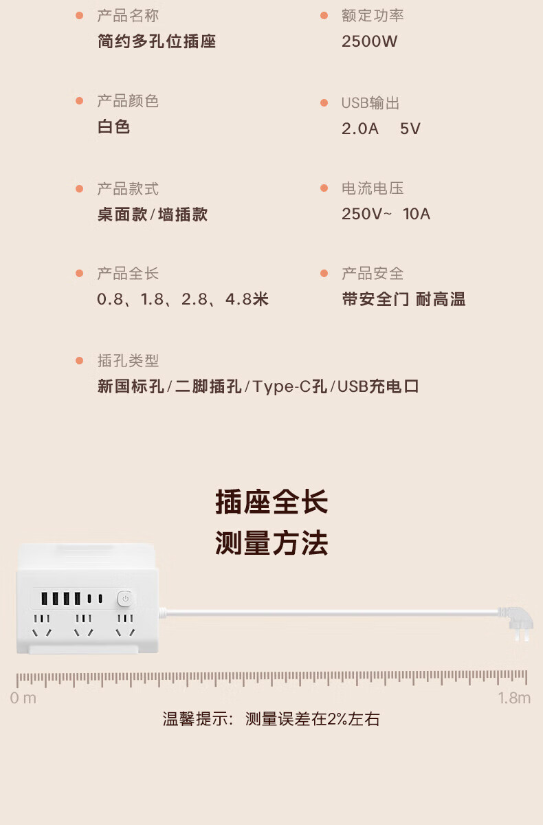 公正午纯铜插座带USB插排 耐高温可爬墙家用接线板排插/插座/插线板/接线板家用宿舍办公安全排插 八位插孔+4USB+2Type-C 2.8米