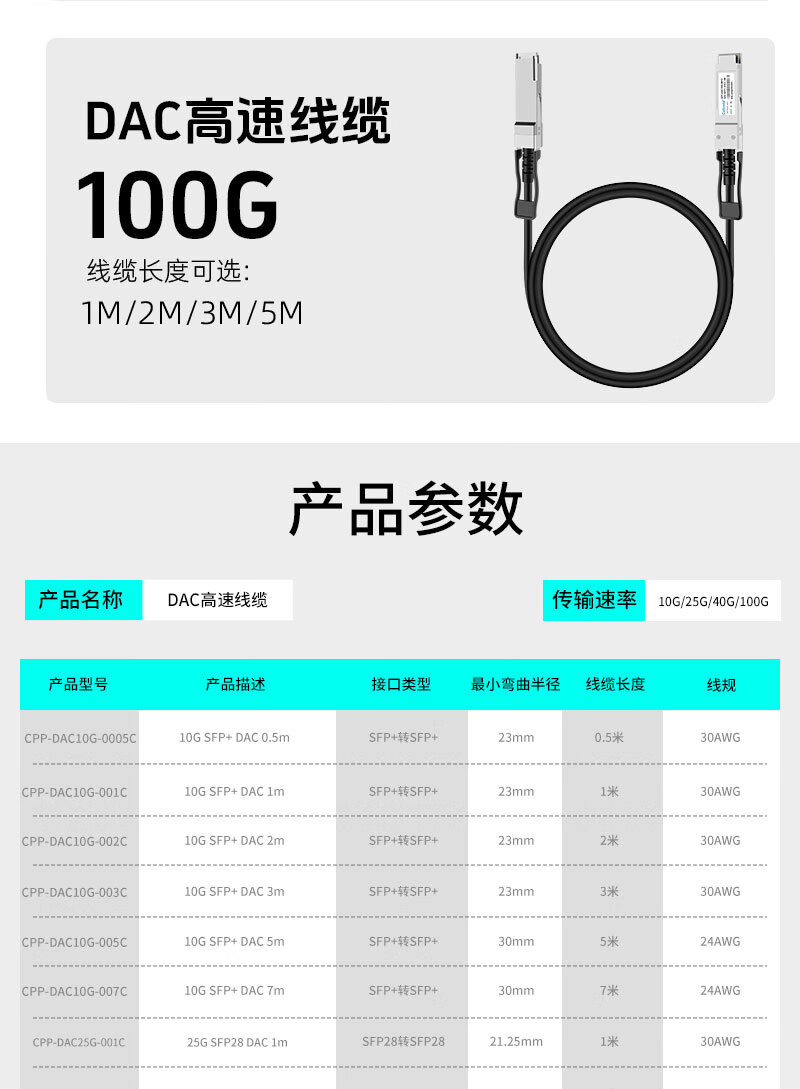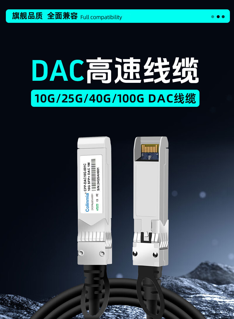 COLINMIA铜缆SFP+ DAC线缆 堆叠线 万兆直连线 SFP-10G-CU1M 1米 兼容华为/华三/思科/锐捷/TP-LINK QSFP28 100G DAC 5米