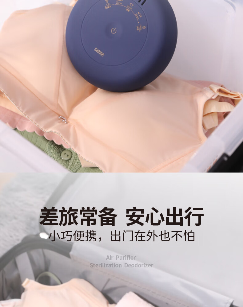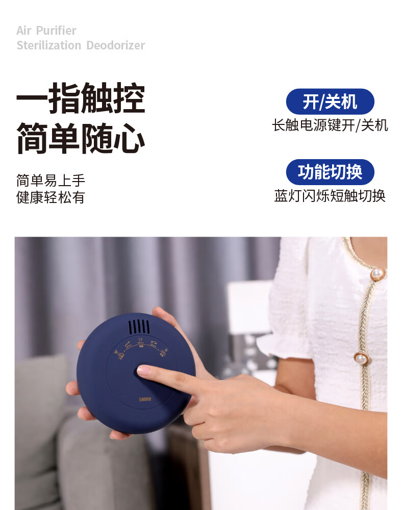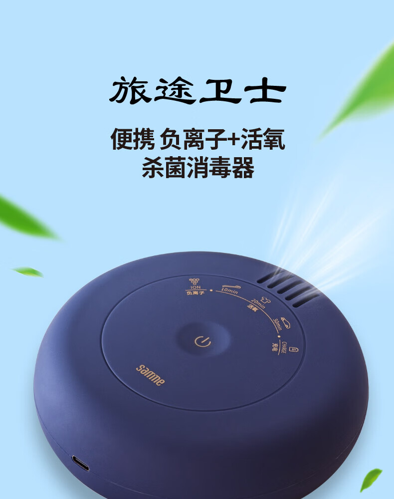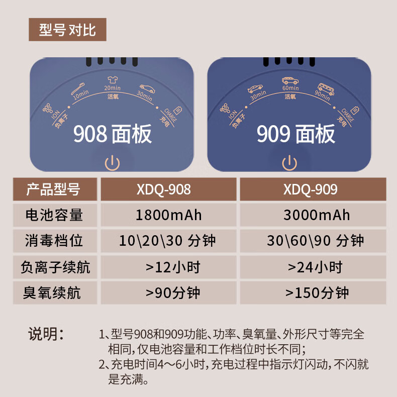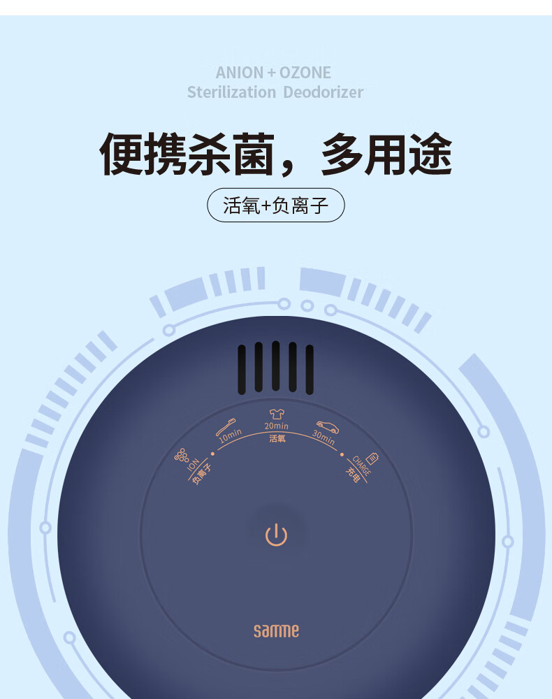 森米森米908/909便携负离子除味除甲醛车内酒店内衣消毒器高浓臭氧旅行臭氧负离子双功能充电长续航 908深蓝