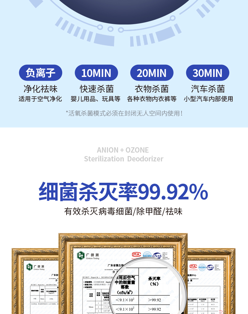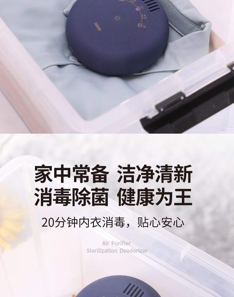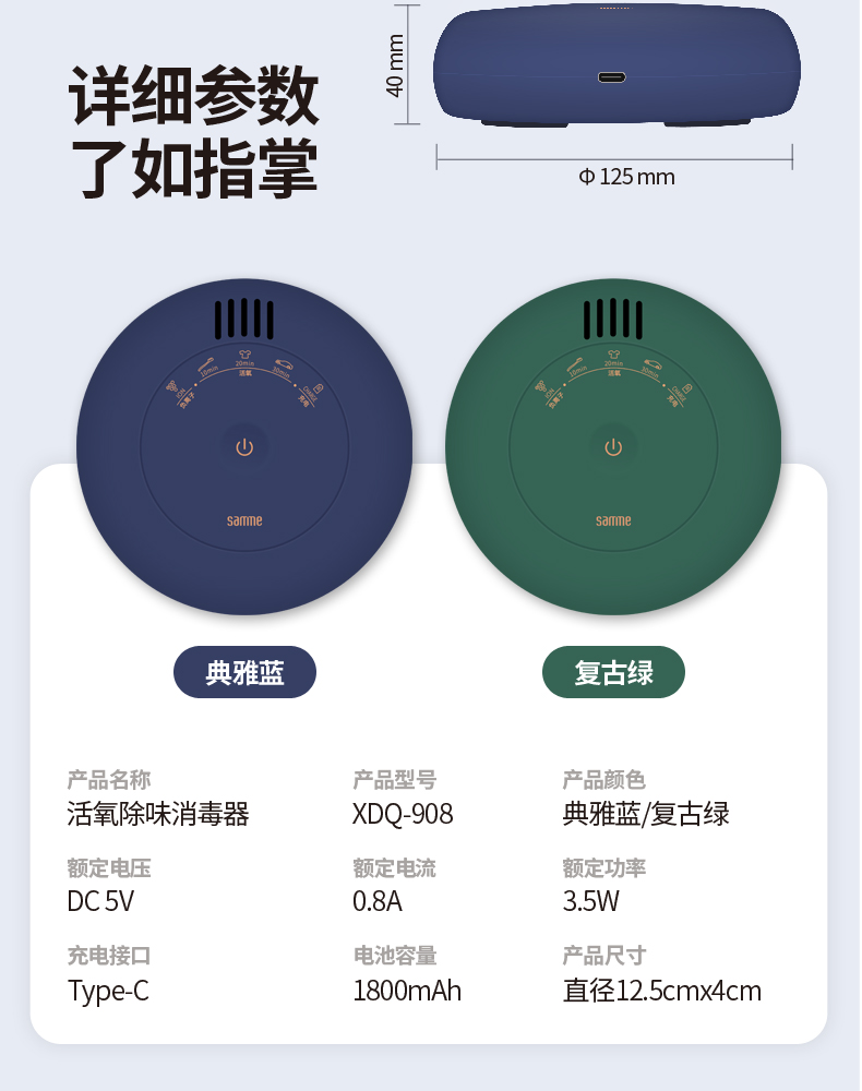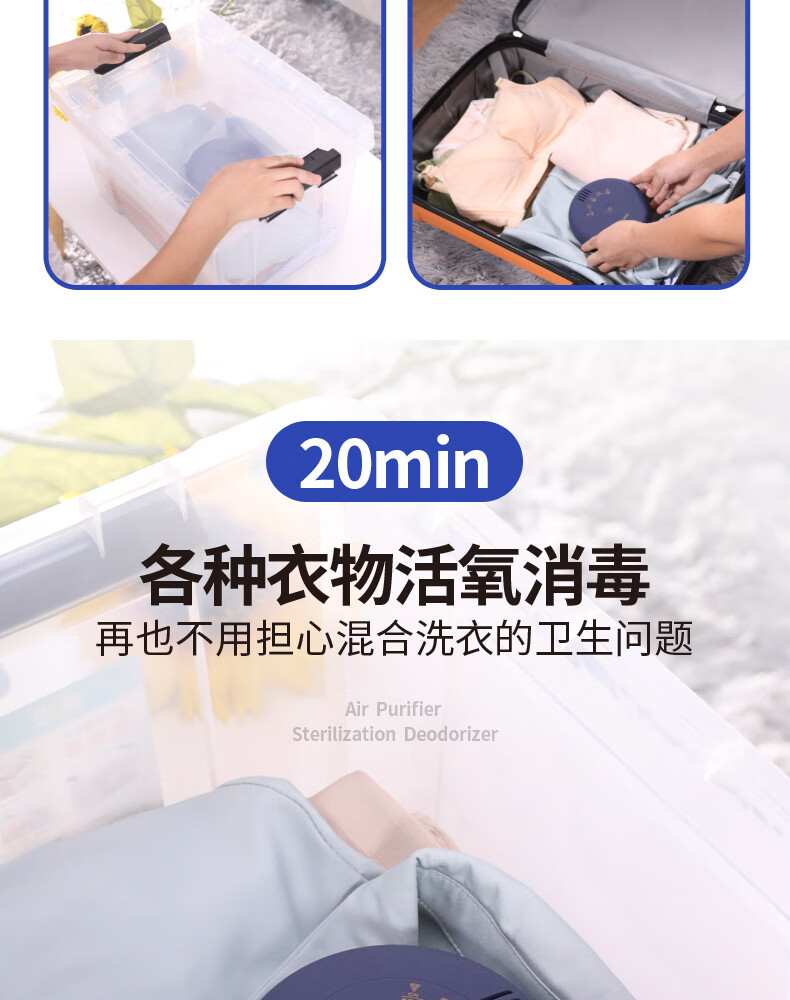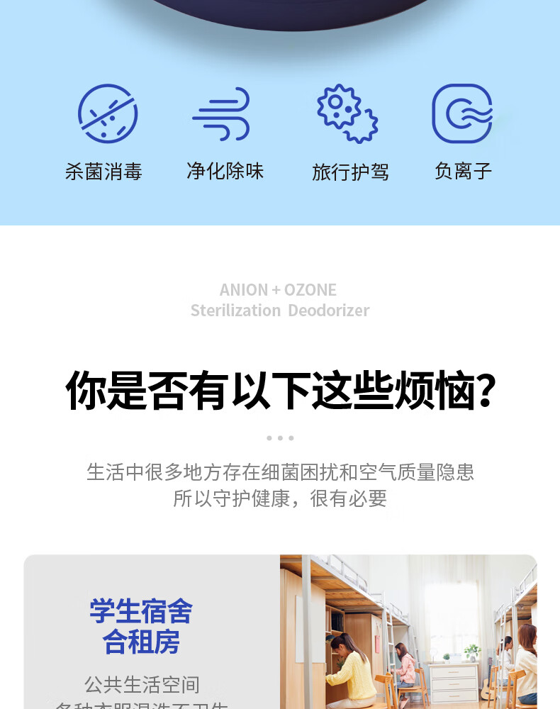 森米森米908/909便携负离子除味除甲醛车内酒店内衣消毒器高浓臭氧旅行臭氧负离子双功能充电长续航 908深蓝