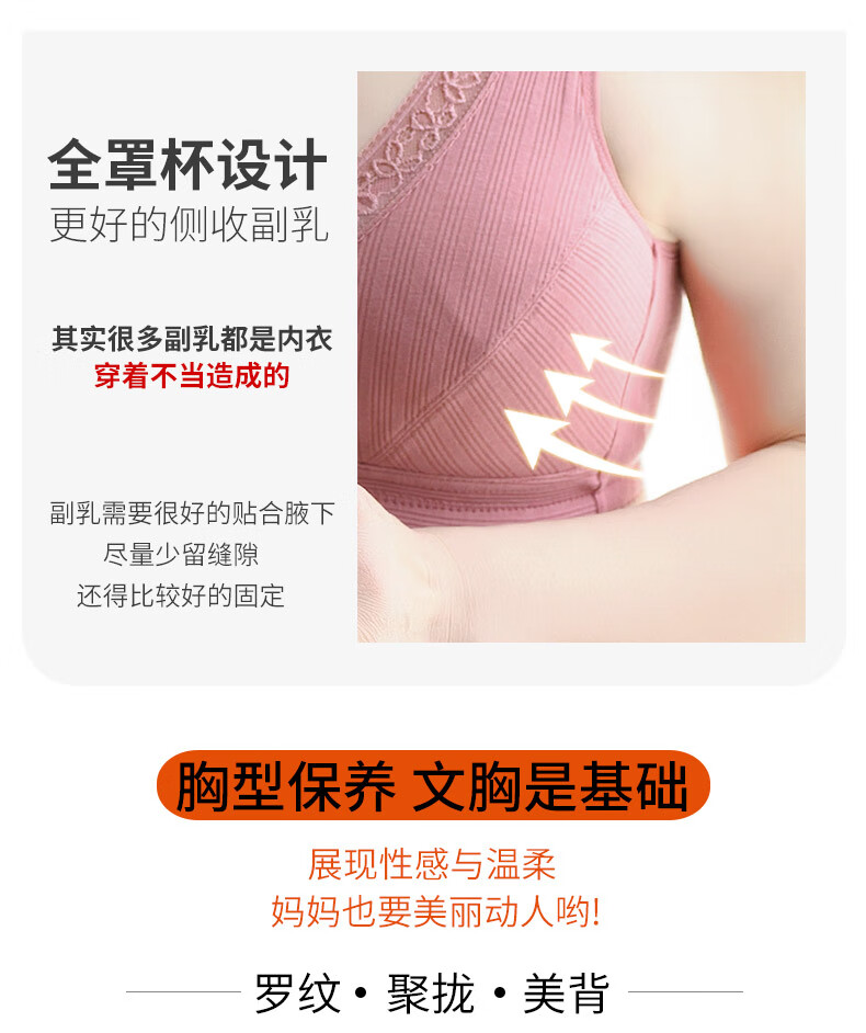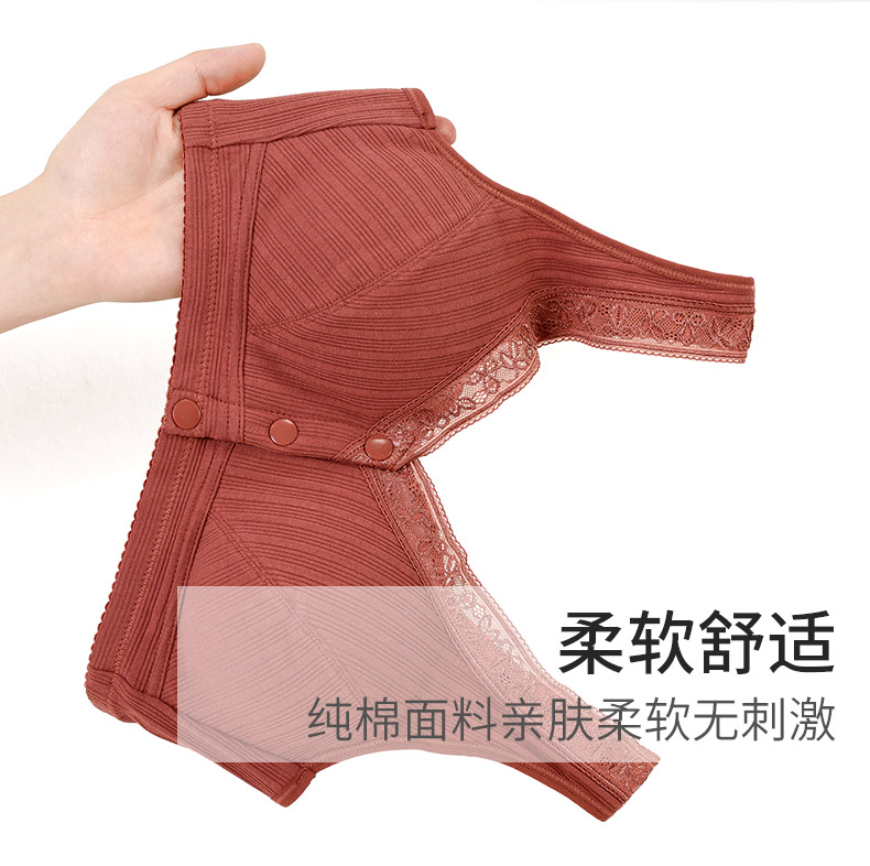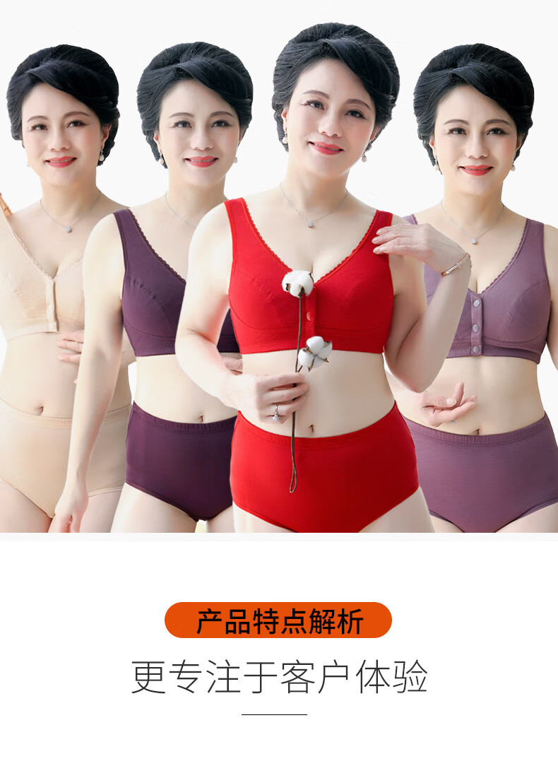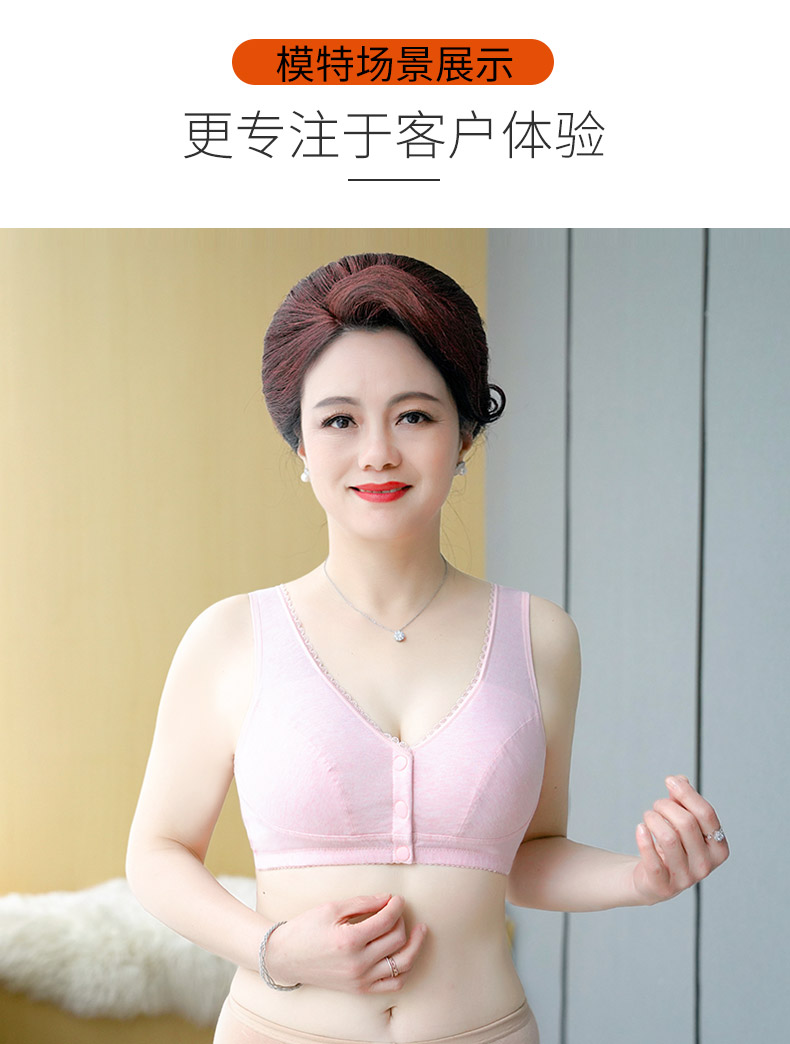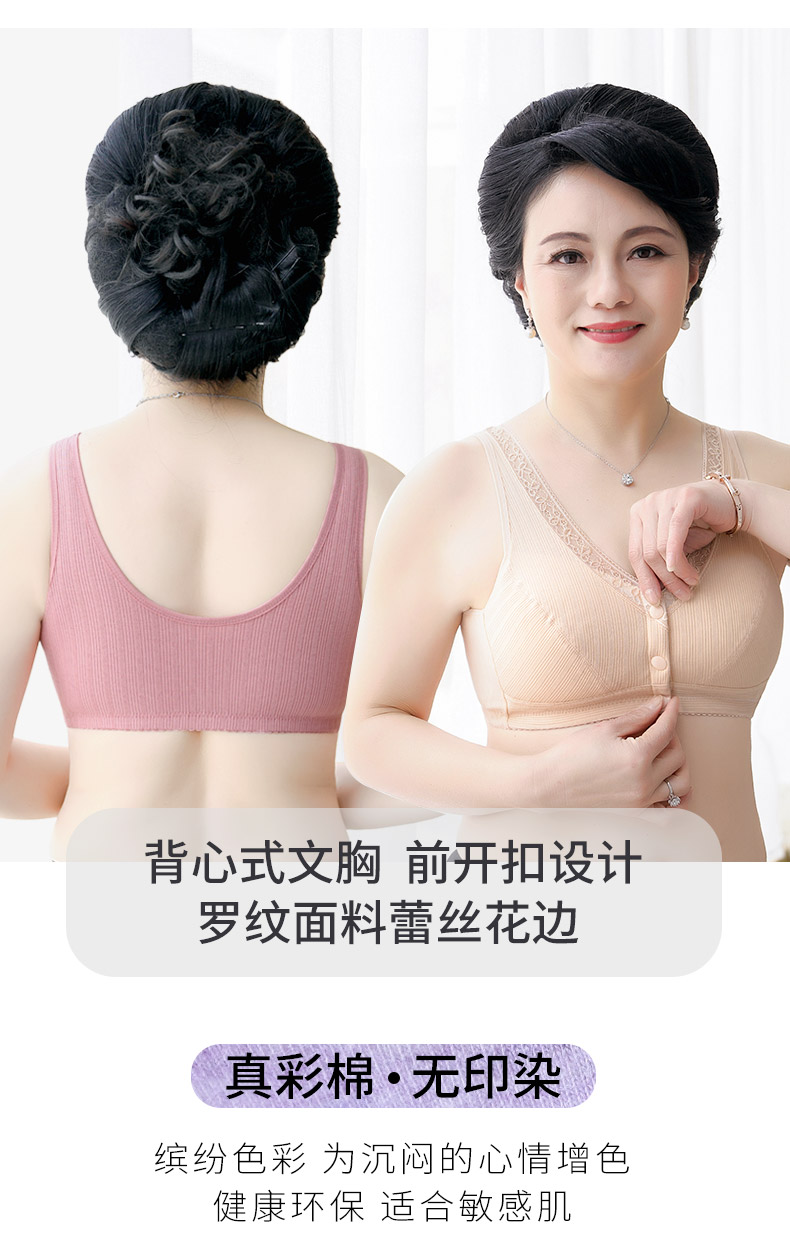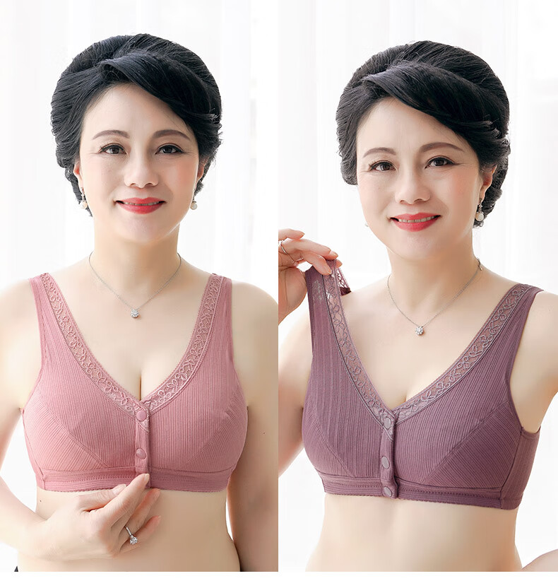 莫代尔妈妈内衣女无钢圈四季款纯棉中老年50岁老人背心式全棉胸罩大码前扣文胸 两件装 8059( 浅紫+麻灰 ) 42/95(BCD通用杯)