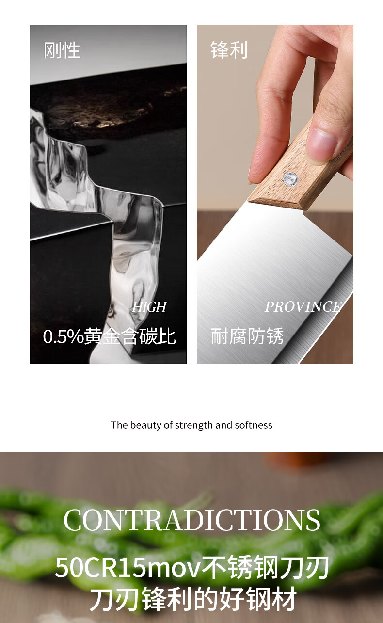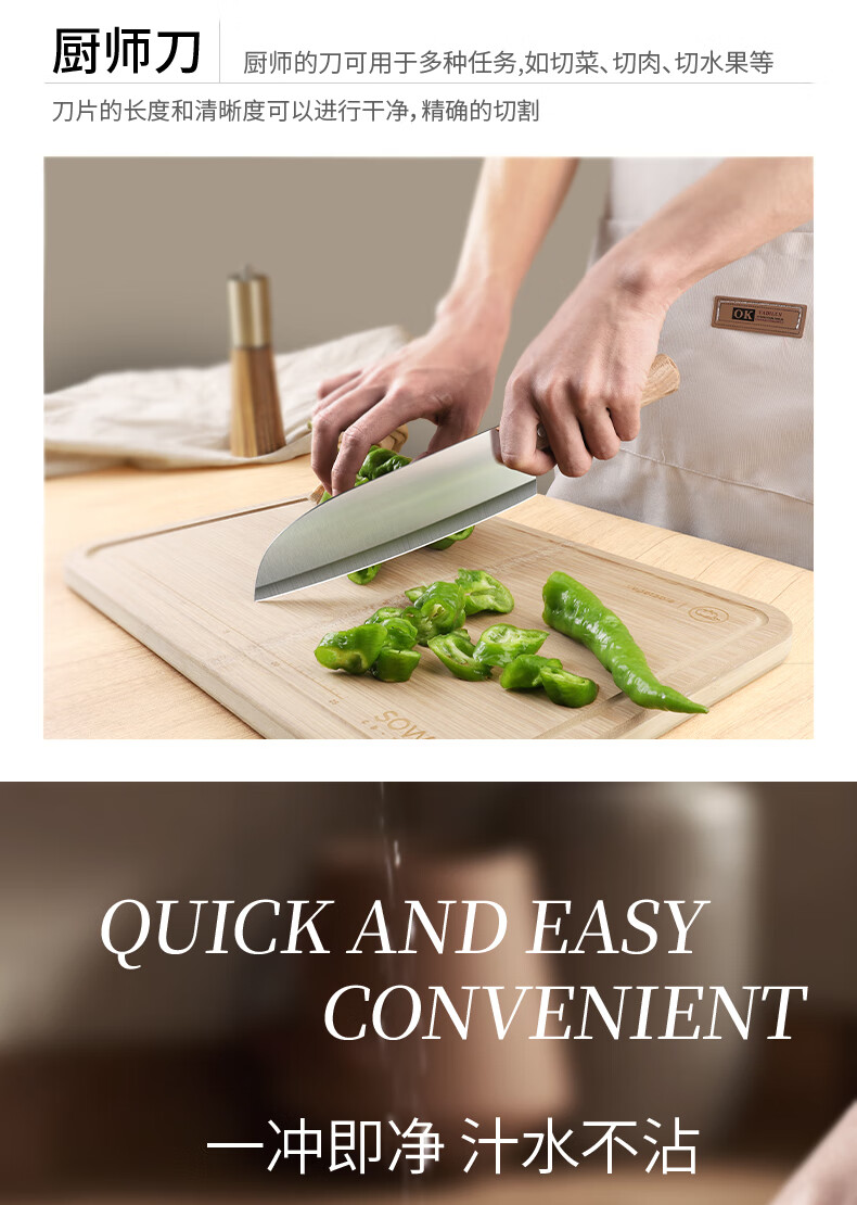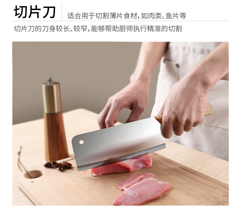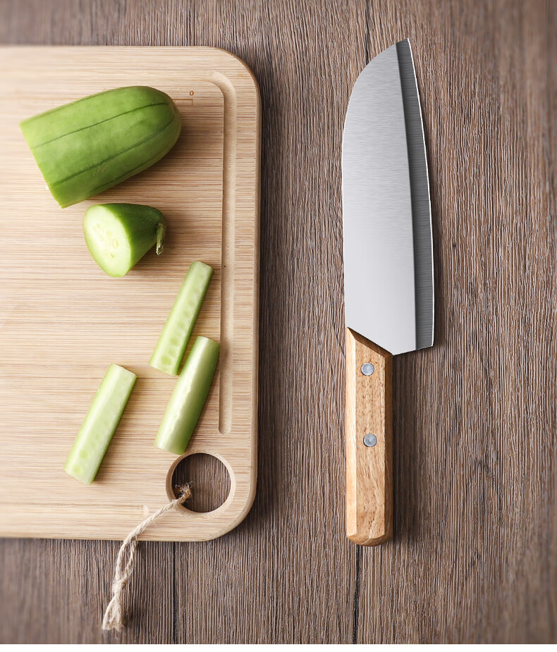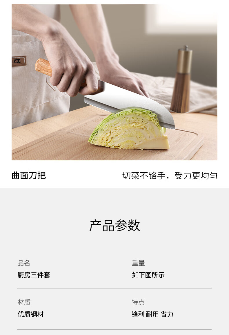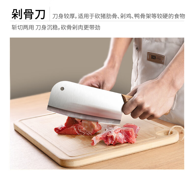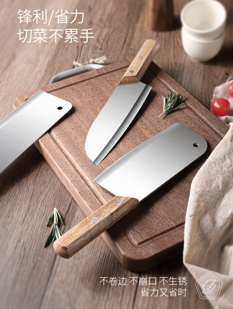 菜刀家用套装切菜刀菜板二合一厨房专用刀具宿舍砧板厨具组合锋利 圆尾木柄厨师刀