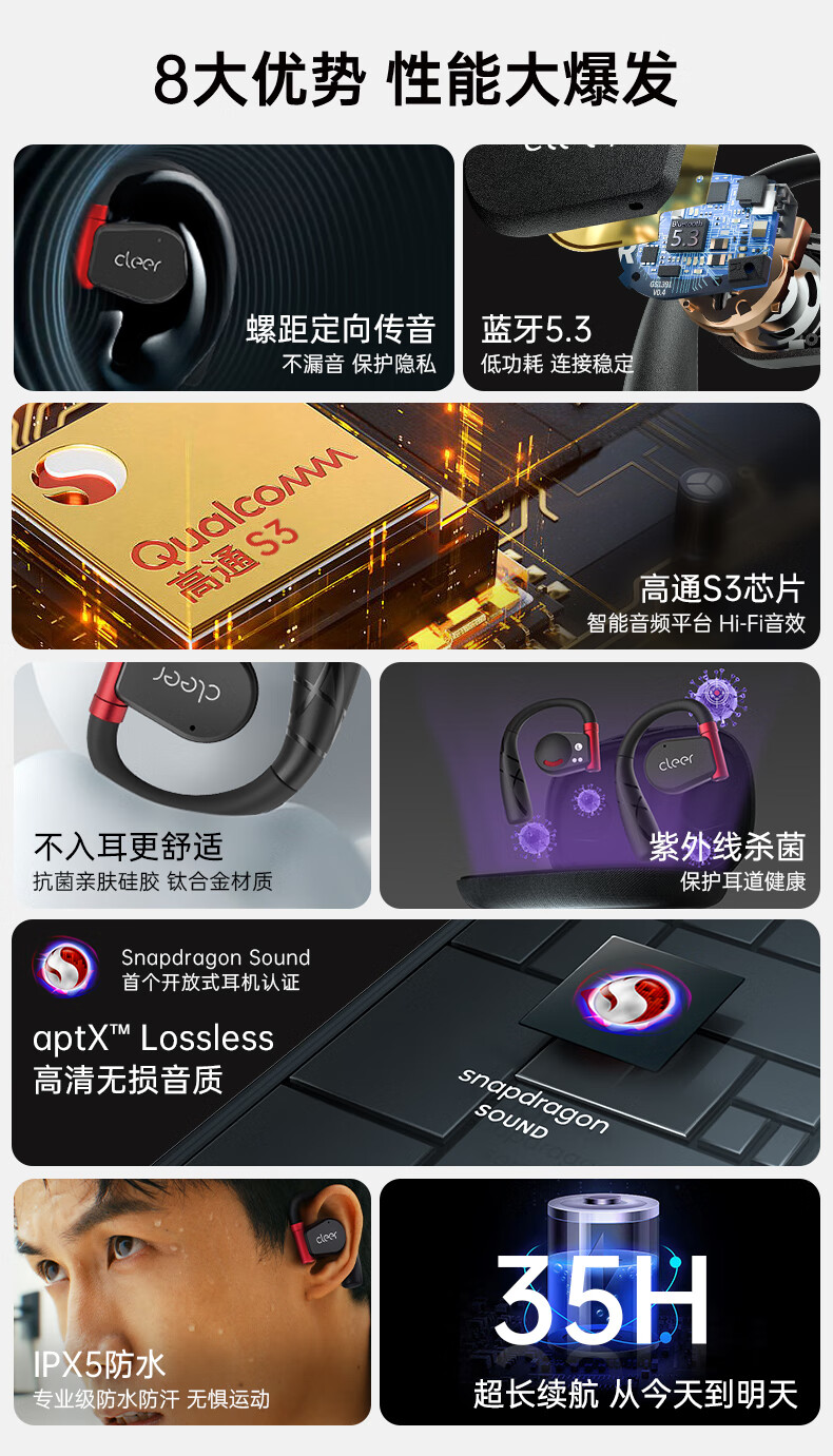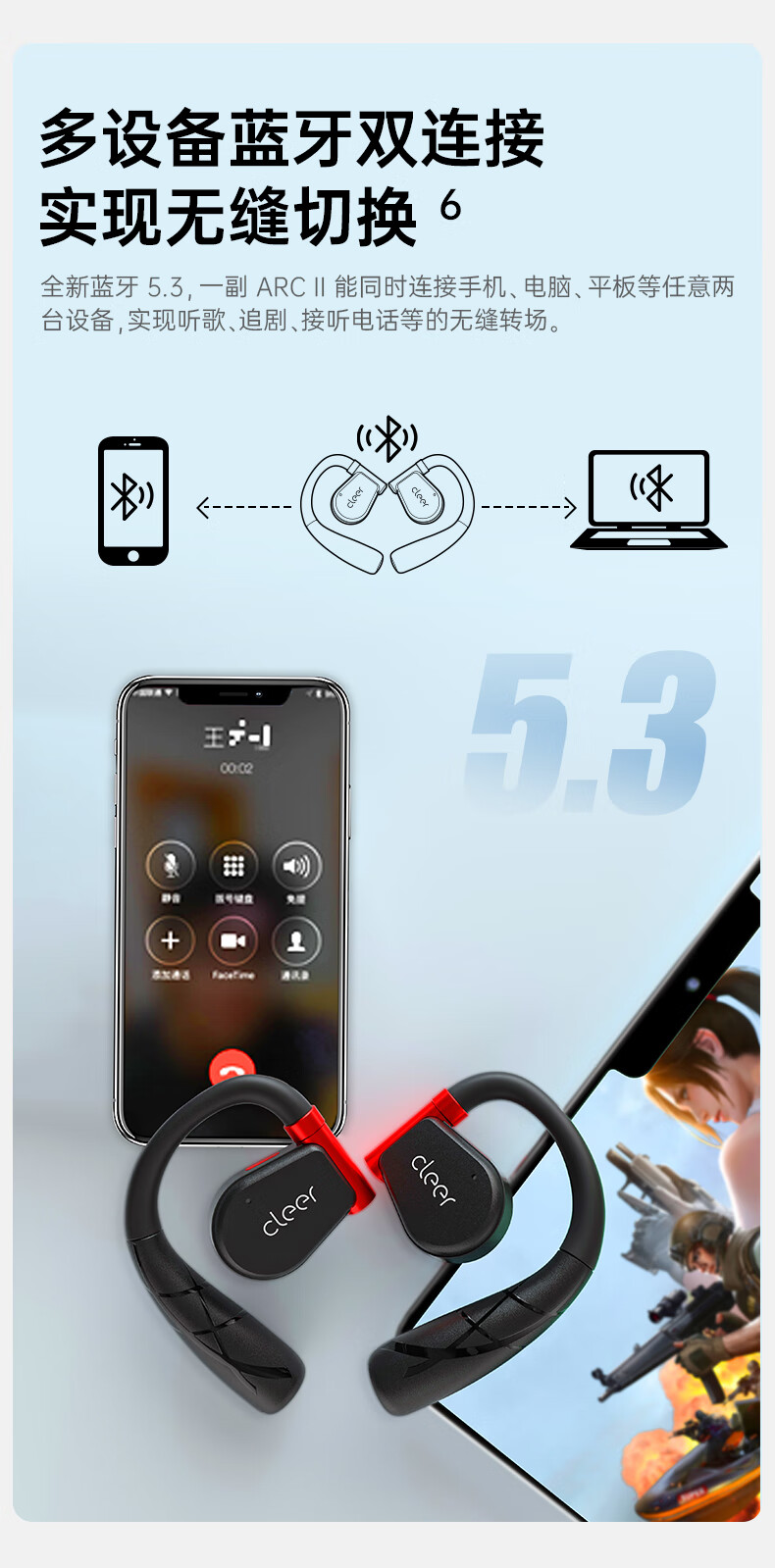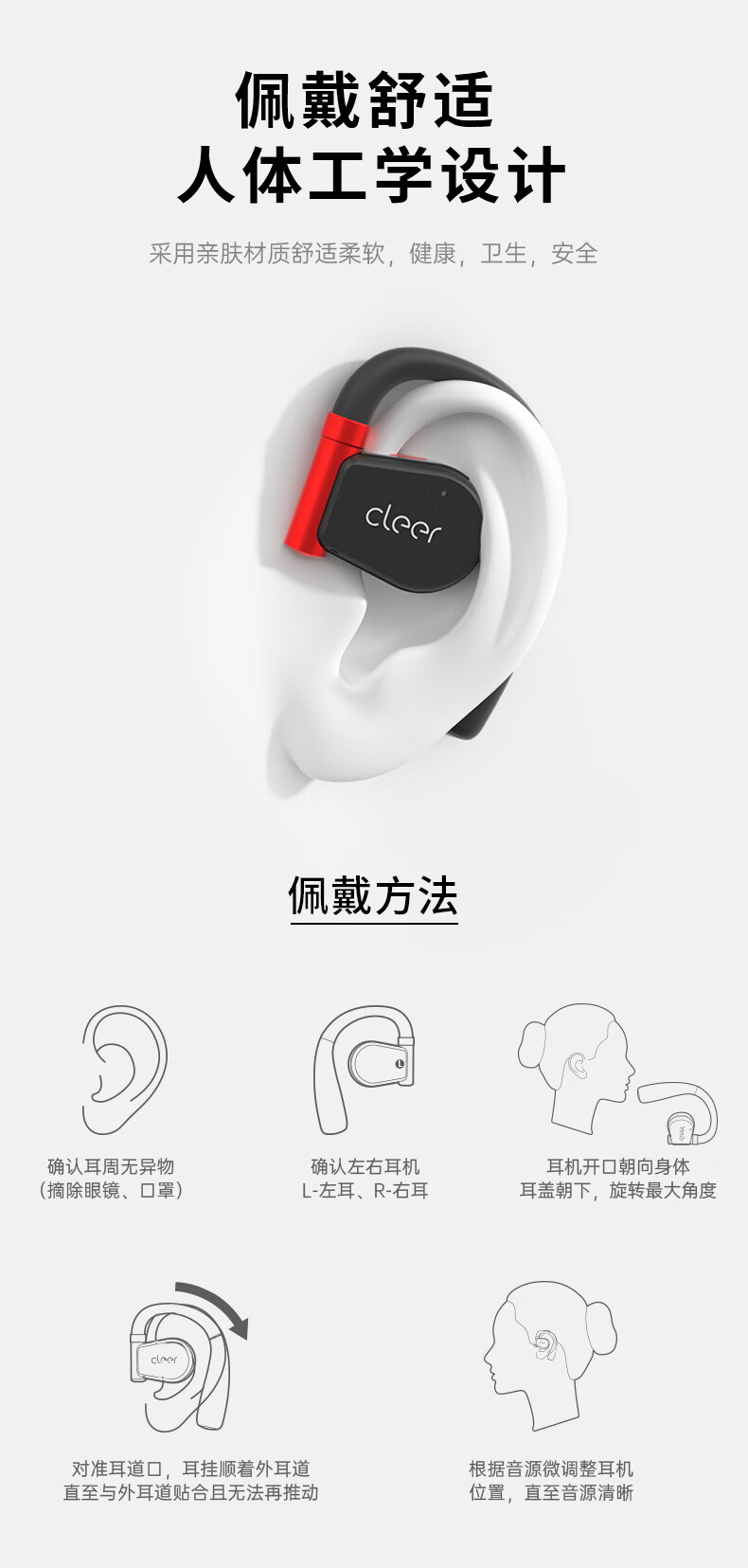cleer郎朗推荐ARC1代音弧无线蓝牙运动跑步夹耳耳机骑行骨传导升级开放挂耳式气传耳麦开学礼物适配华为 海沙白【升级款-续航18H】