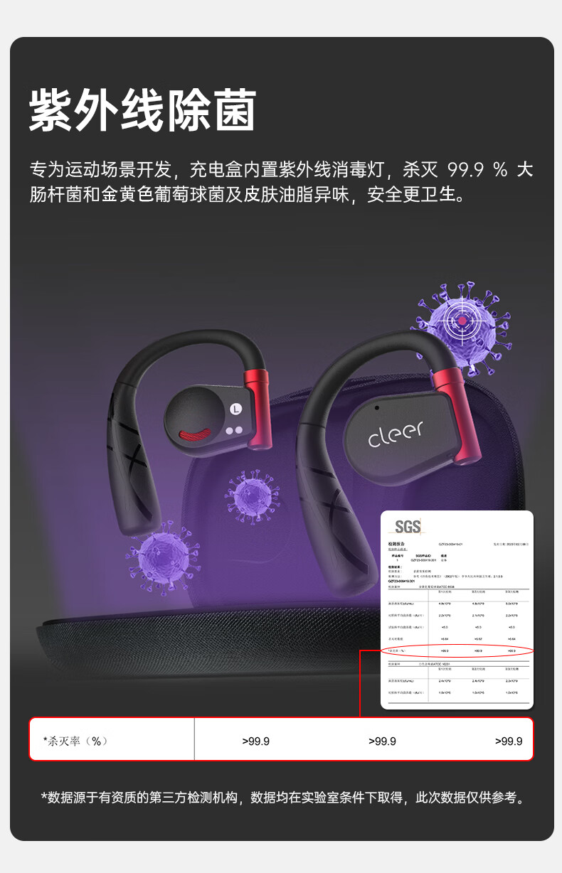 cleer任贤齐推荐高音质ARC2代不入耳开放式骨传导升级技术挂耳式运动智能无线蓝牙耳机适配华为苹果小米 粉红色【运动版】