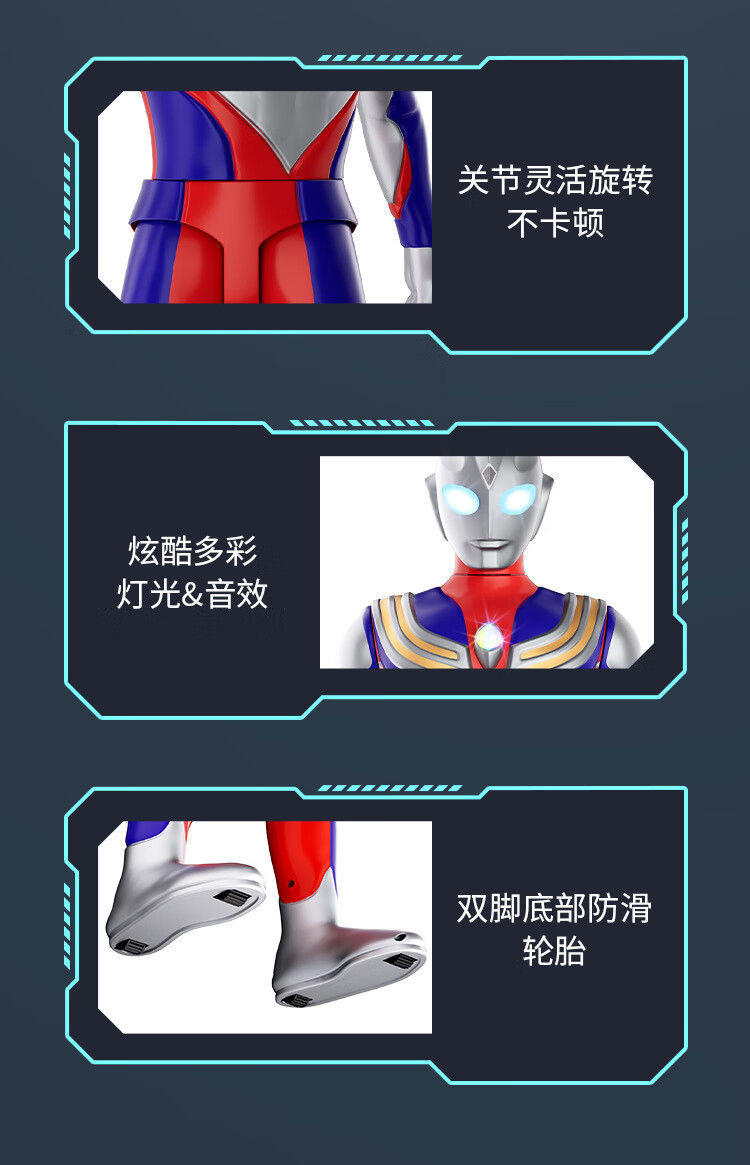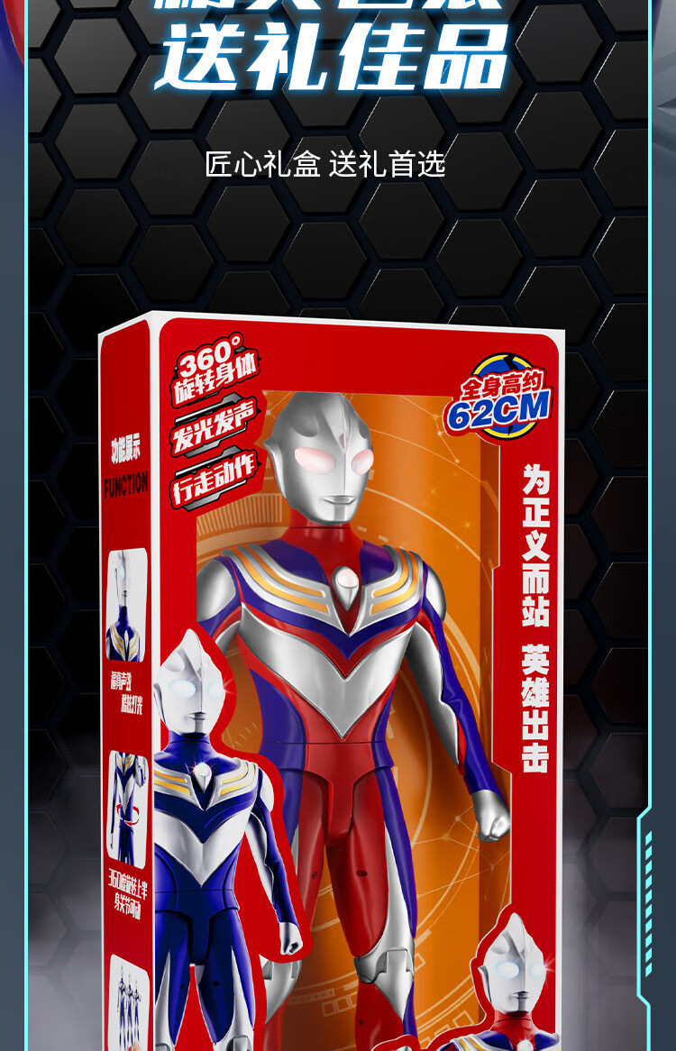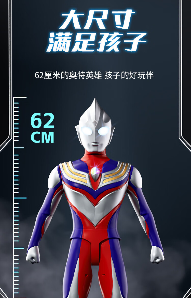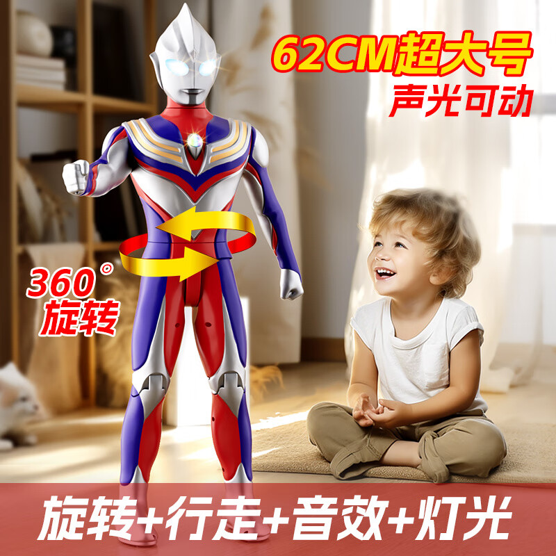 博纳思超大号奥特漫迪迦会走路说话旋转发光发声奥特漫玩具男孩生日礼物 关节可动可旋转灯光音乐行走精美 睫德奥特电池款精美礼盒小号55CM