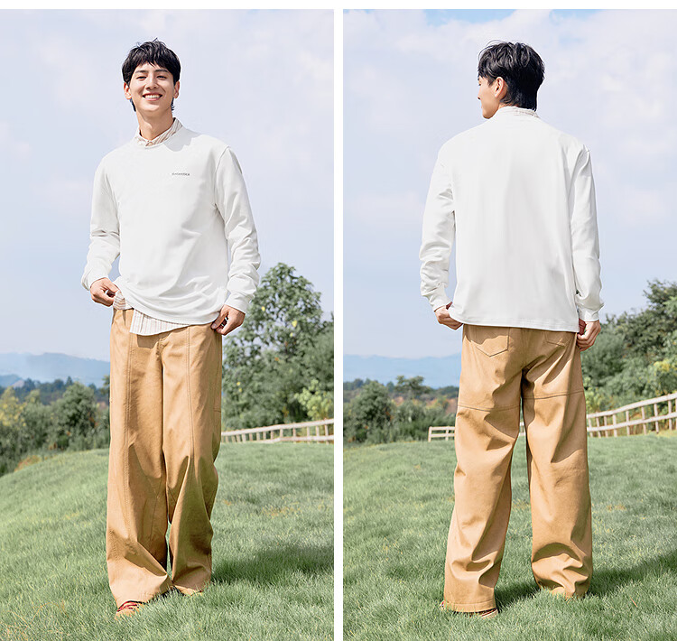 NASA BASE条纹裤子男士秋季美式宽松直筒垂感抗皱阔腿裤男生潮牌运动休闲裤 2358-卡其 2XL