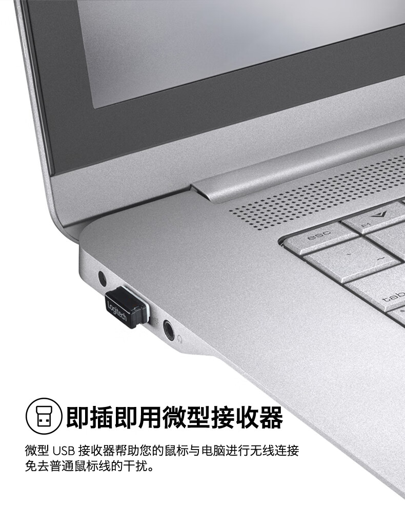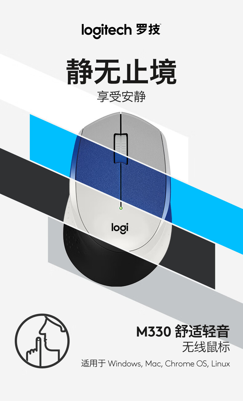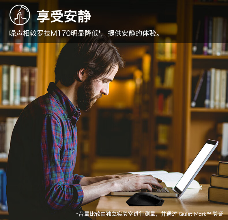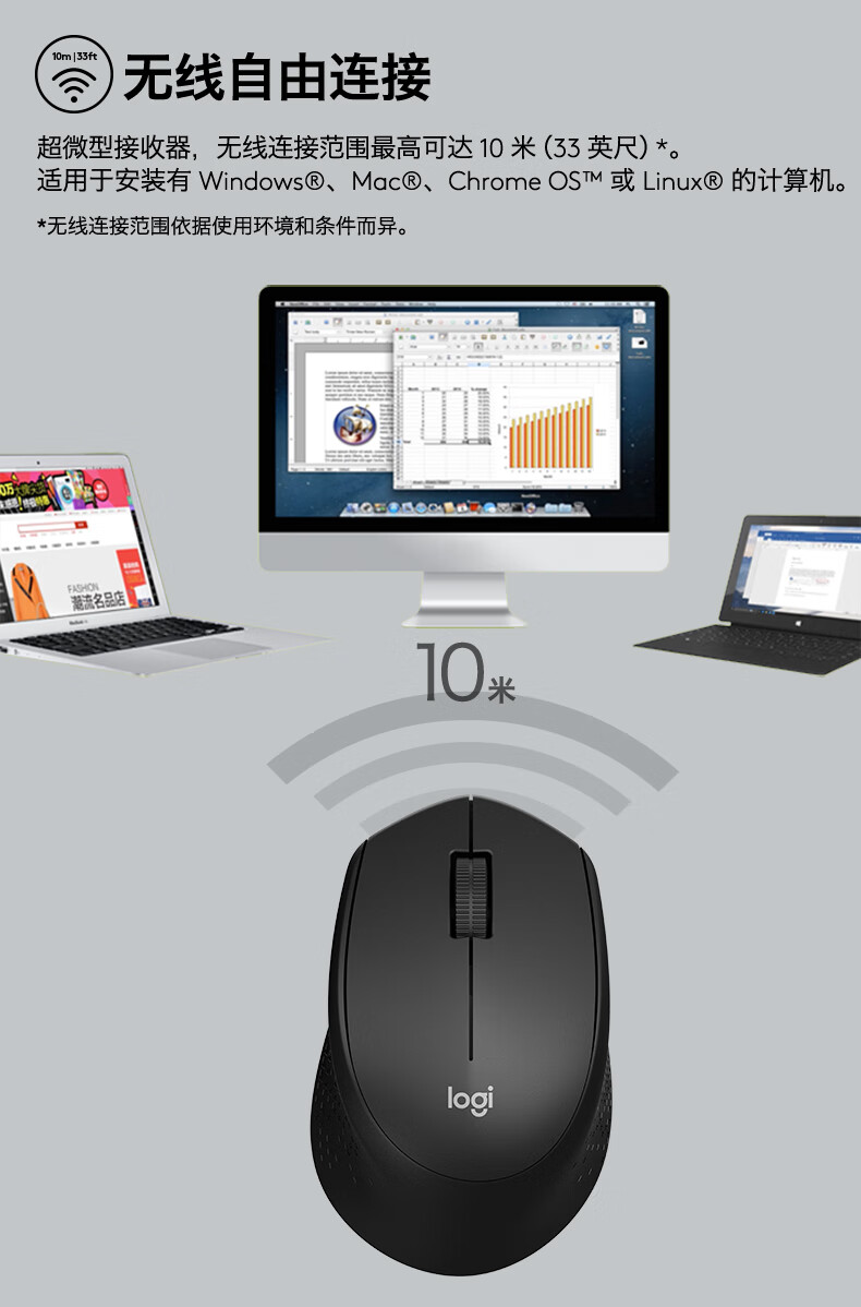 罗技(Logitech)M330 静音鼠标 无线鼠标 办公鼠标 右手鼠标 带无线微型接收器 黑色