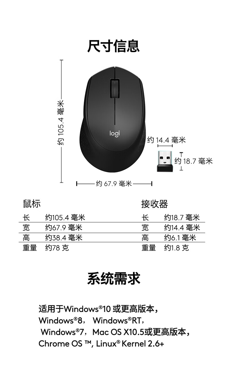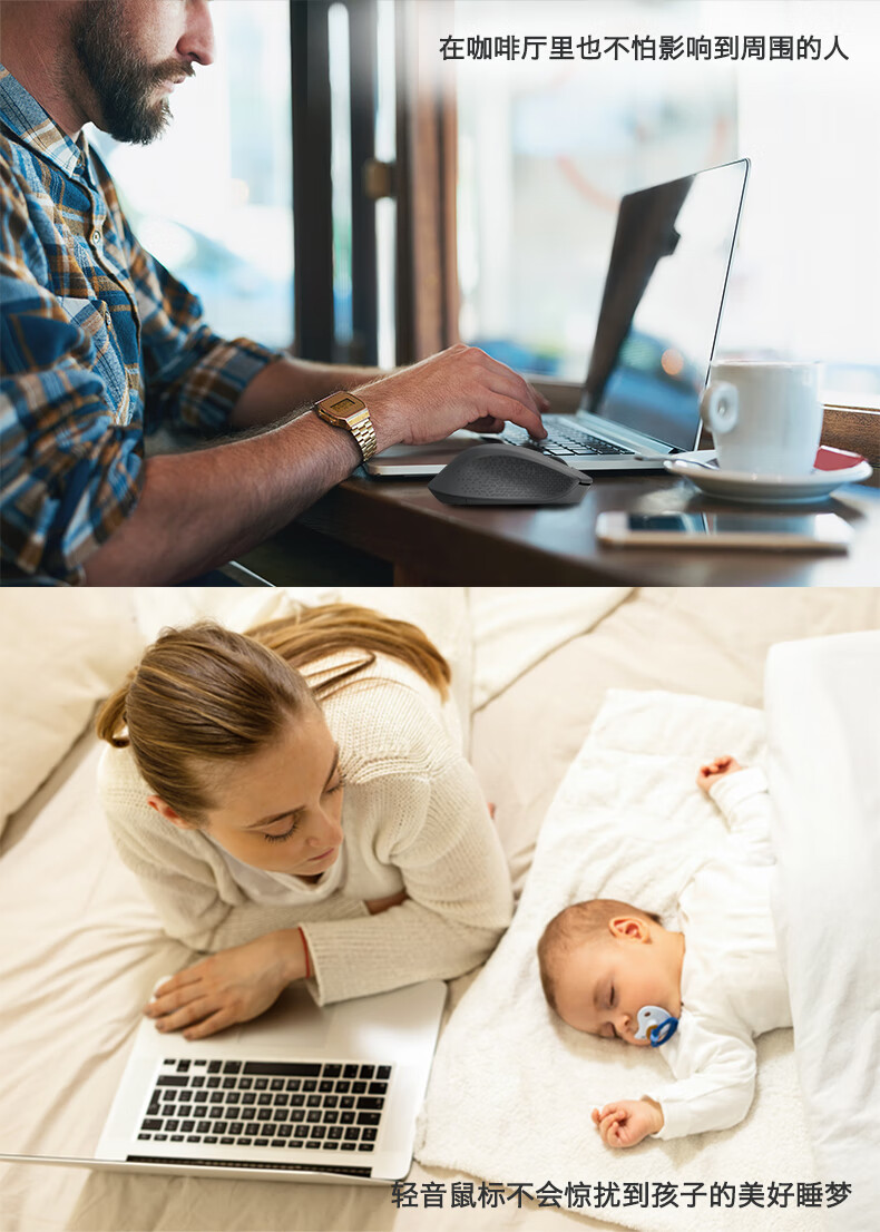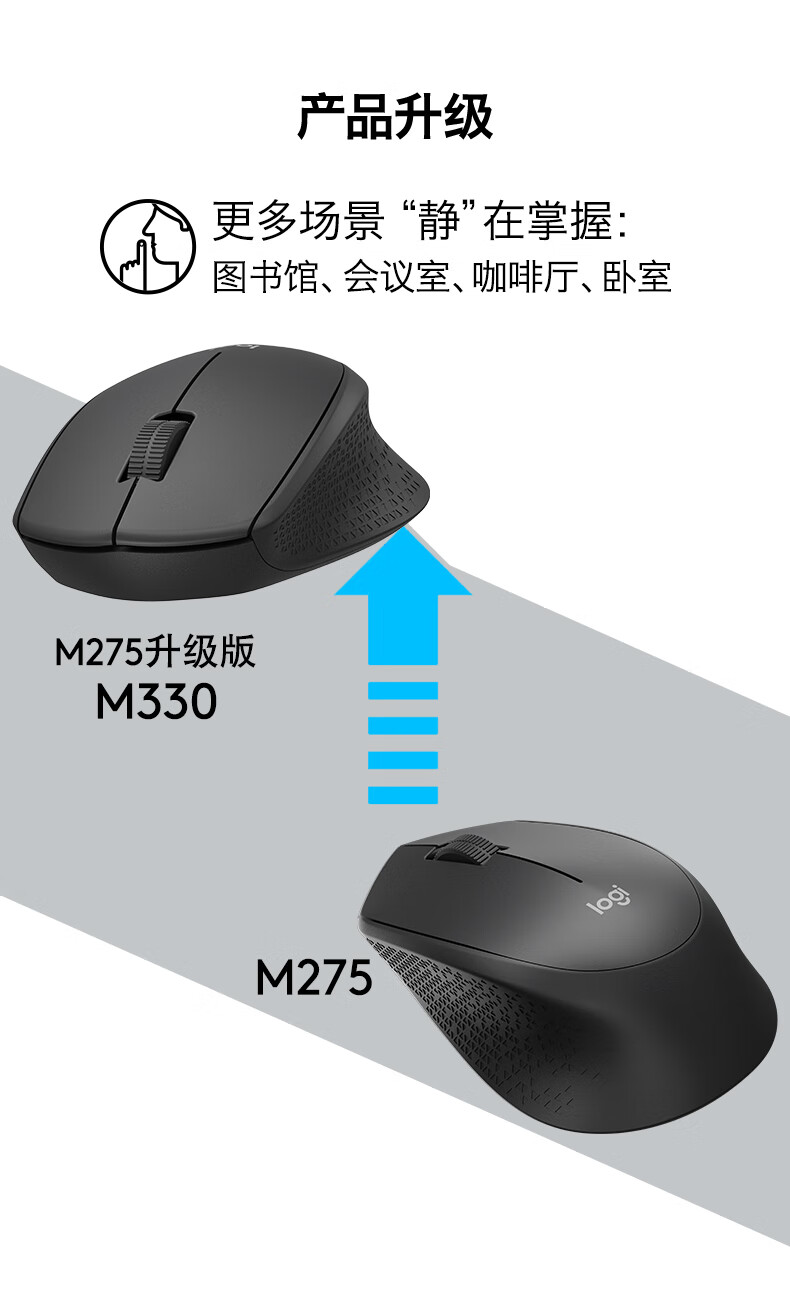 罗技(Logitech)M330 静音鼠标 无线鼠标 办公鼠标 右手鼠标 带无线微型接收器 黑色