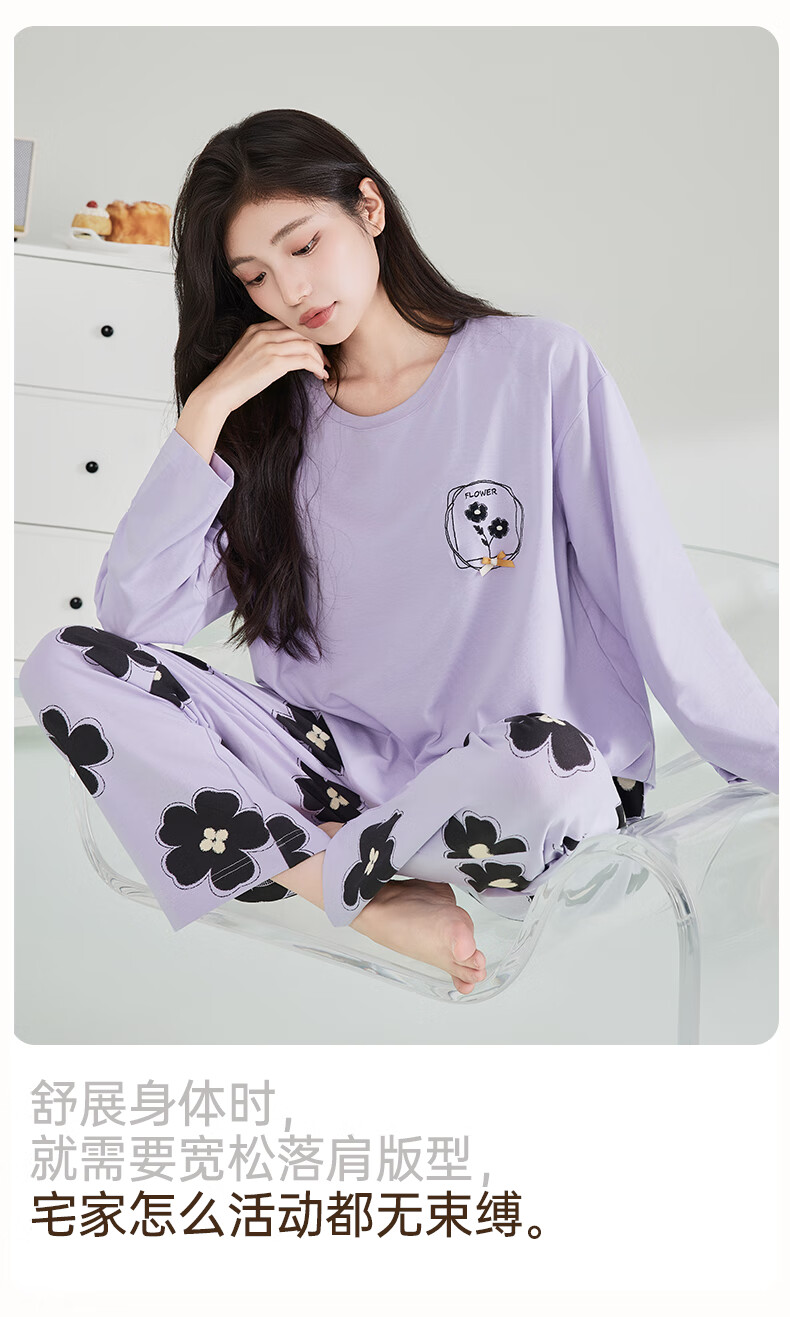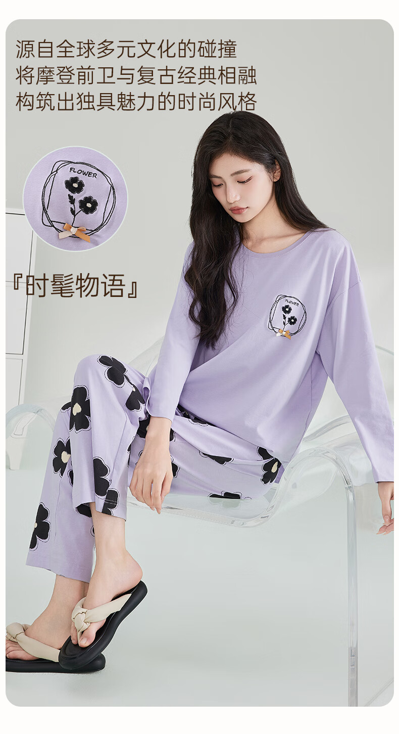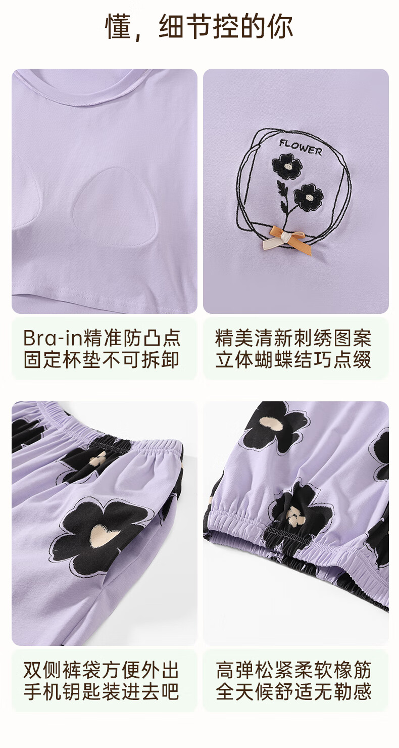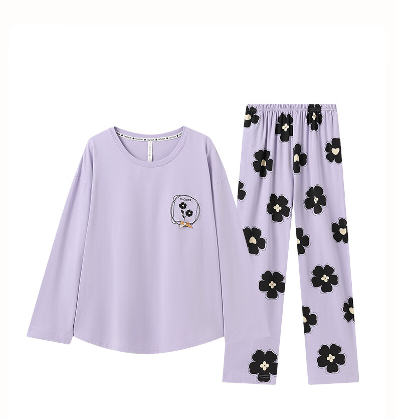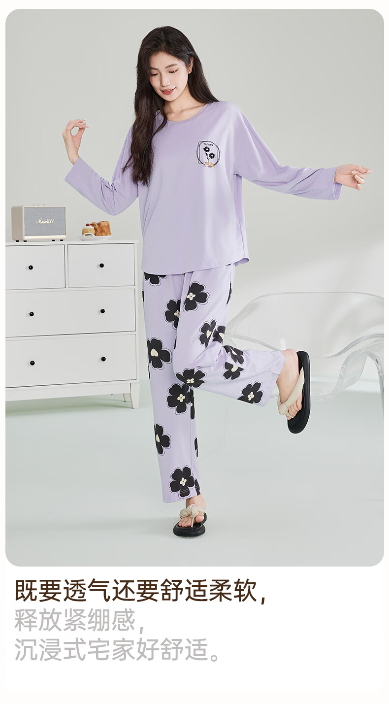 睡衣女款夏天2025年新款夏季棉短袖春秋夏款女士家居服两件套装 富贵750 无带胸垫款 XL 116-130斤