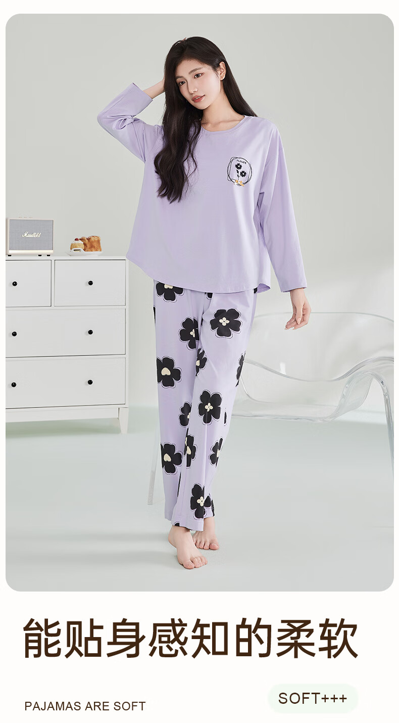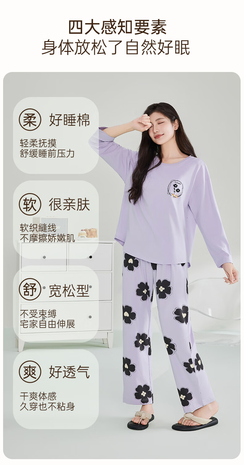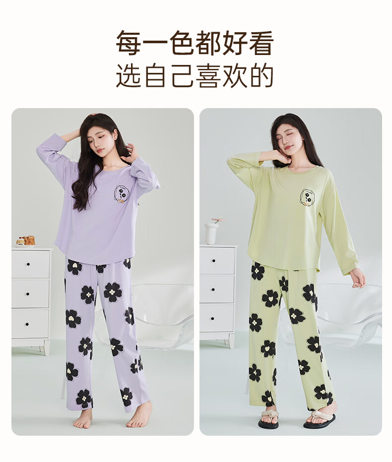 玛伦萨带胸垫睡衣女春秋季可外穿2025新款柔软棉质长袖长裤女士家居服 豆绿 M