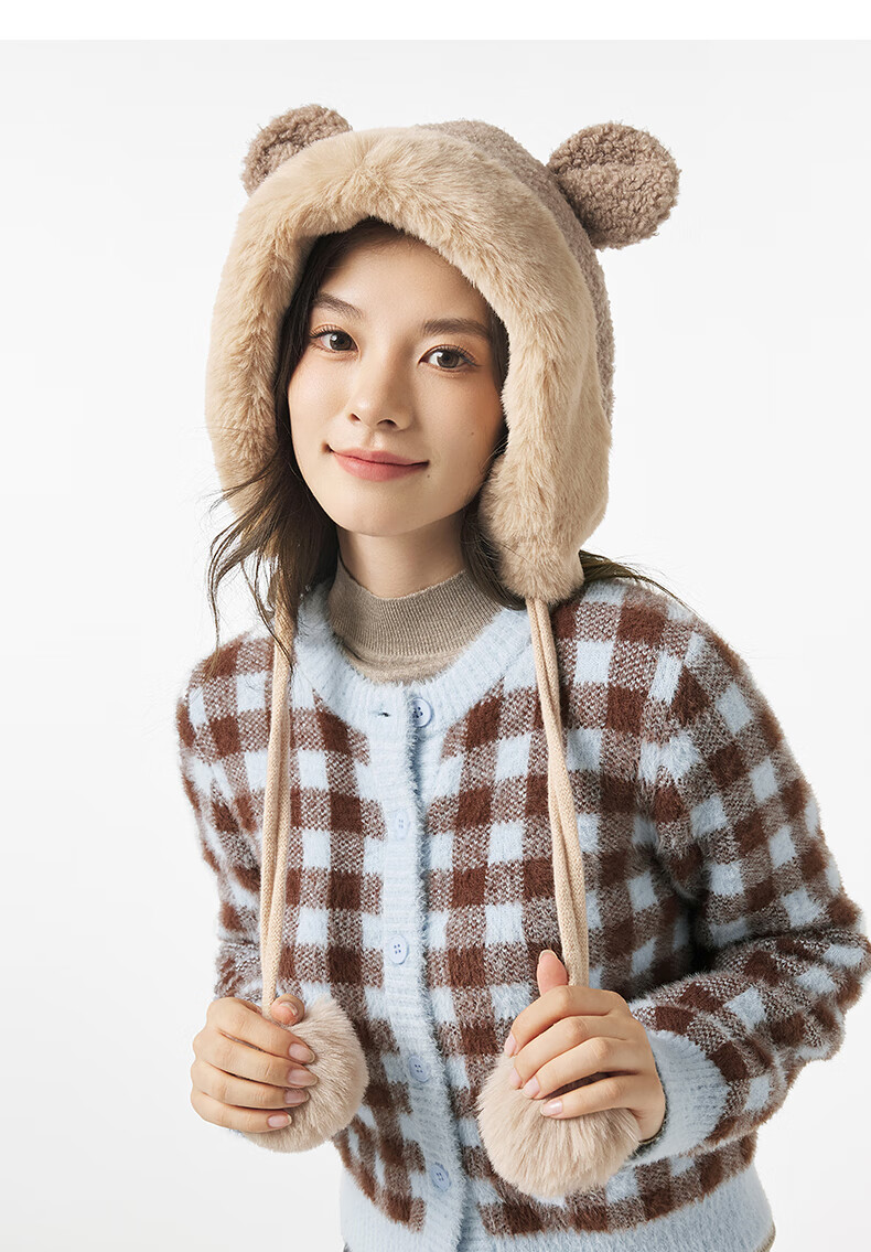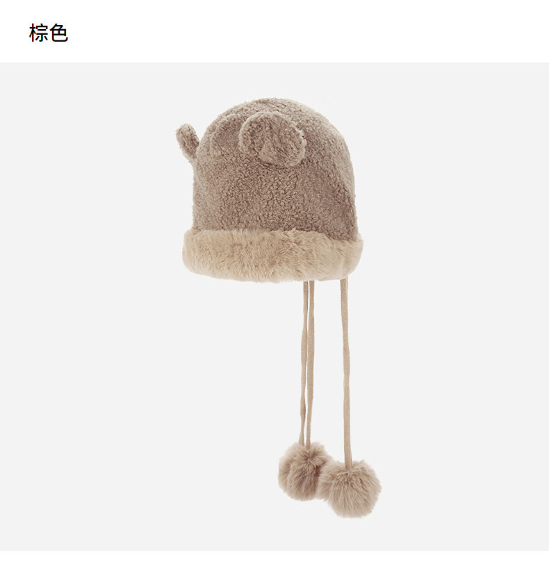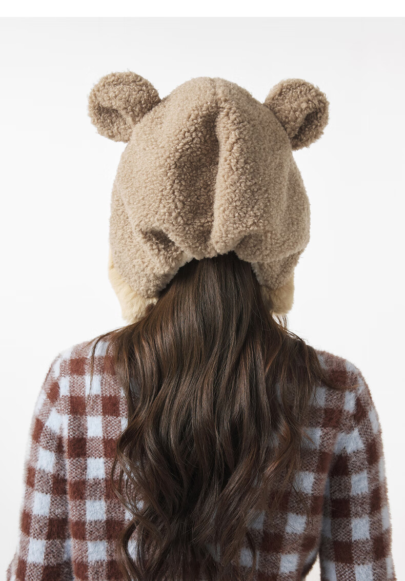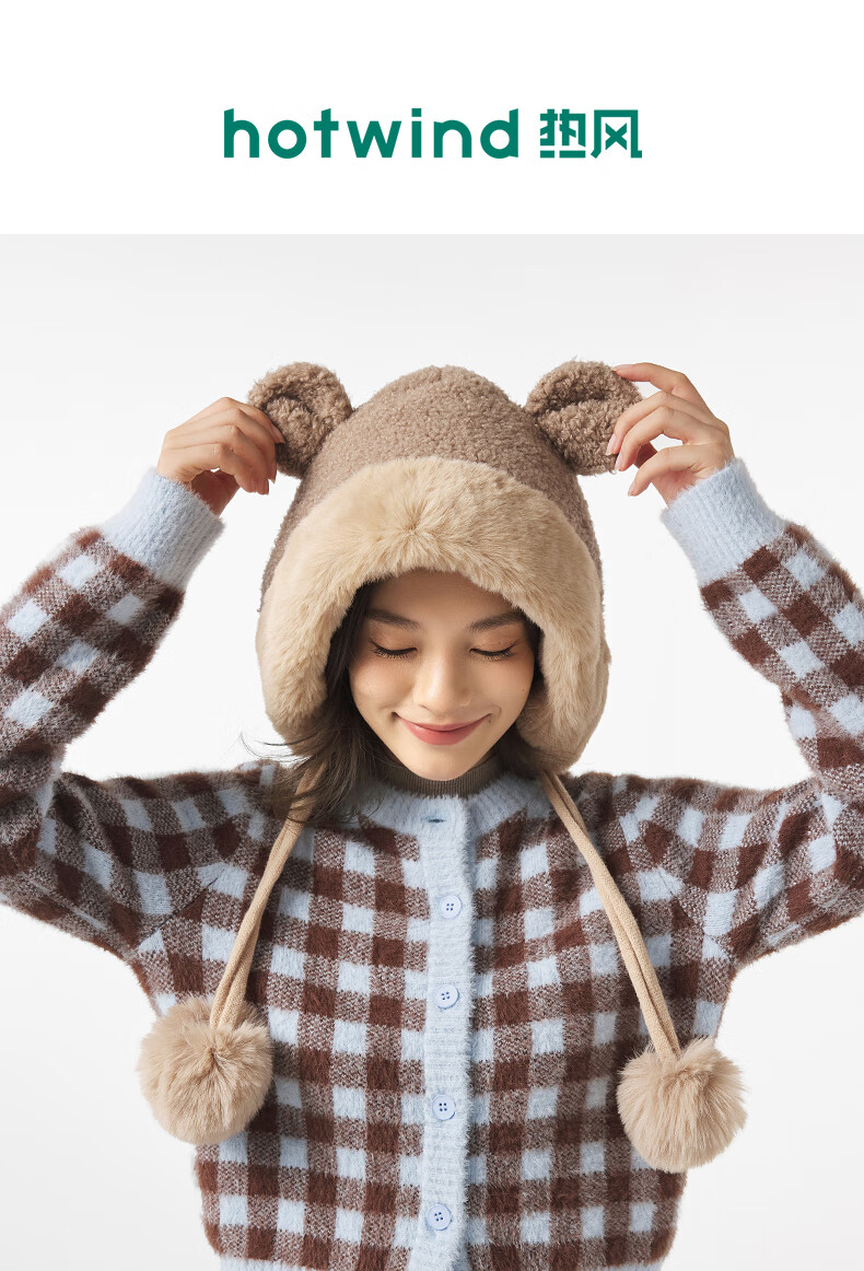 热风2025年冬季新款女士小熊耳朵护耳帽 02棕色 56-60cm