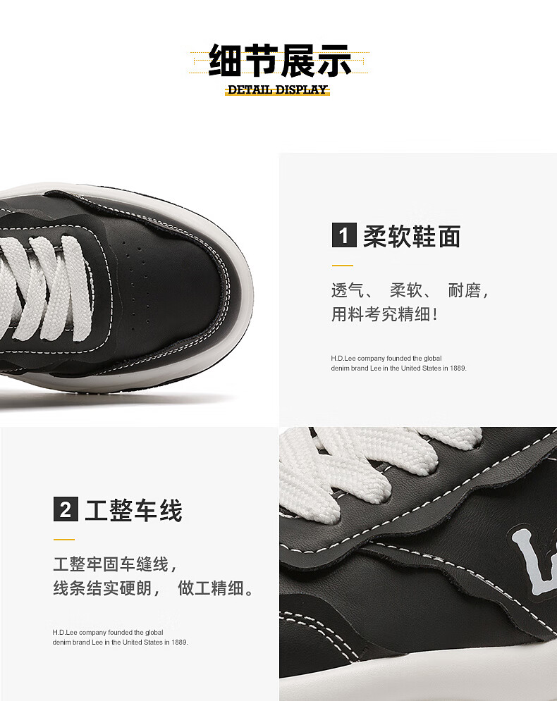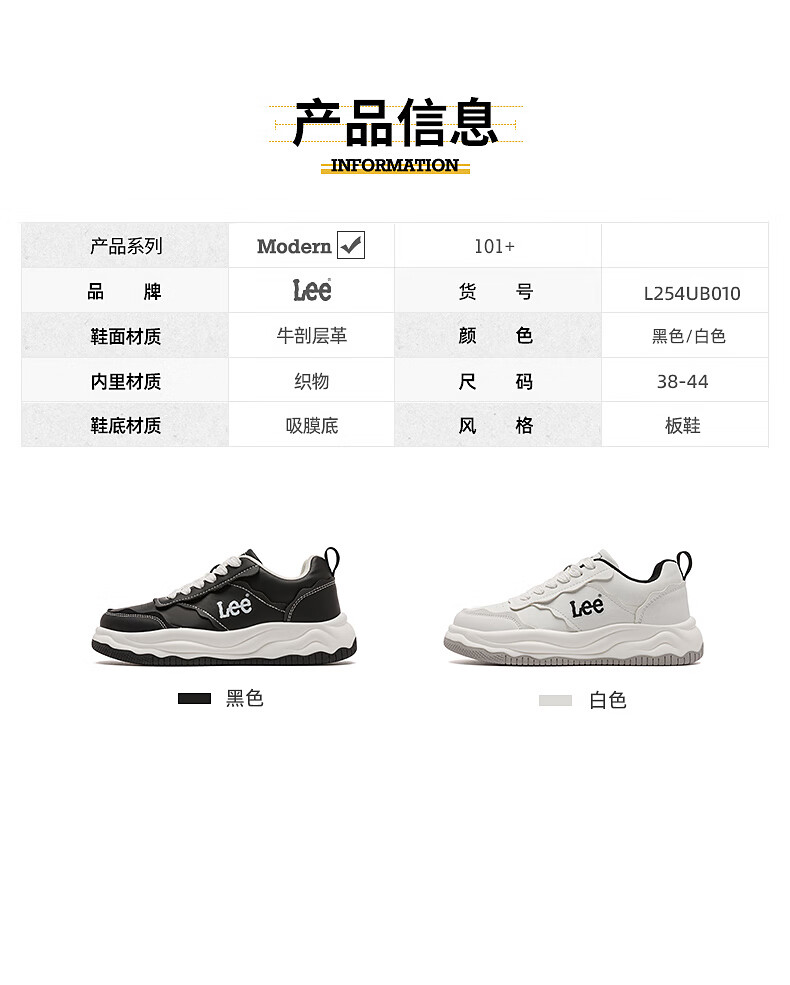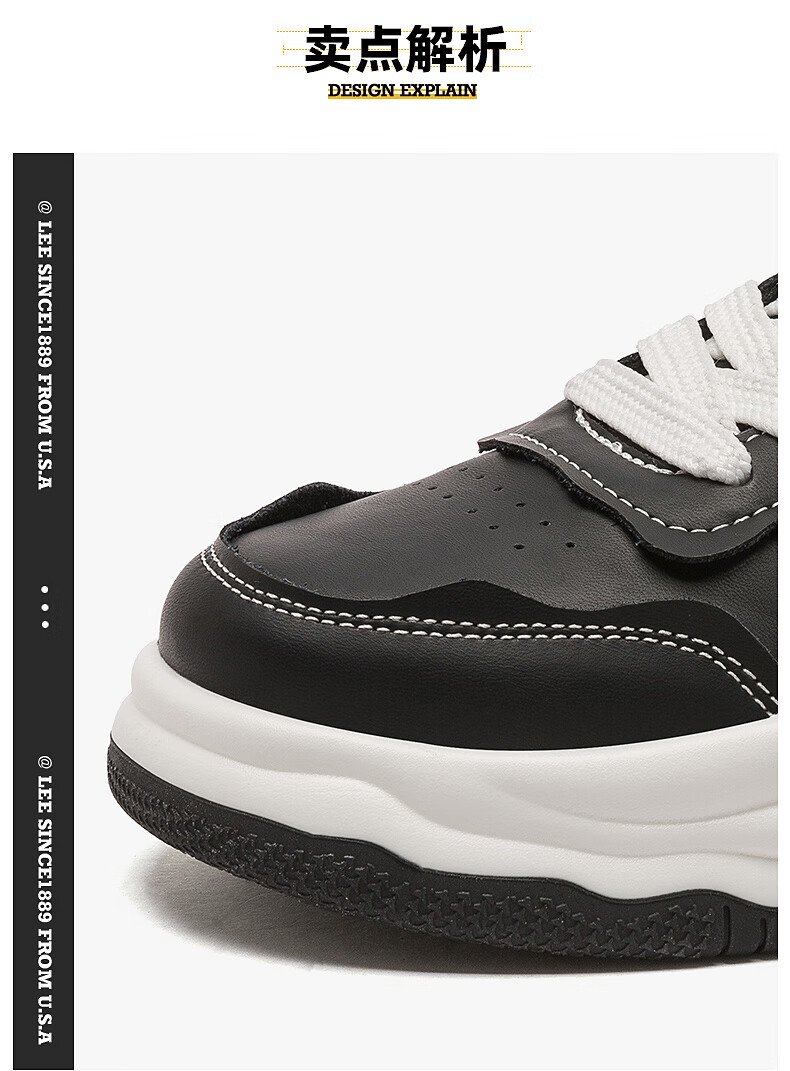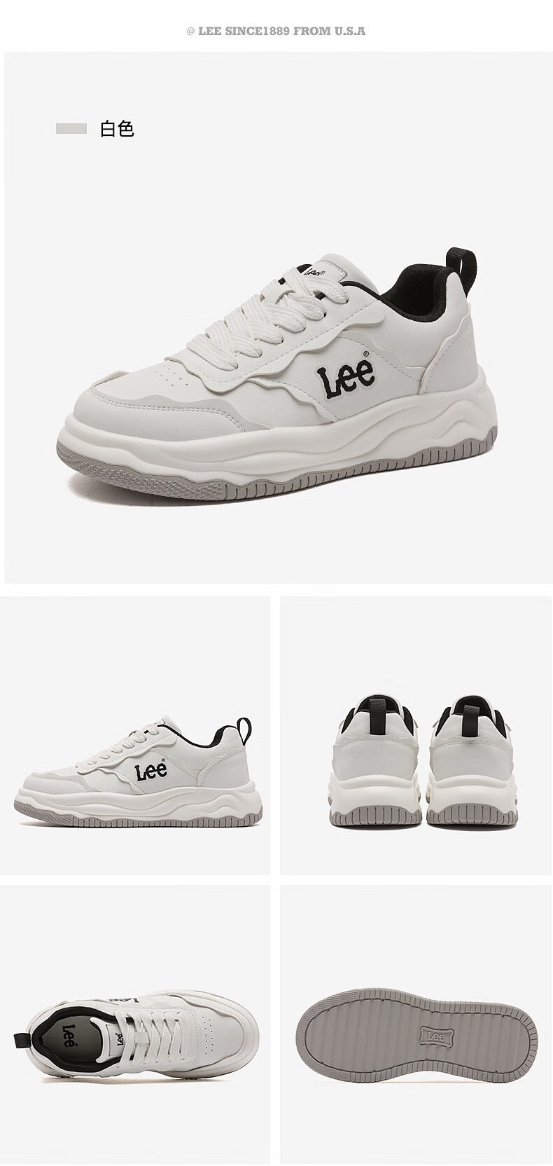 Lee男鞋2025秋季新款白色板鞋男小白鞋时尚休闲鞋男士增高鞋子男潮鞋 白色 38 【偏大/请拍小一码】