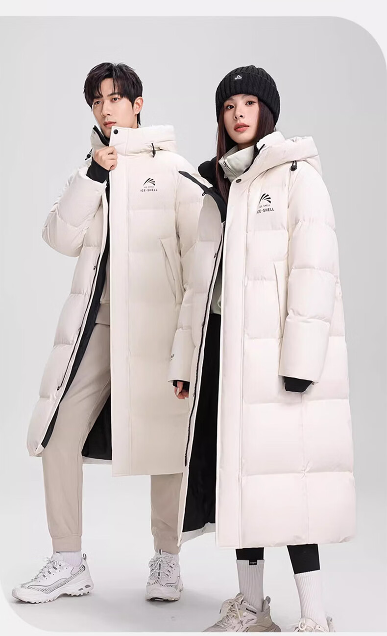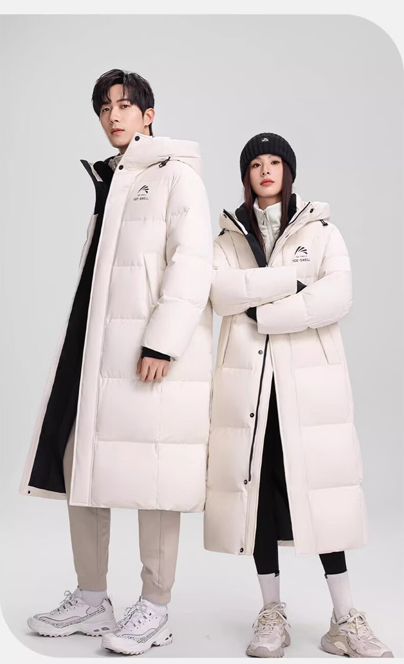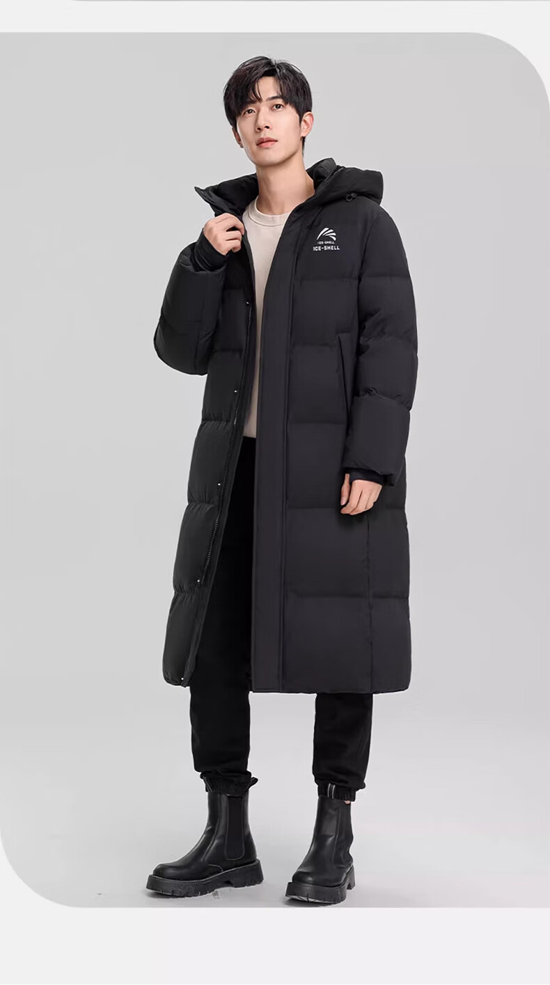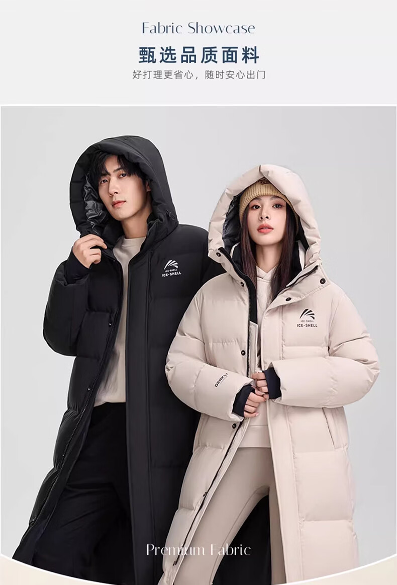 鸭鸭(YAYA)王一博同款冰壳羽绒服女长款过膝冬季新款时尚情侣男女泡芙外套HY 青光黑色 S (165)