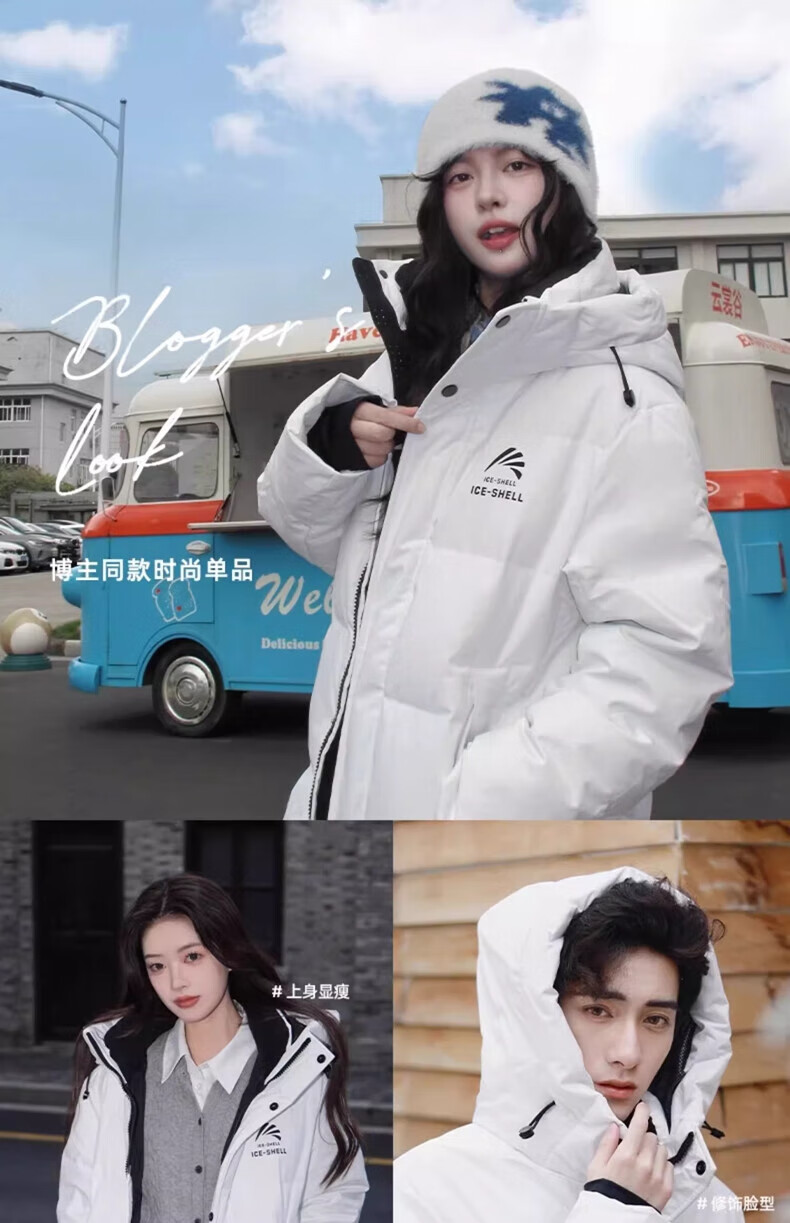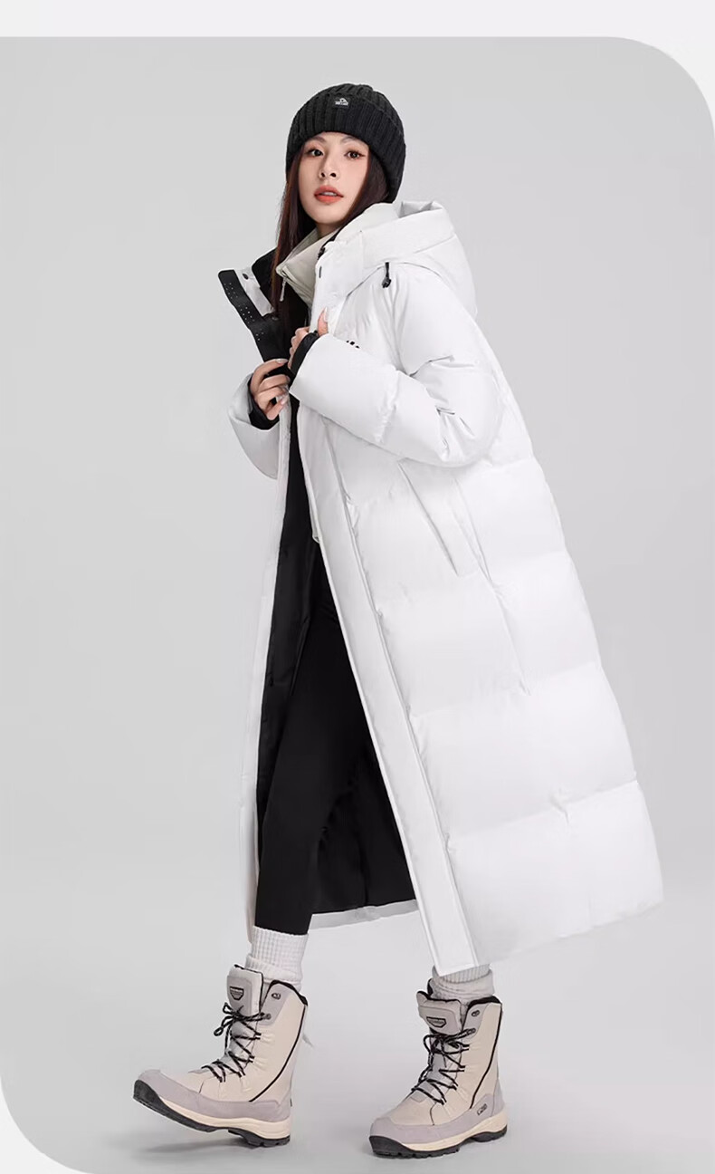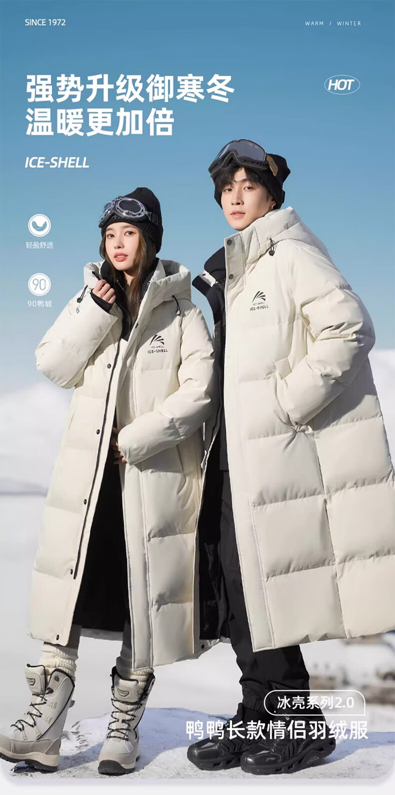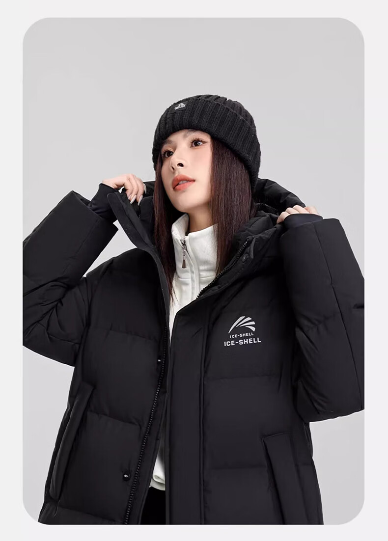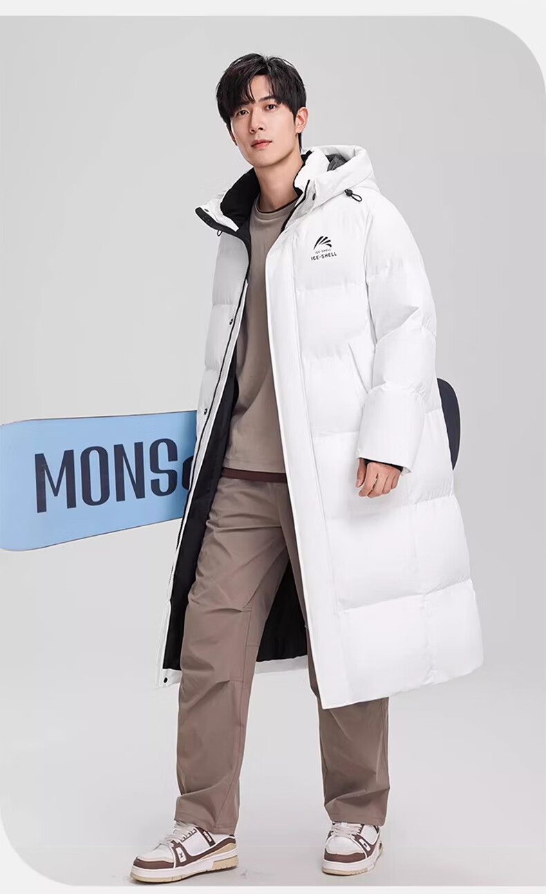 鸭鸭(YAYA)王一博同款冰壳羽绒服女长款过膝冬季新款时尚情侣男女泡芙外套HY 青光黑色 S (165)