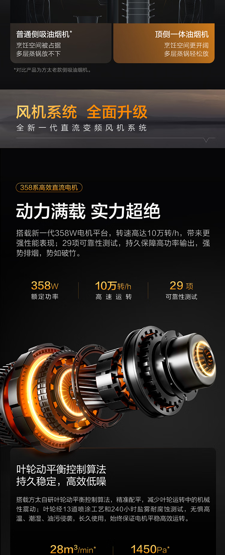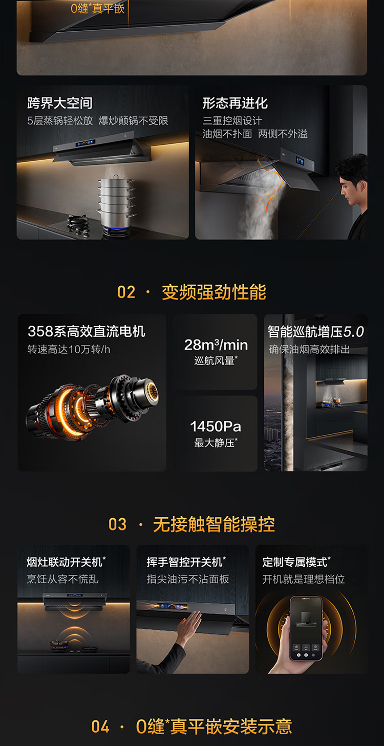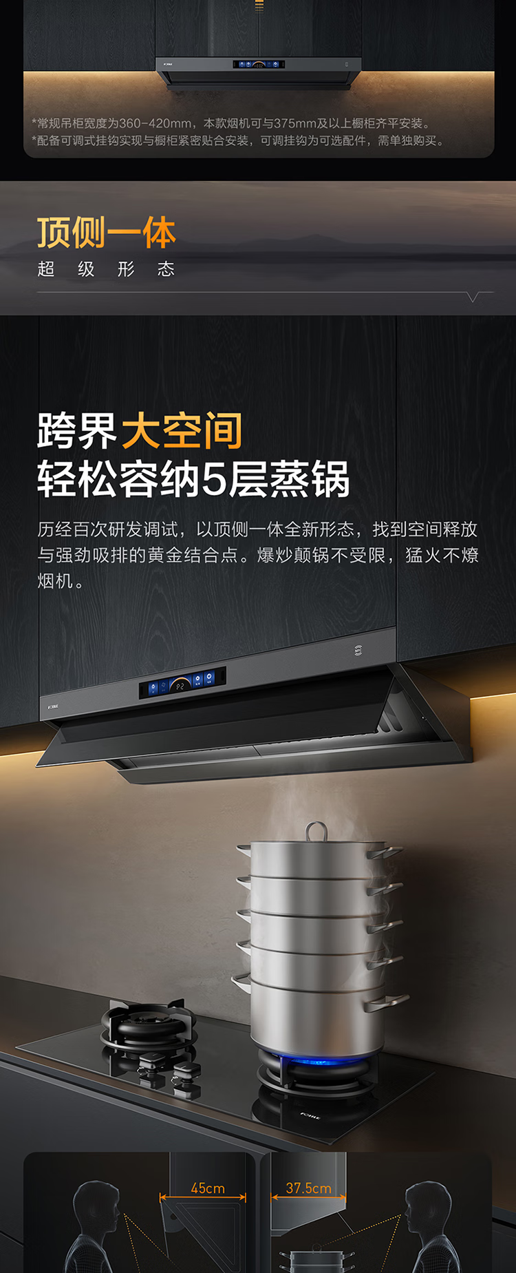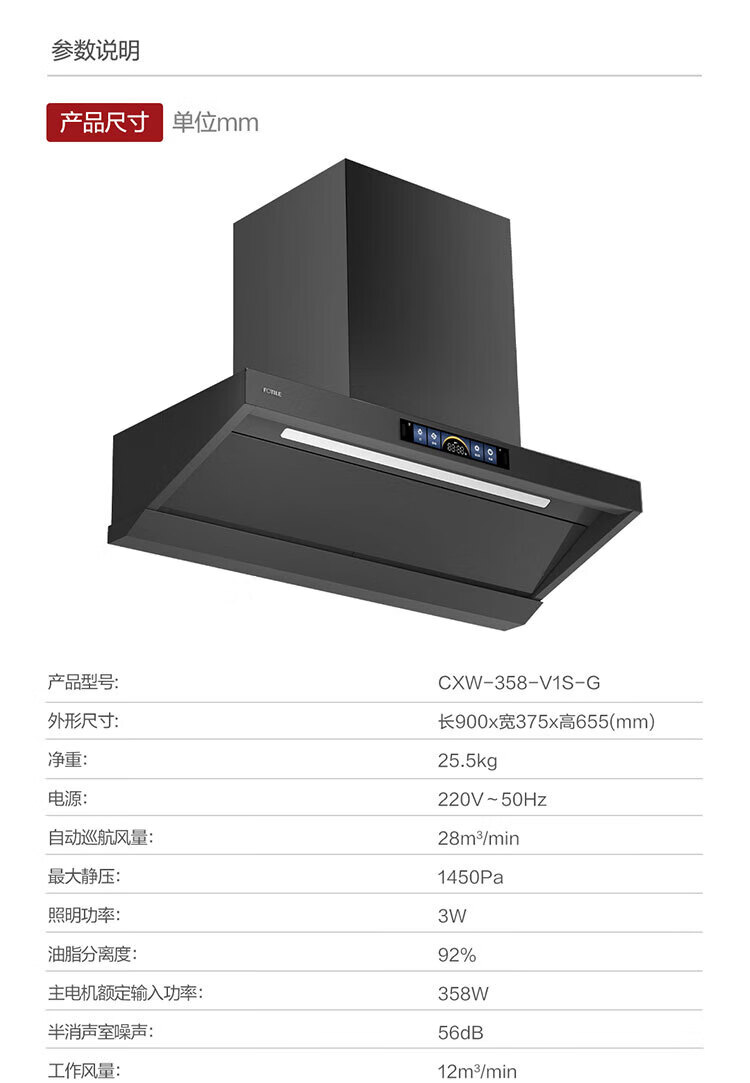 方太(FOTILE)V1S-G顶吸侧吸抽油烟机家用大吸力28大风量1450Pa大风压顶侧一体烟灶联动变频 单烟机 国家补贴20%
