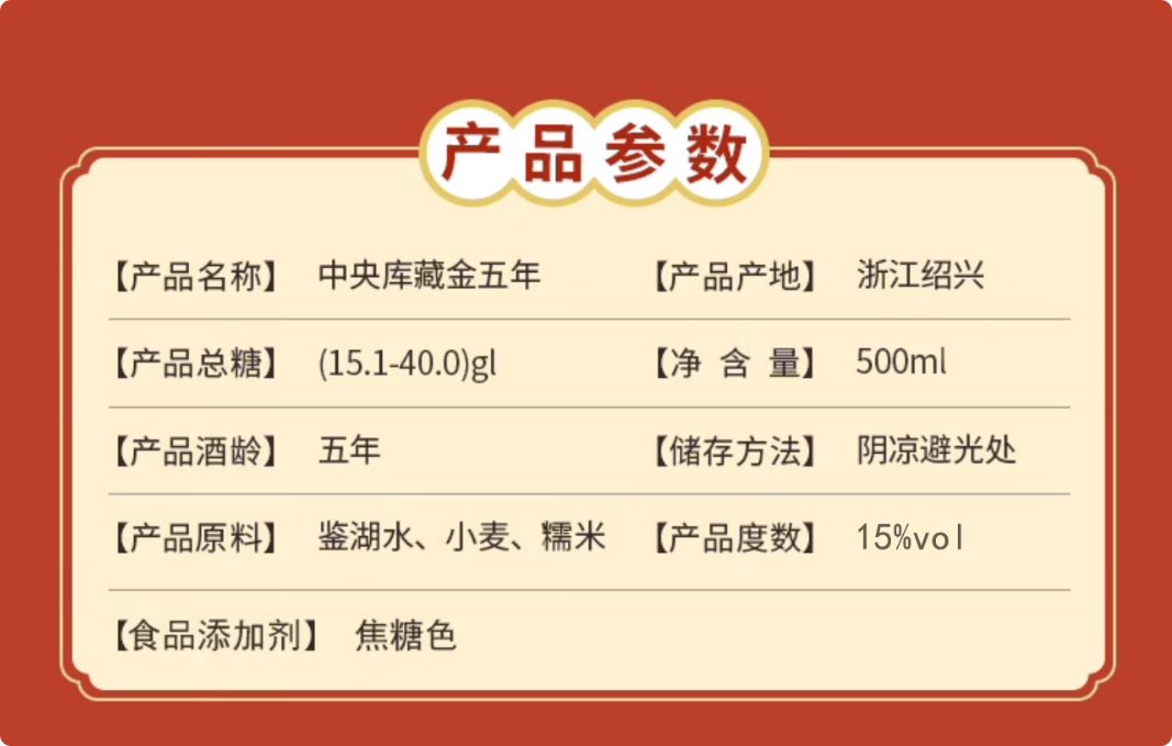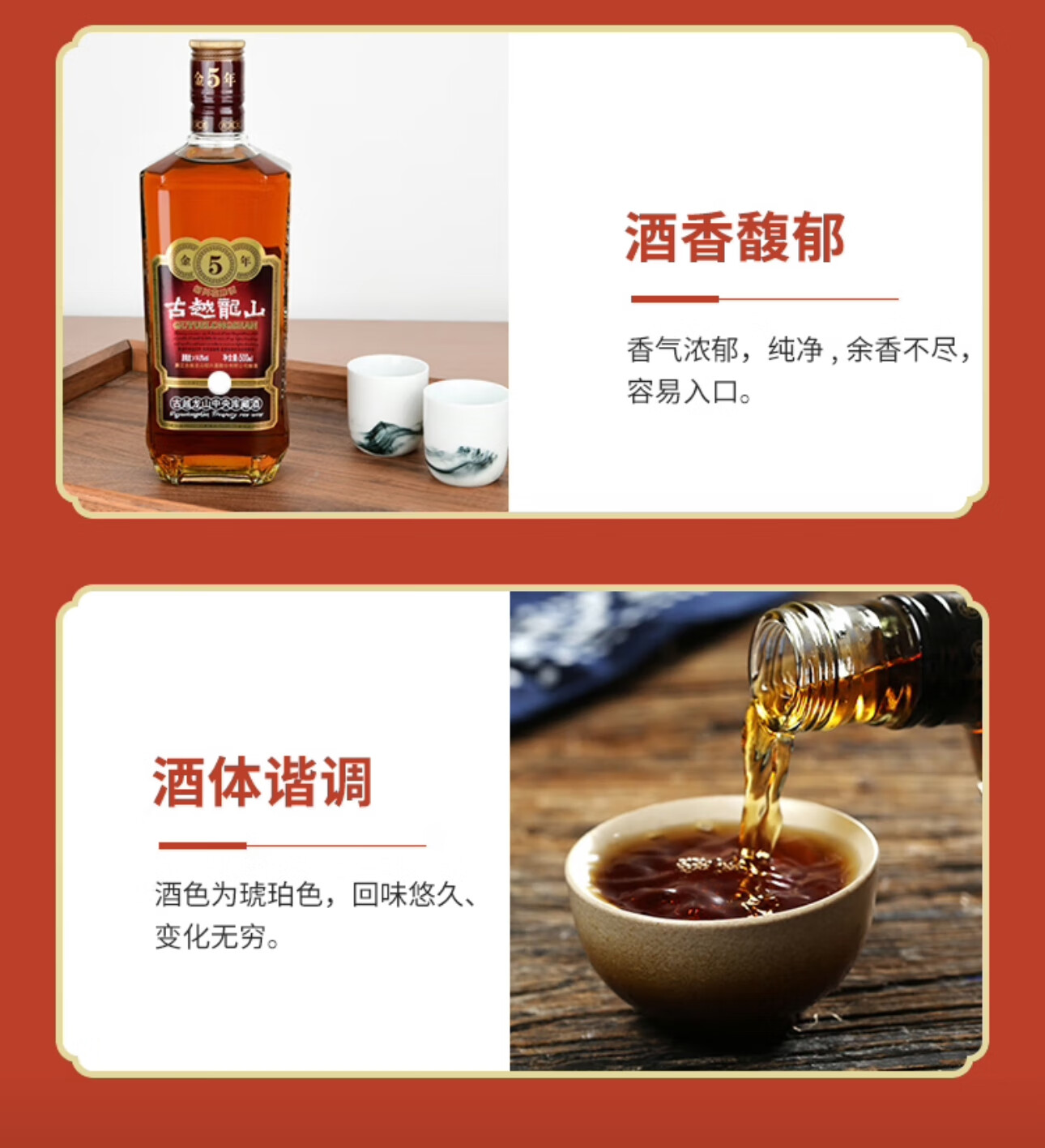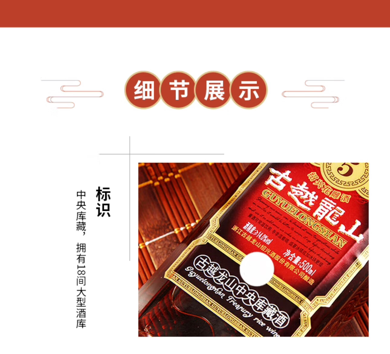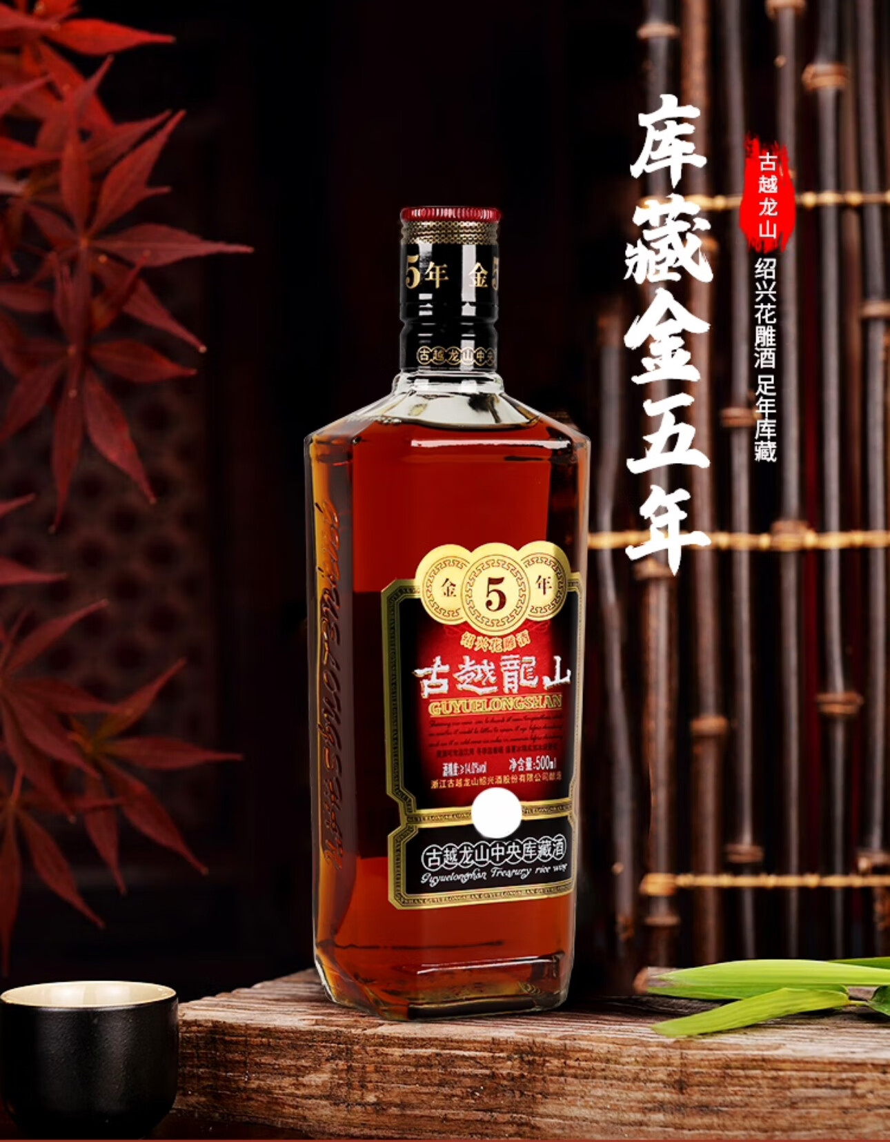 古越龙山 库藏金五年 半干型 绍兴黄酒 500ml 单瓶装 上海版 中秋送礼