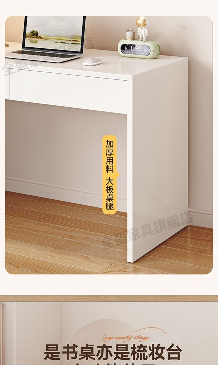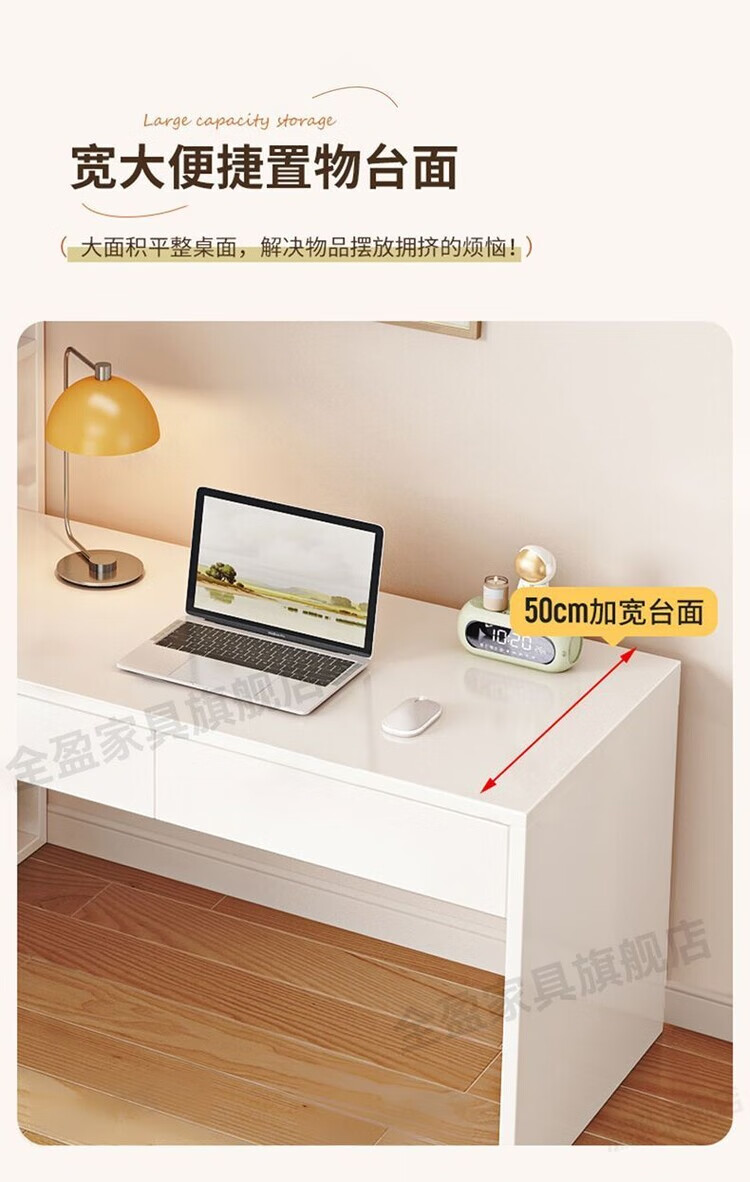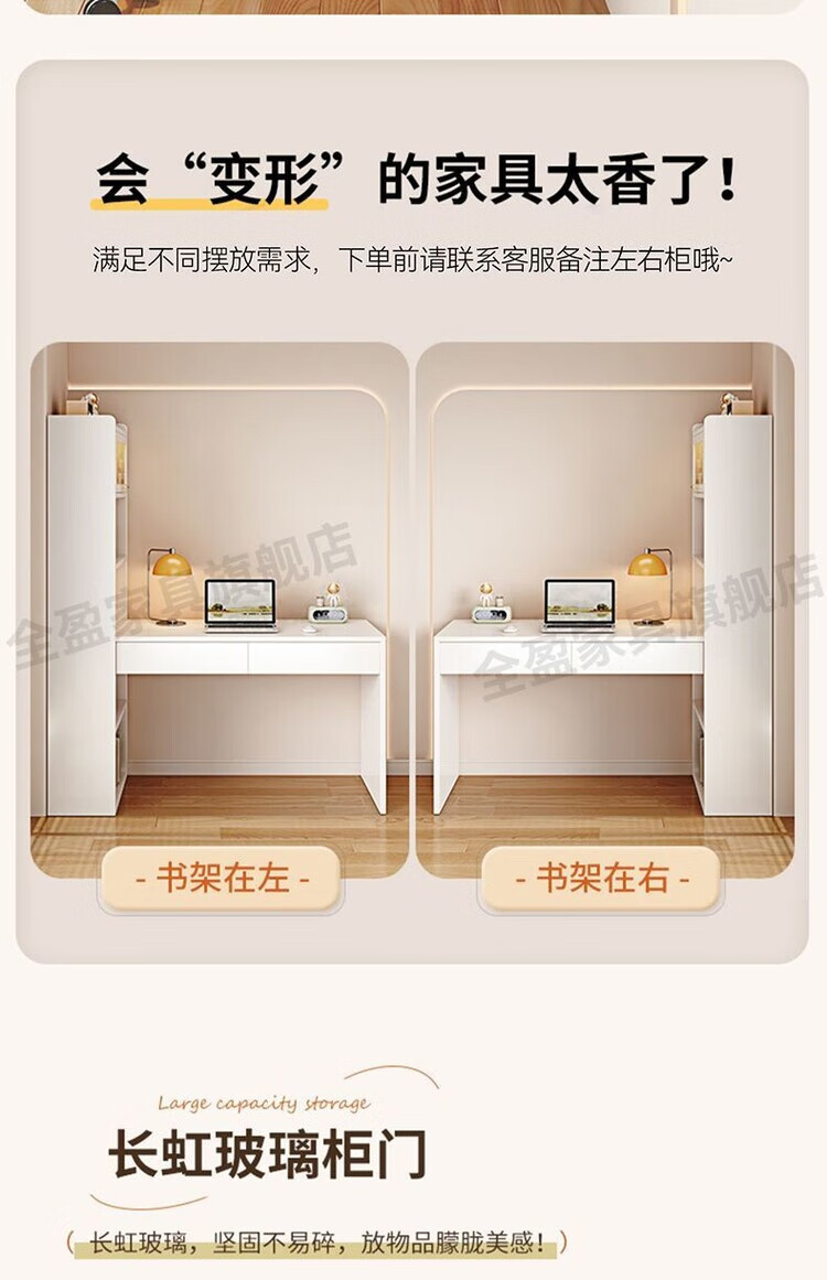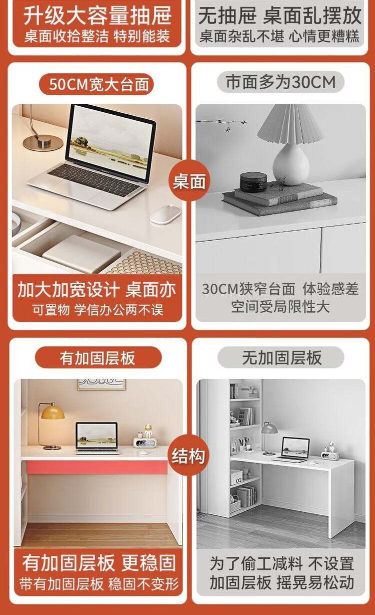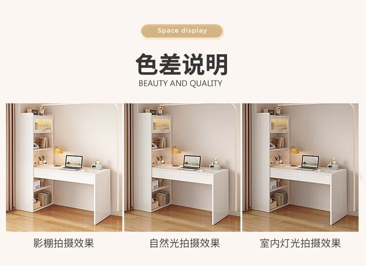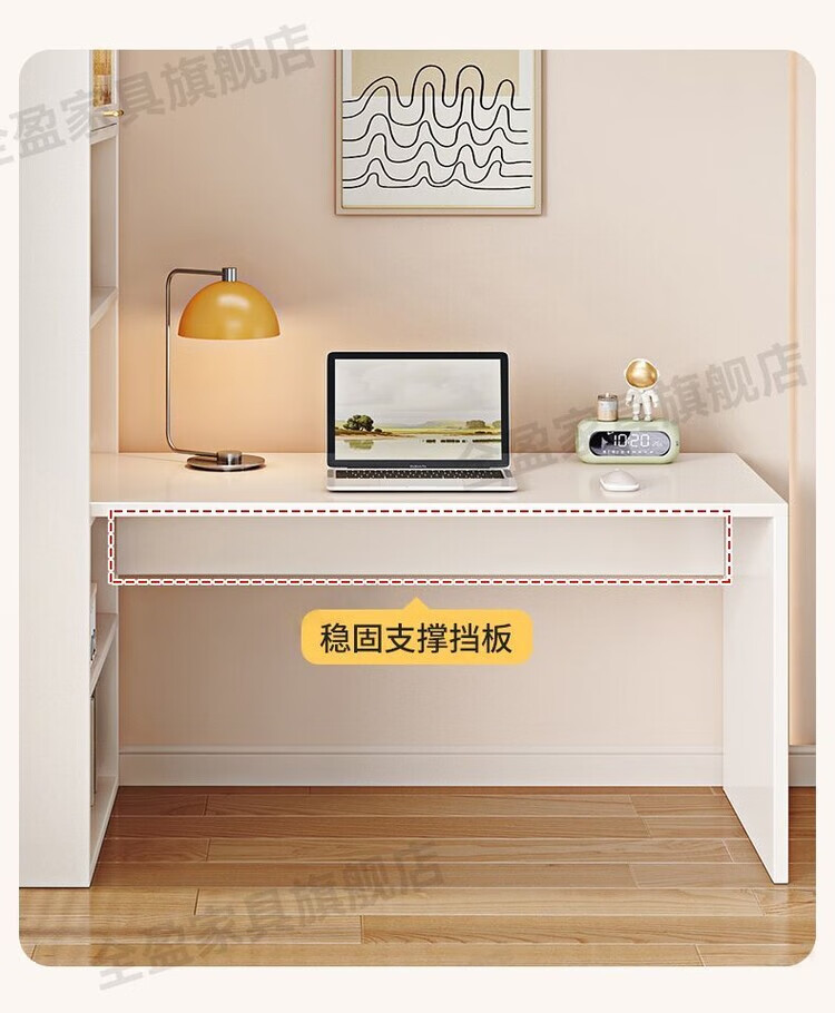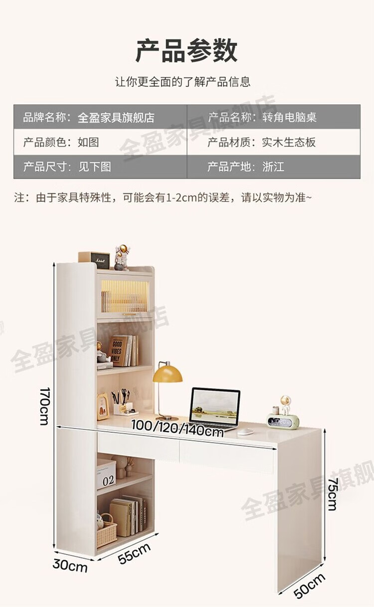 倘然之家实木书架书柜落地靠墙一体学习桌转角书桌家用奶油风小户型写字桌 实木生态板【自行安装】转角书桌 100cm暖白色【单抽书桌+书柜】