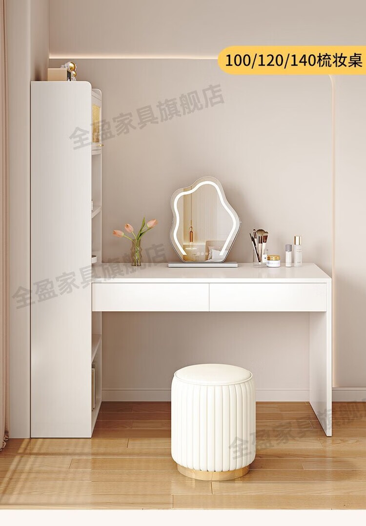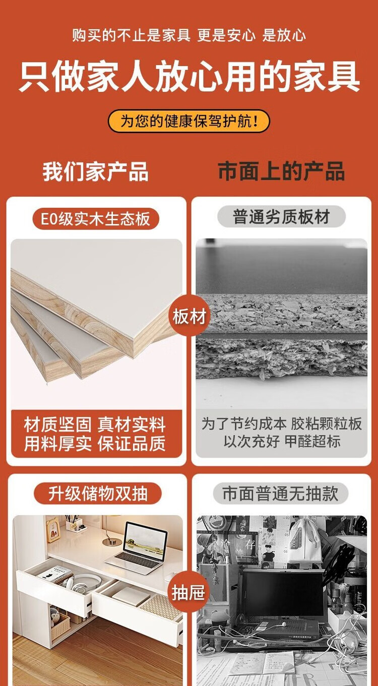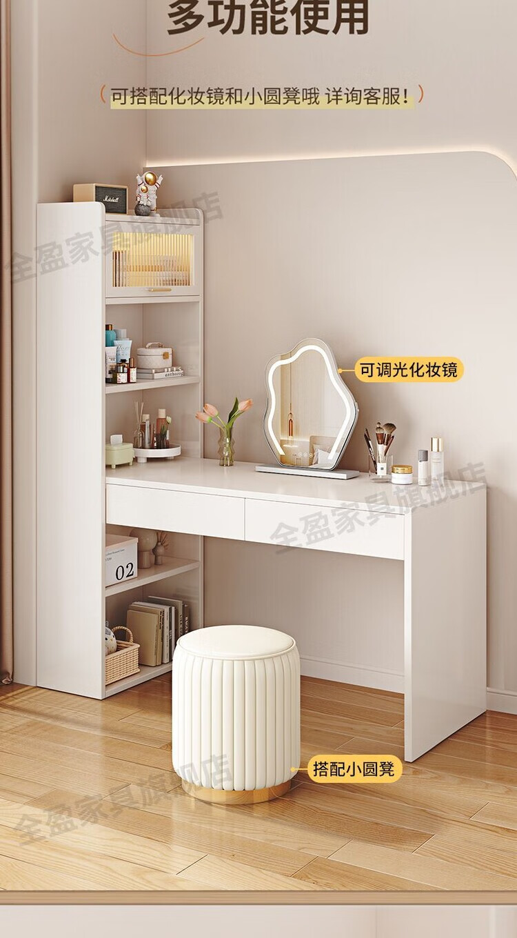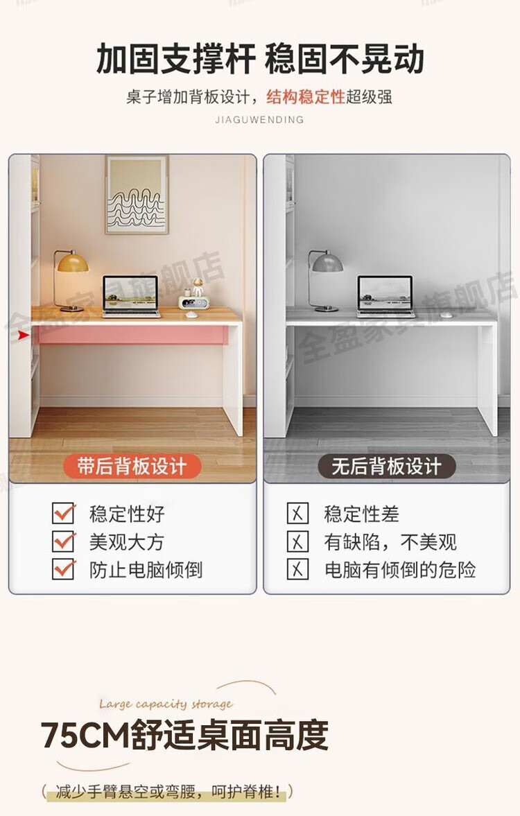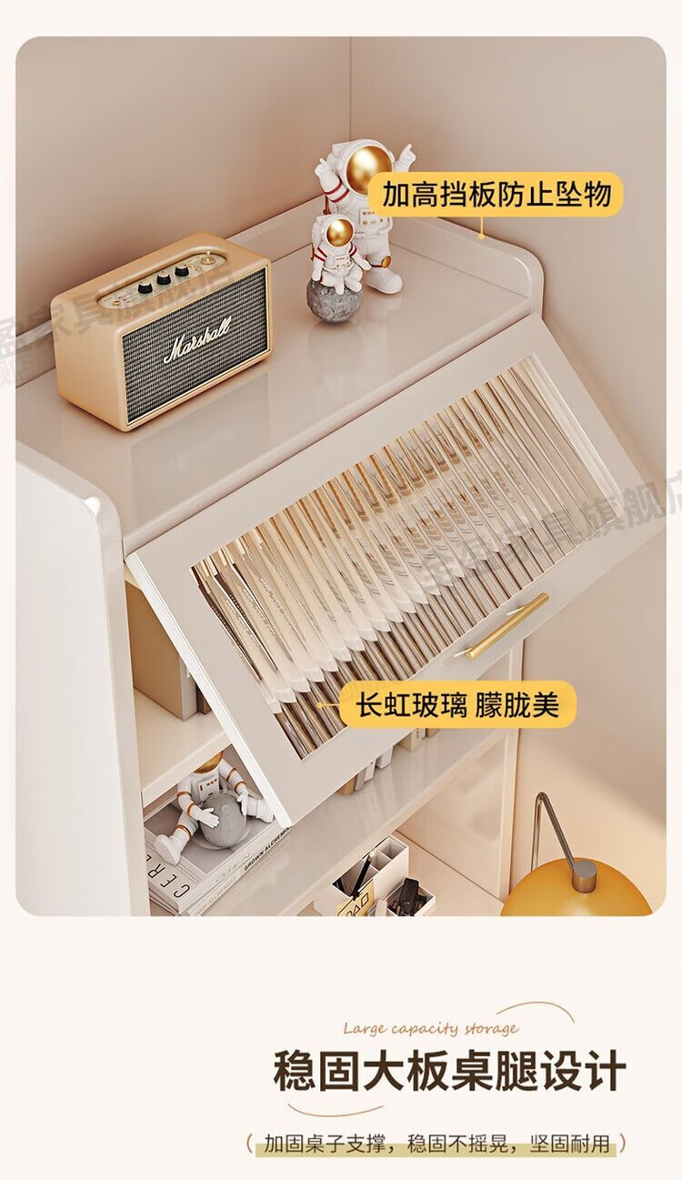 倘然之家实木书架书柜落地靠墙一体学习桌转角书桌家用奶油风小户型写字桌 实木生态板【自行安装】转角书桌 100cm暖白色【单抽书桌+书柜】