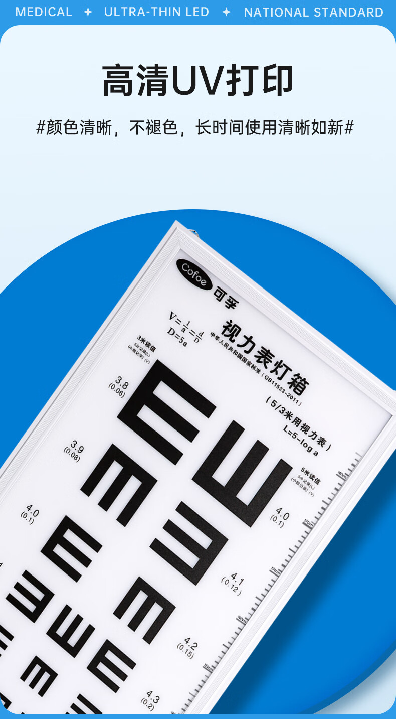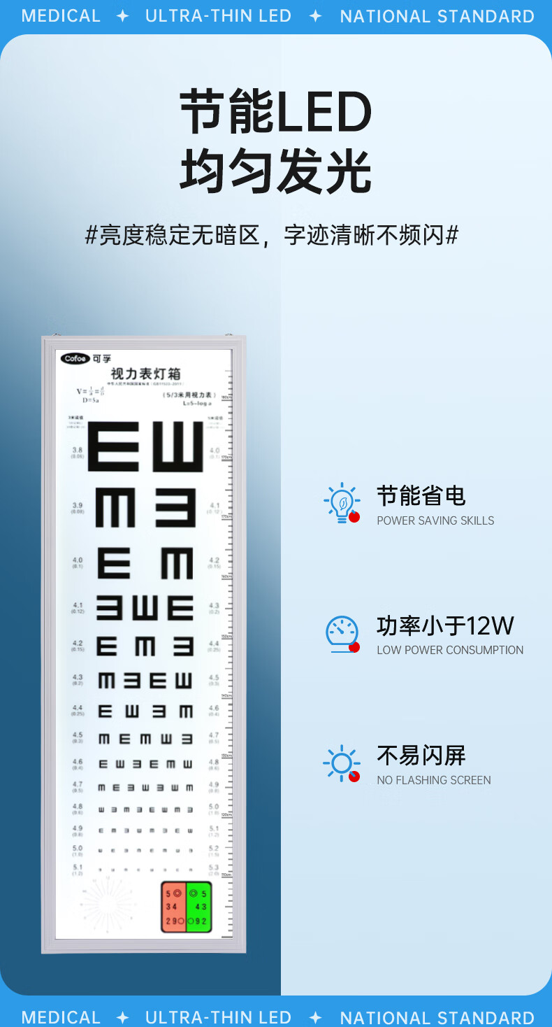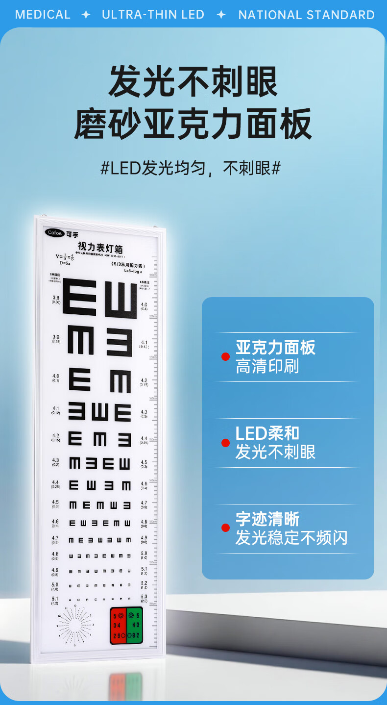 可孚 医用视力表灯箱5米成人 国际标准医院对数测试表儿童挂图家用