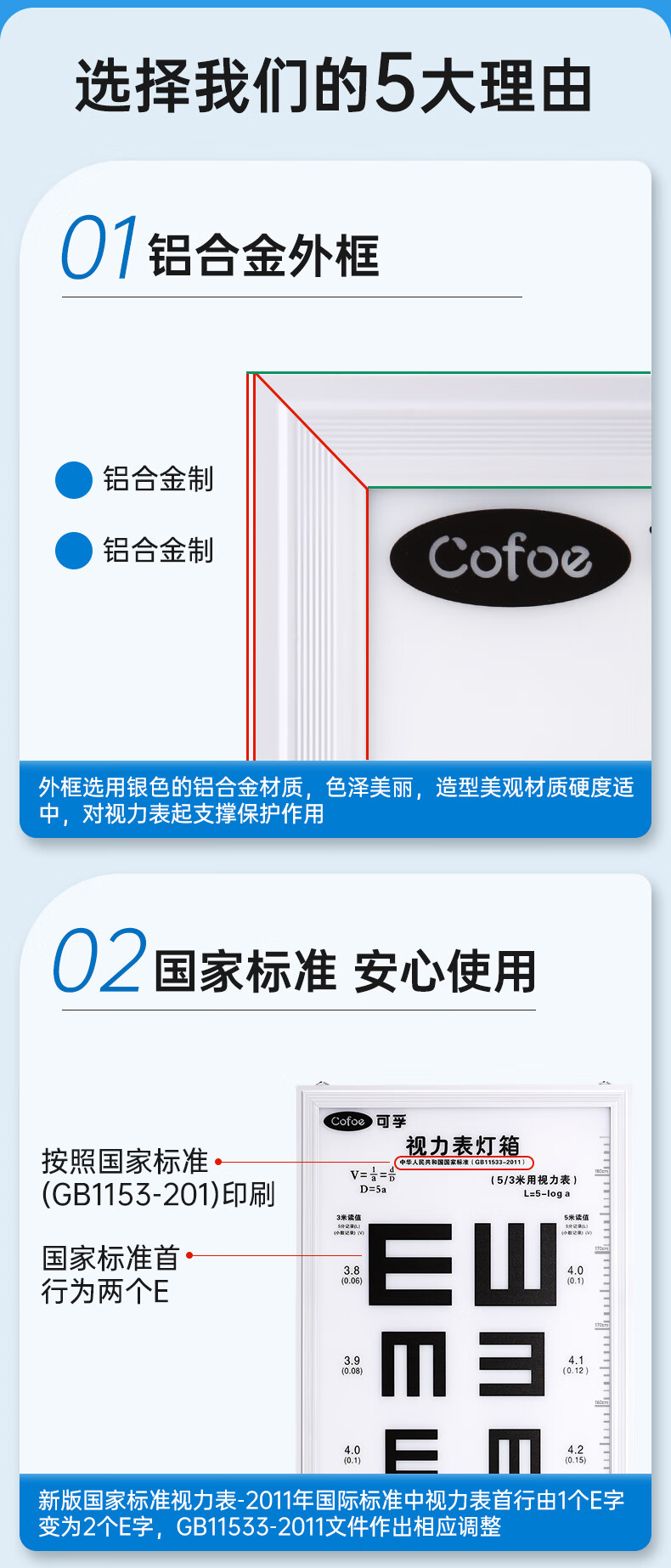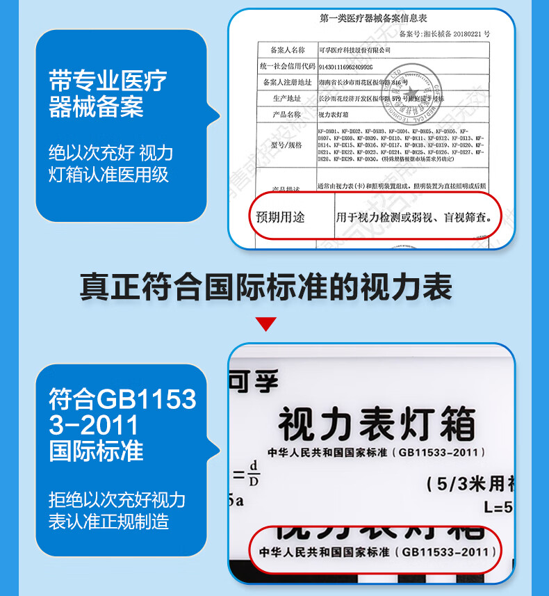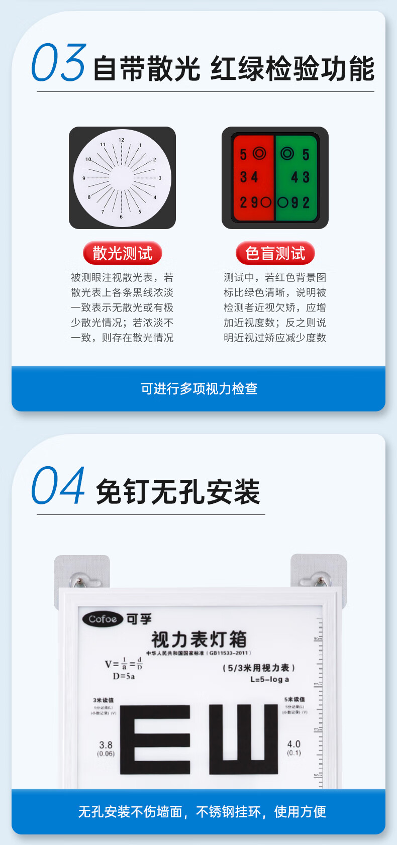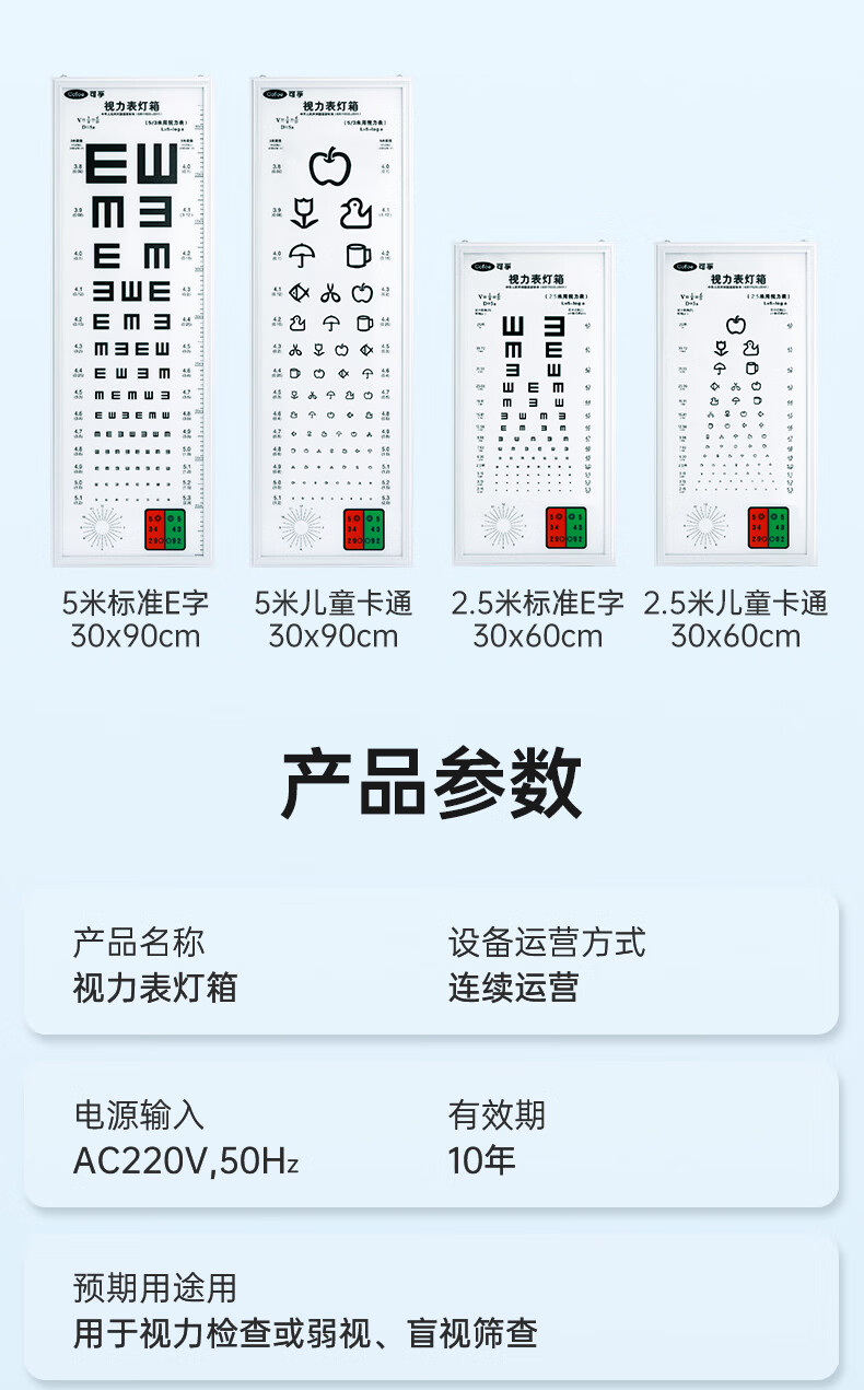 可孚 医用视力表灯箱5米成人 国际标准医院对数测试表儿童挂图家用