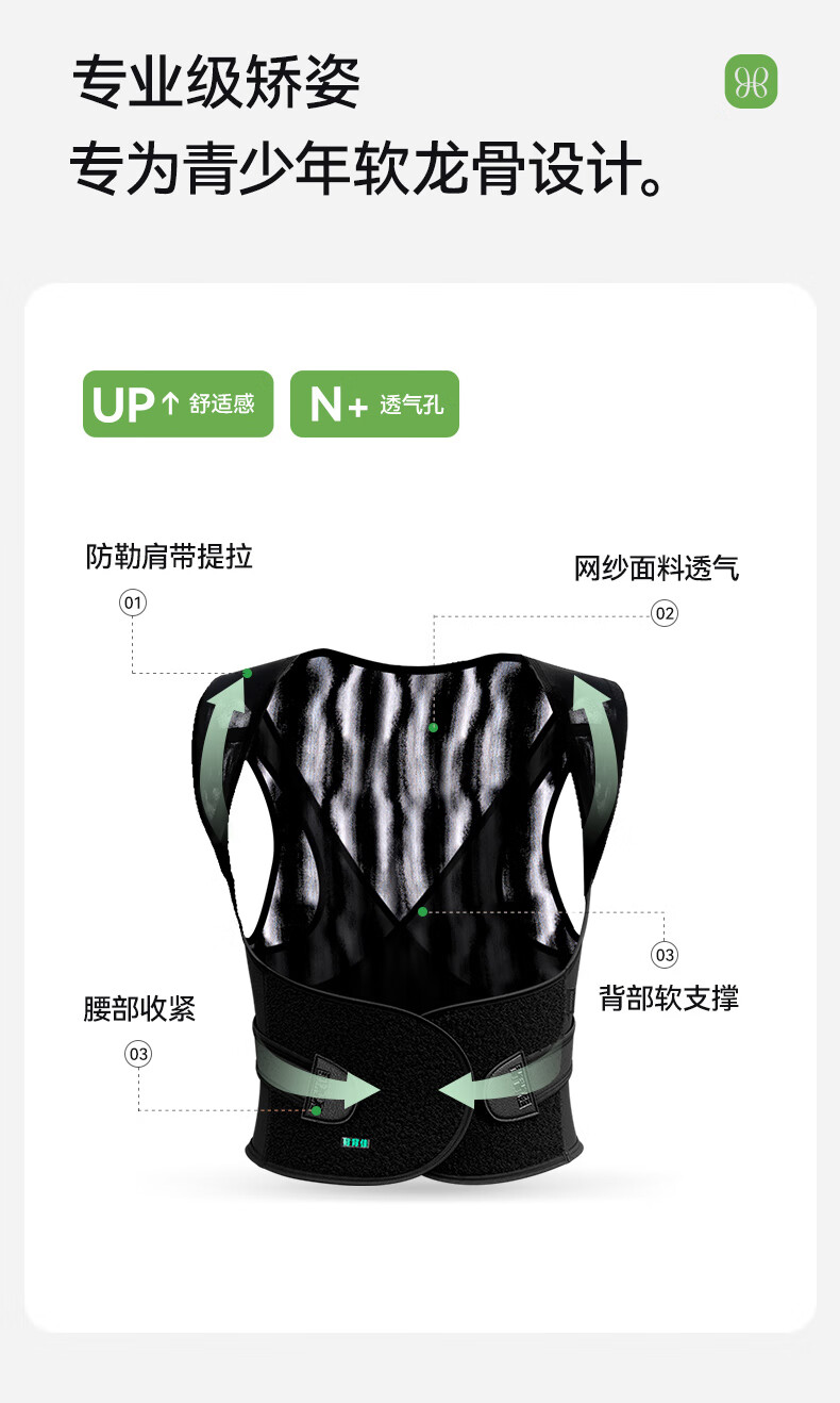背背佳U9矫姿带背部姿势带护腰带儿童学生男女士坐姿端正坐姿站姿-M