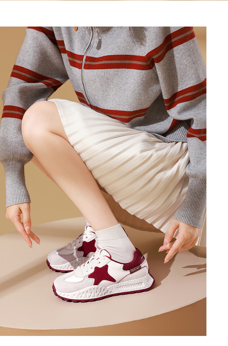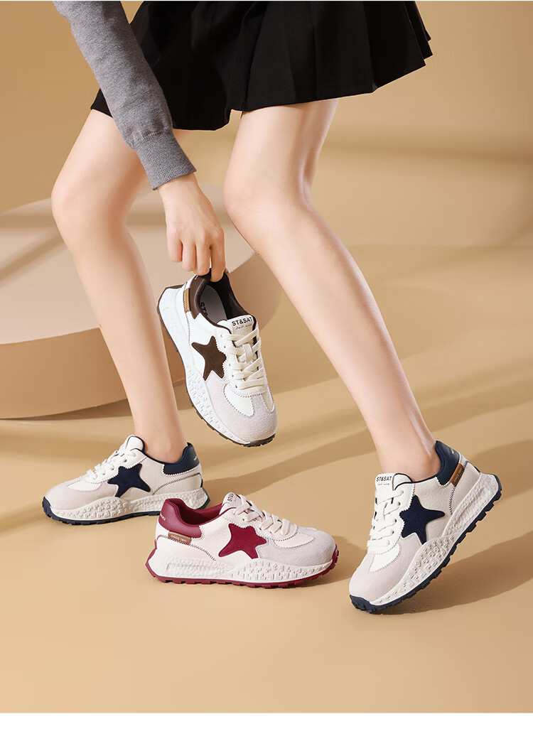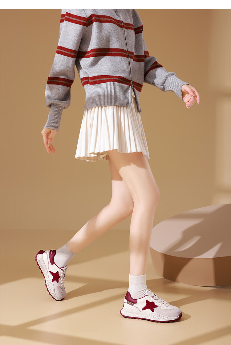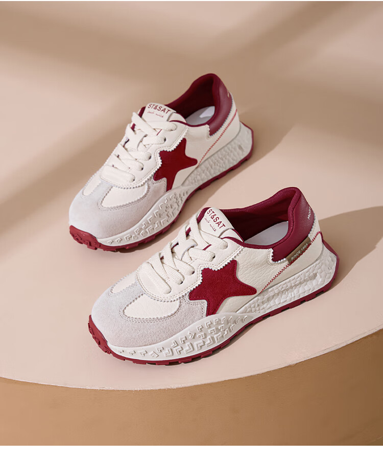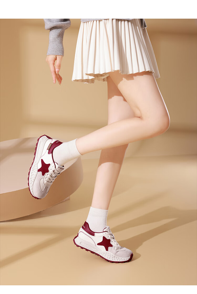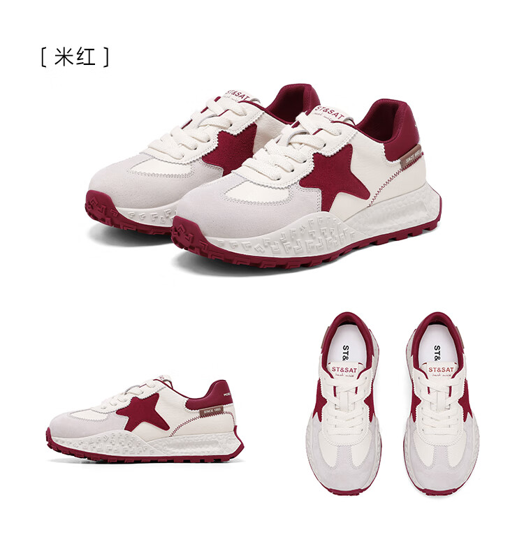 星期六时尚百搭休闲女鞋2025秋季新款学院风运动阿甘鞋MTSSD3112C5D 米/红 35