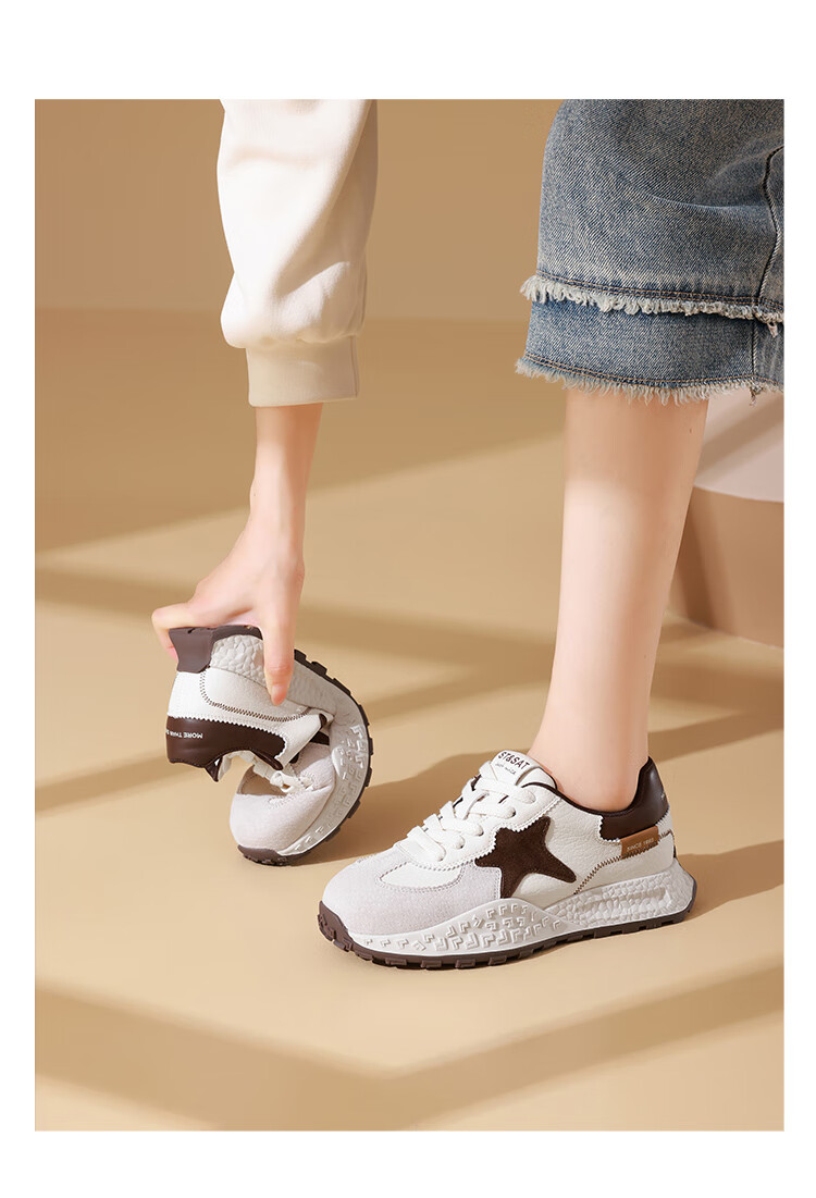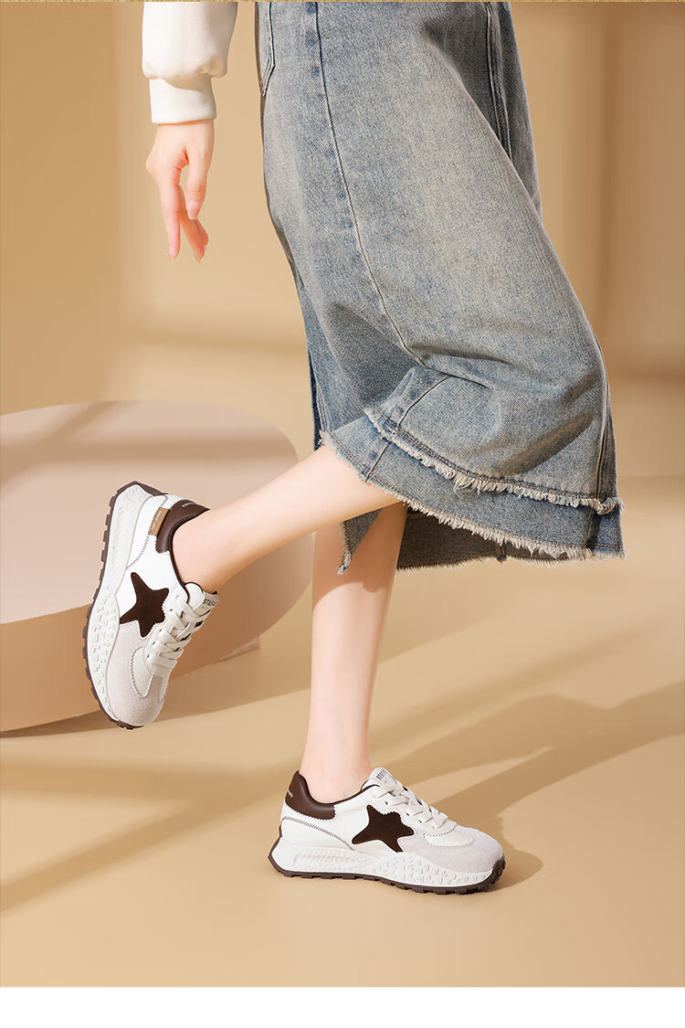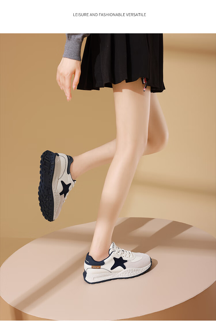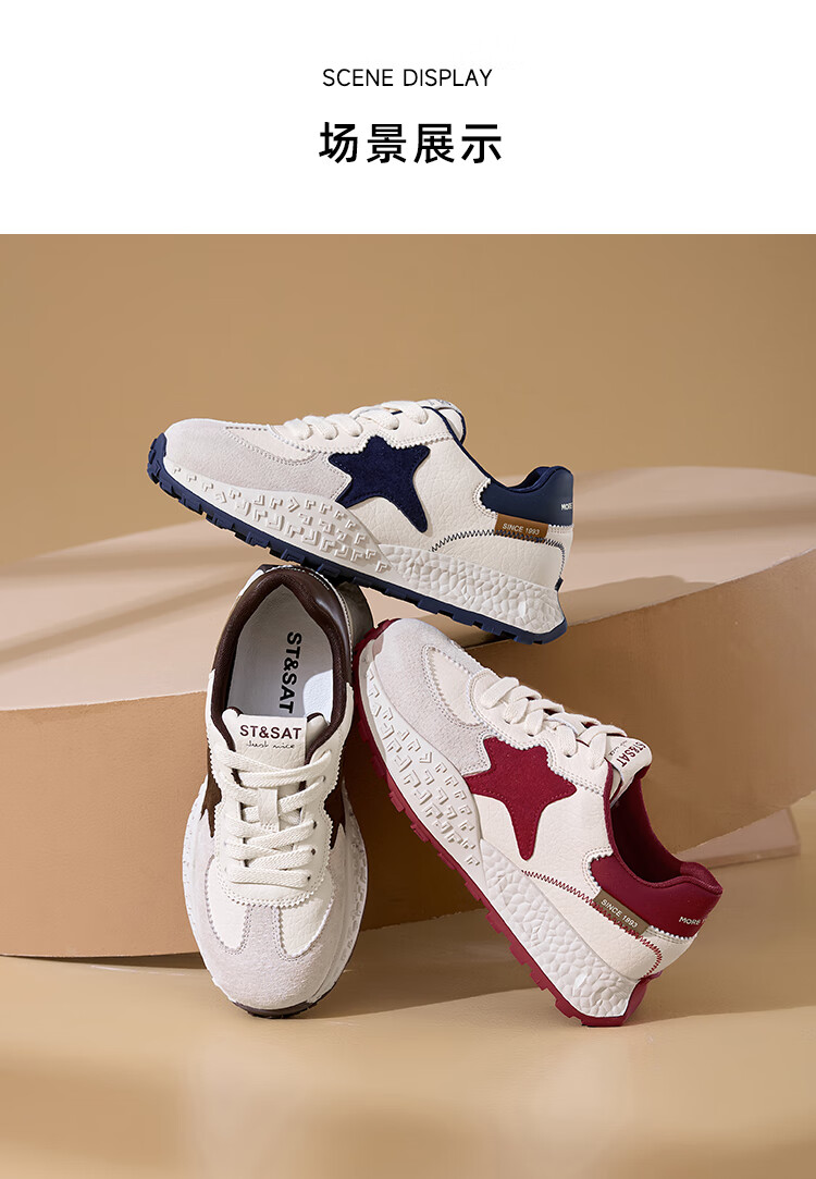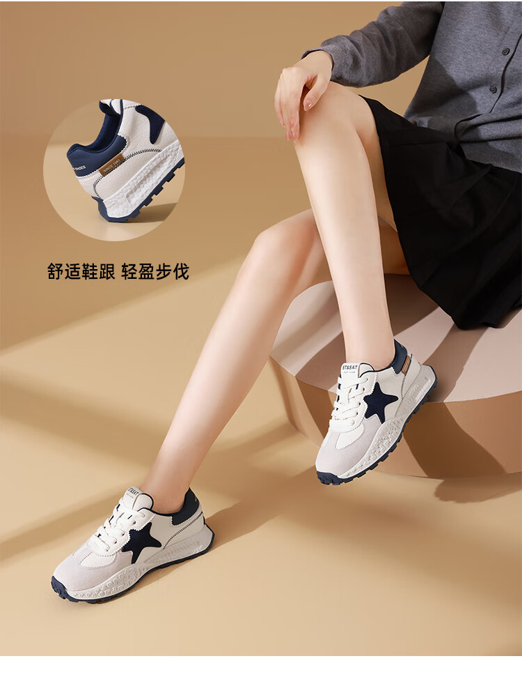 星期六时尚百搭休闲女鞋2025秋季新款学院风运动阿甘鞋MTSSD3112C5D 米/红 35
