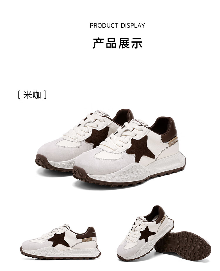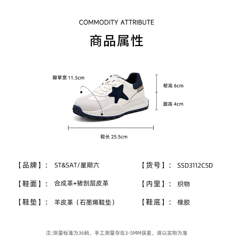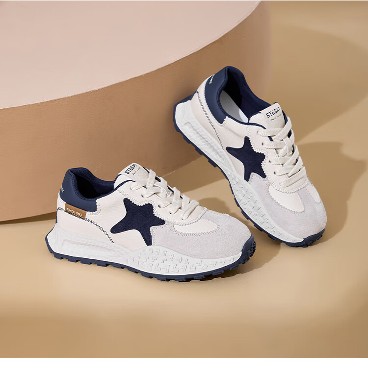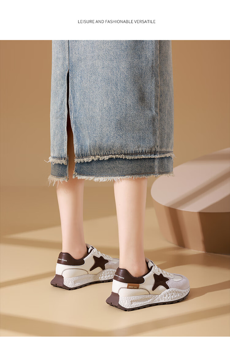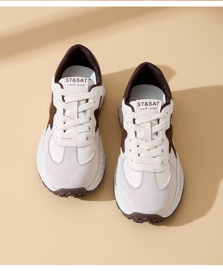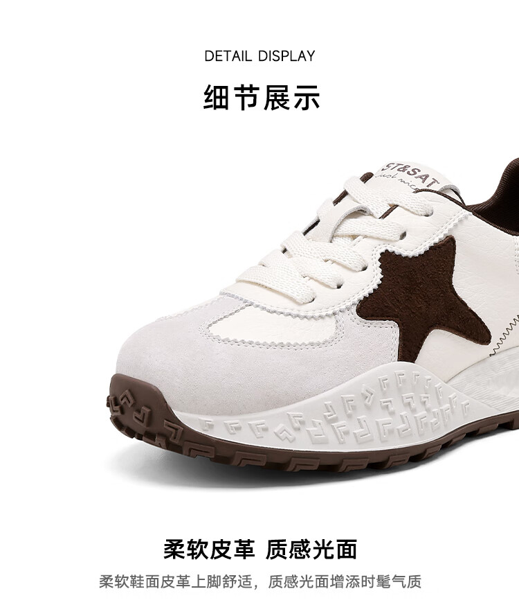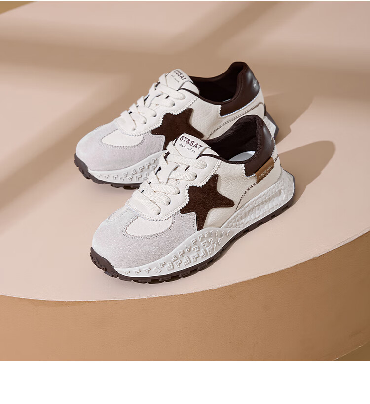 星期六时尚百搭休闲女鞋2025秋季新款学院风运动阿甘鞋MTSSD3112C5D 米/红 35