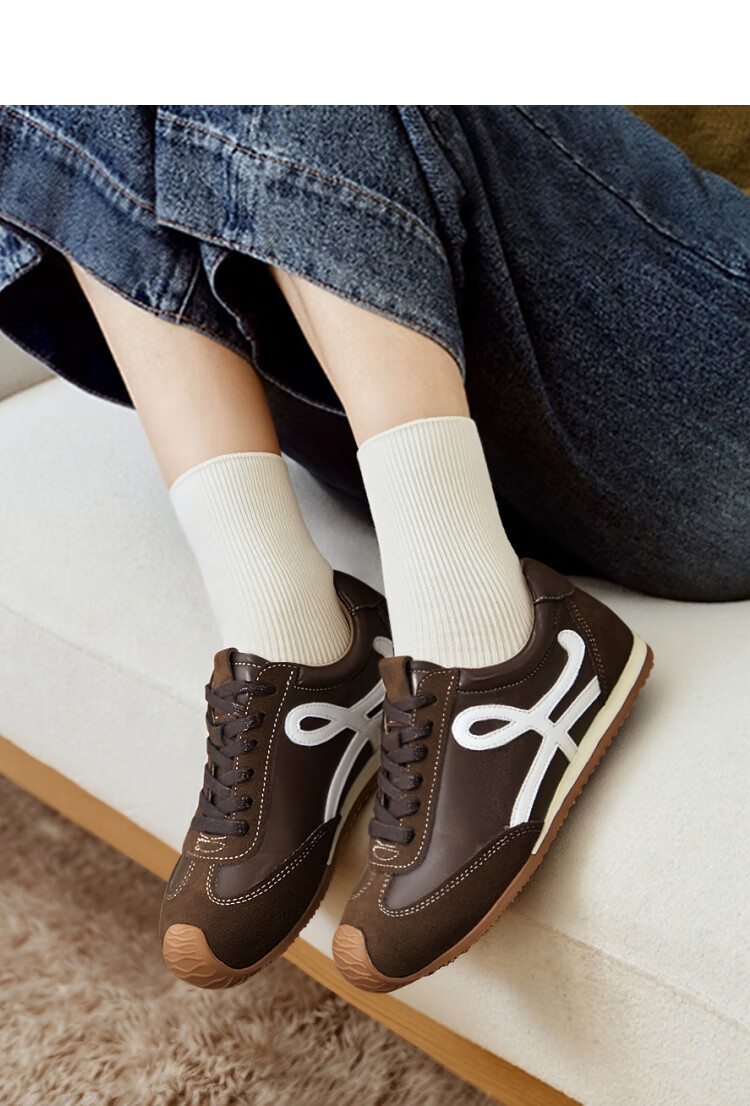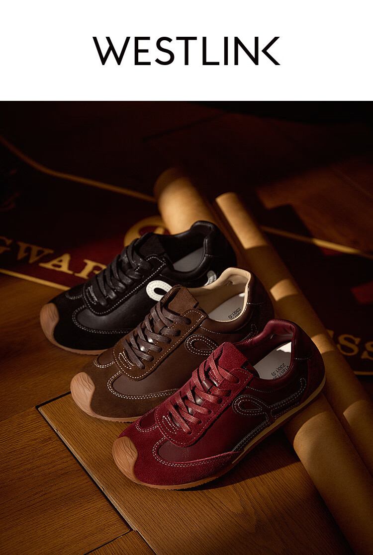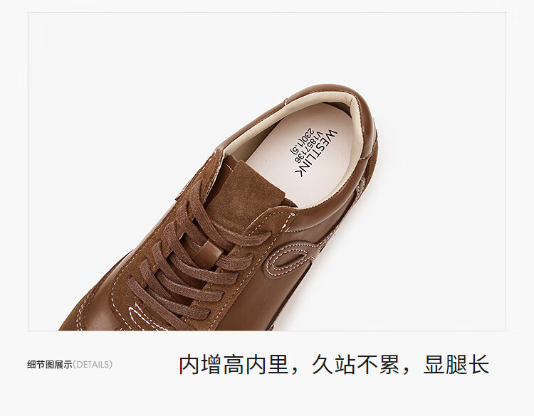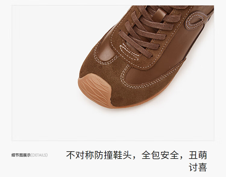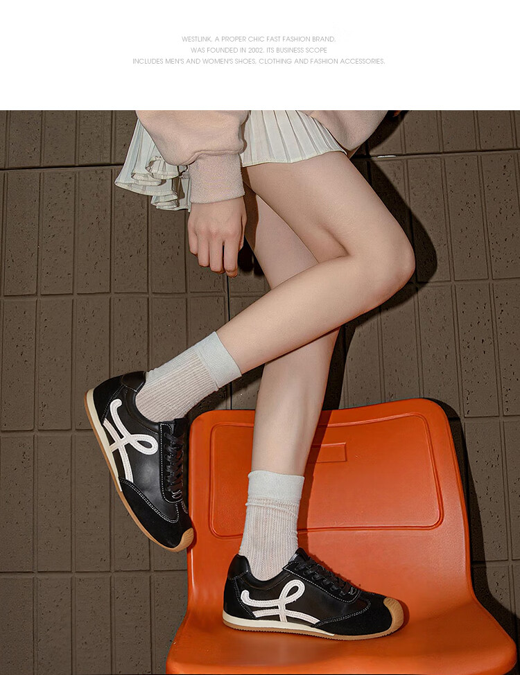西遇(Westlink)内增高德训鞋女2025新款秋季丑萌复古休闲鞋子歪头运动鞋 黑色 36 (230)