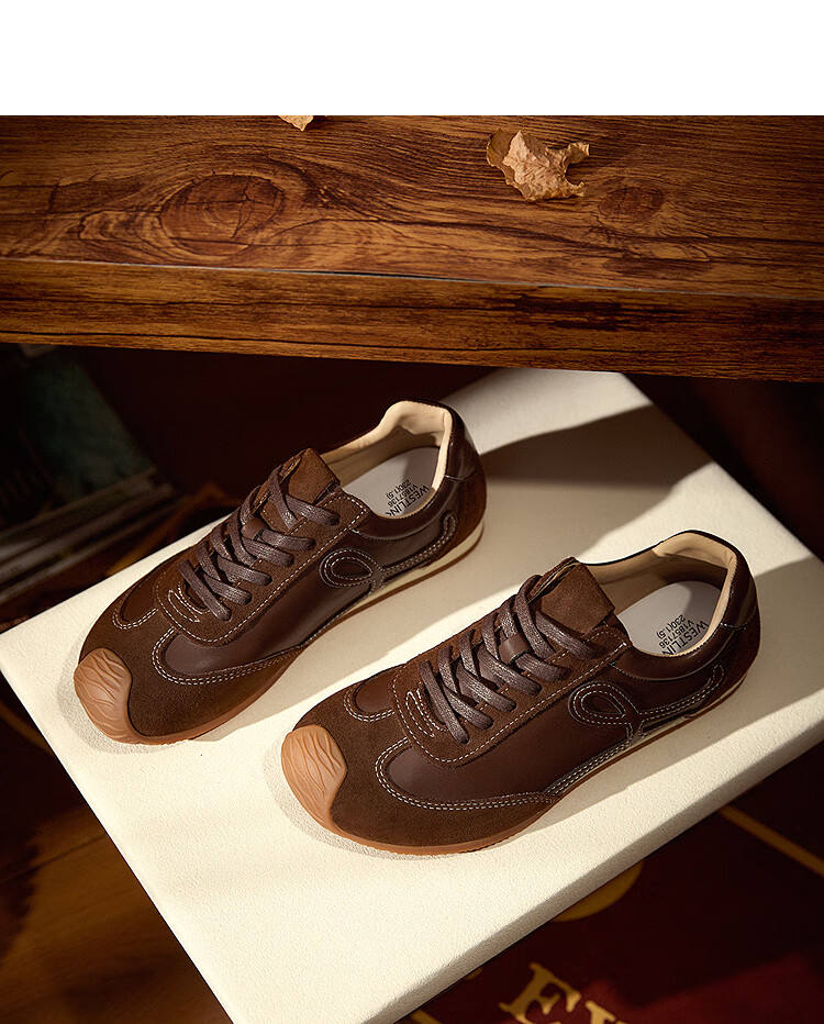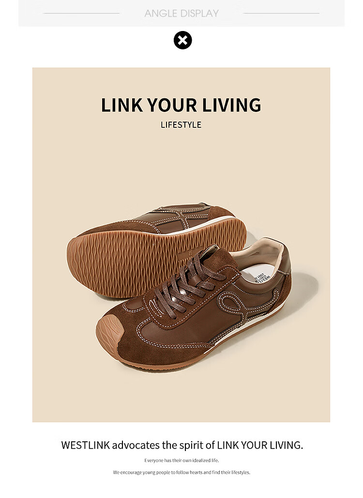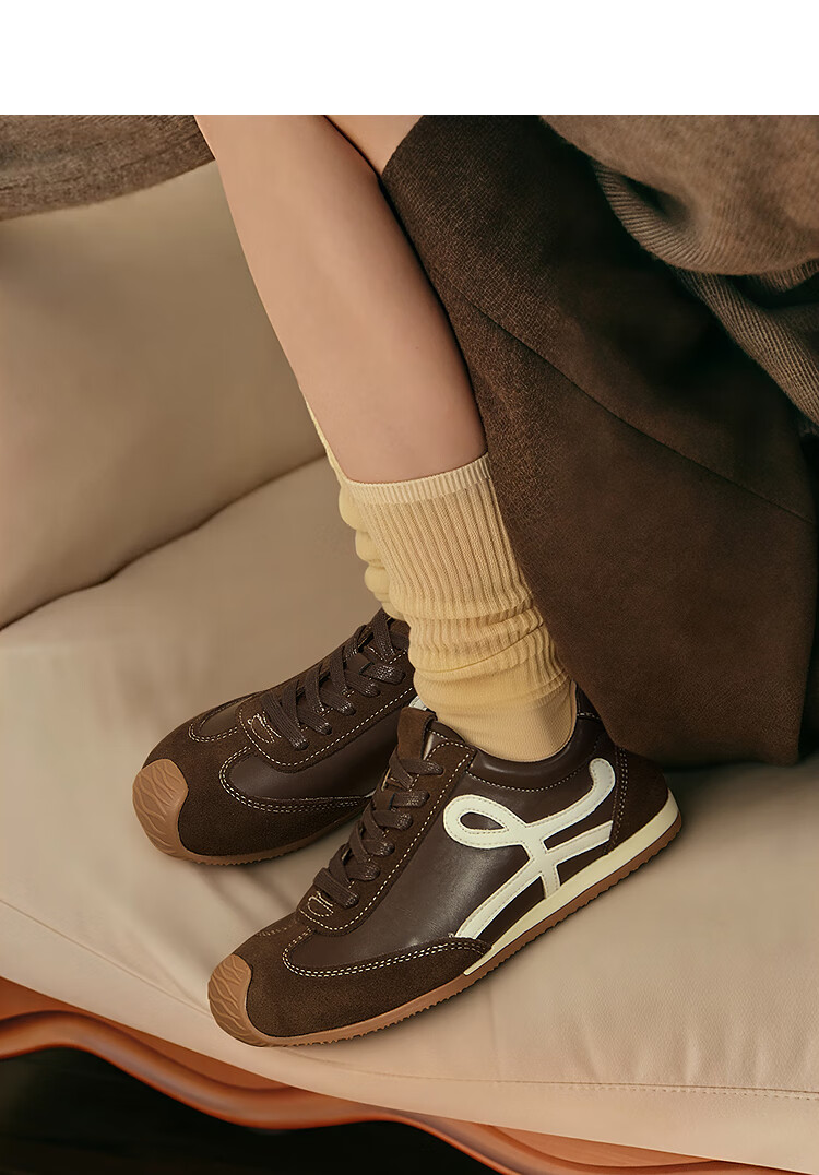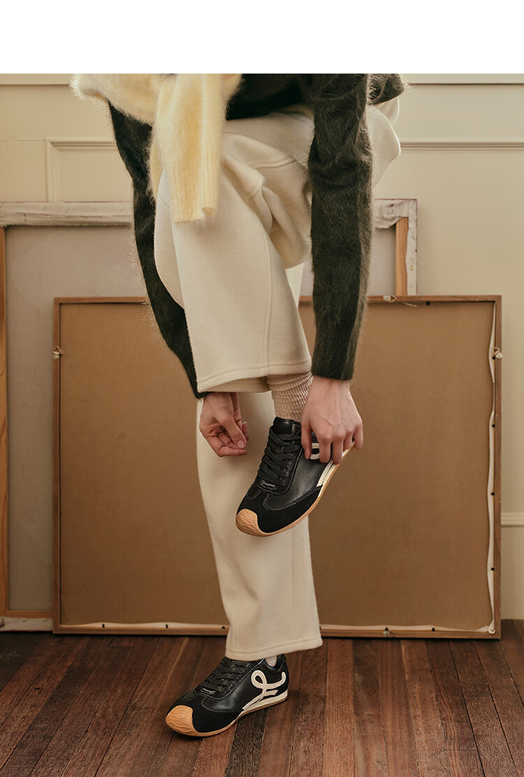 西遇(Westlink)内增高德训鞋女2025新款秋季丑萌复古休闲鞋子歪头运动鞋 黑色 36 (230)