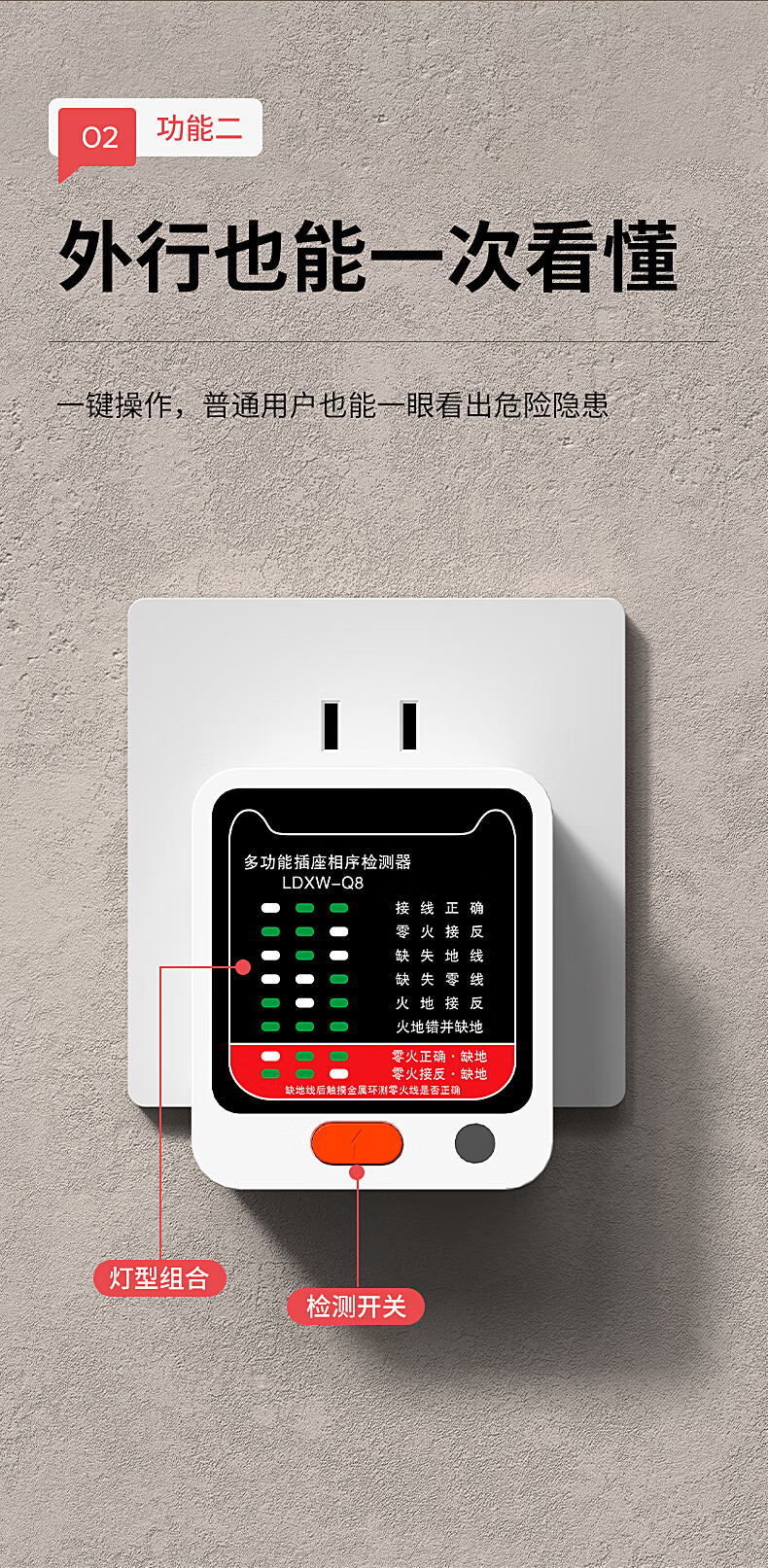 FDD国际电工工地智能数显漏电相位检测仪10A/16A通用多功能线路电源性验电器 基础款-相位检测仪
