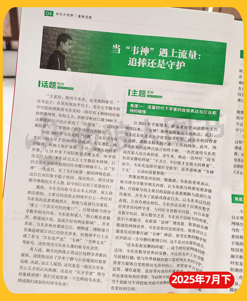 新作文第一时间杂志2025年5-10月【全年/半年订阅/思辨读写可选】高中生语文写作高考作文素材过刊K 半年订阅【第一时间+思辨读写】25年10月起订