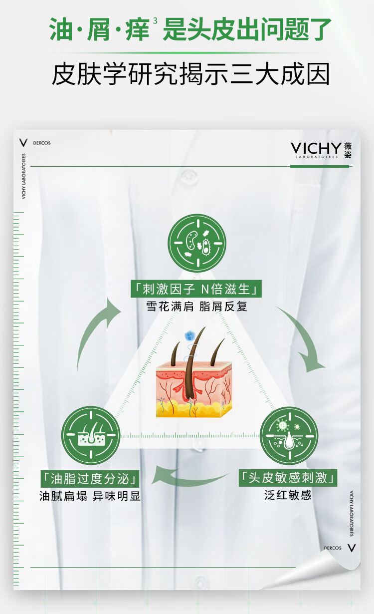 薇姿(VICHY)【热门商品】1%二硫化硒绿标控油去屑洗发水柔顺男士女士390ml