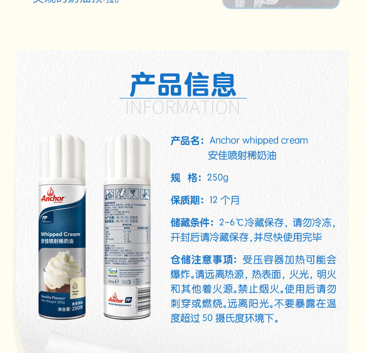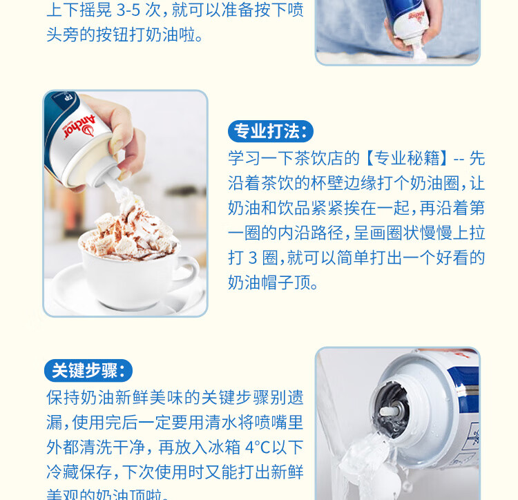 安佳(Anchor)比利时进口 喷射动物淡奶油稀奶油250g 烘焙原料奶盖甜品