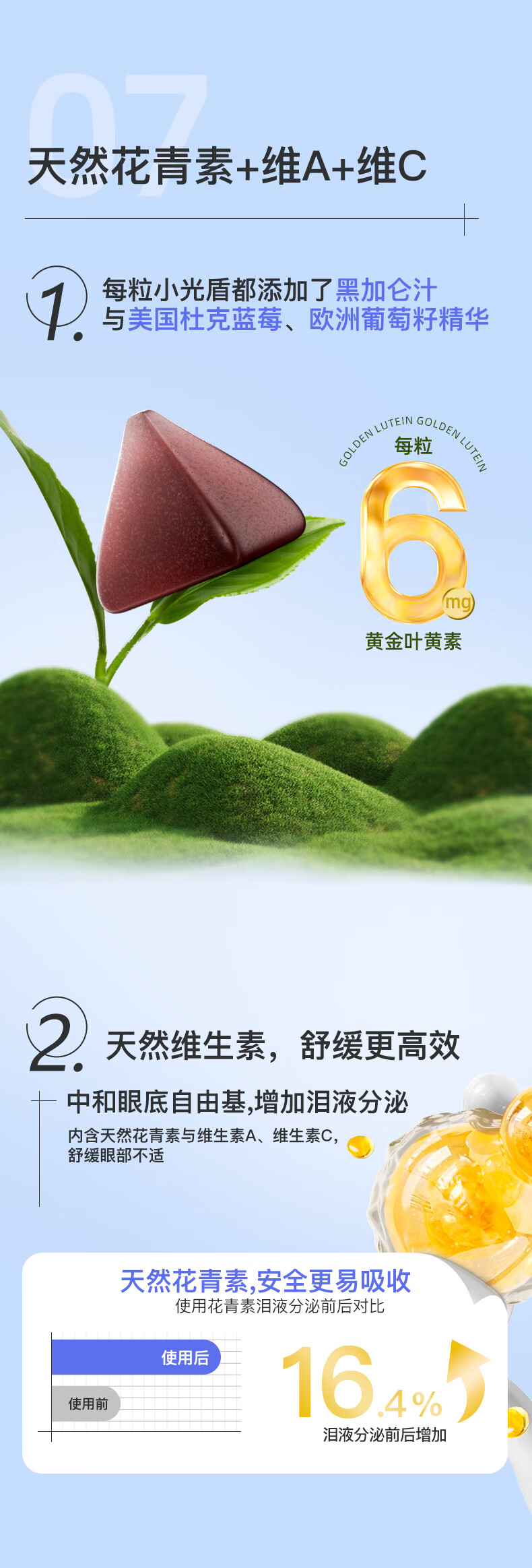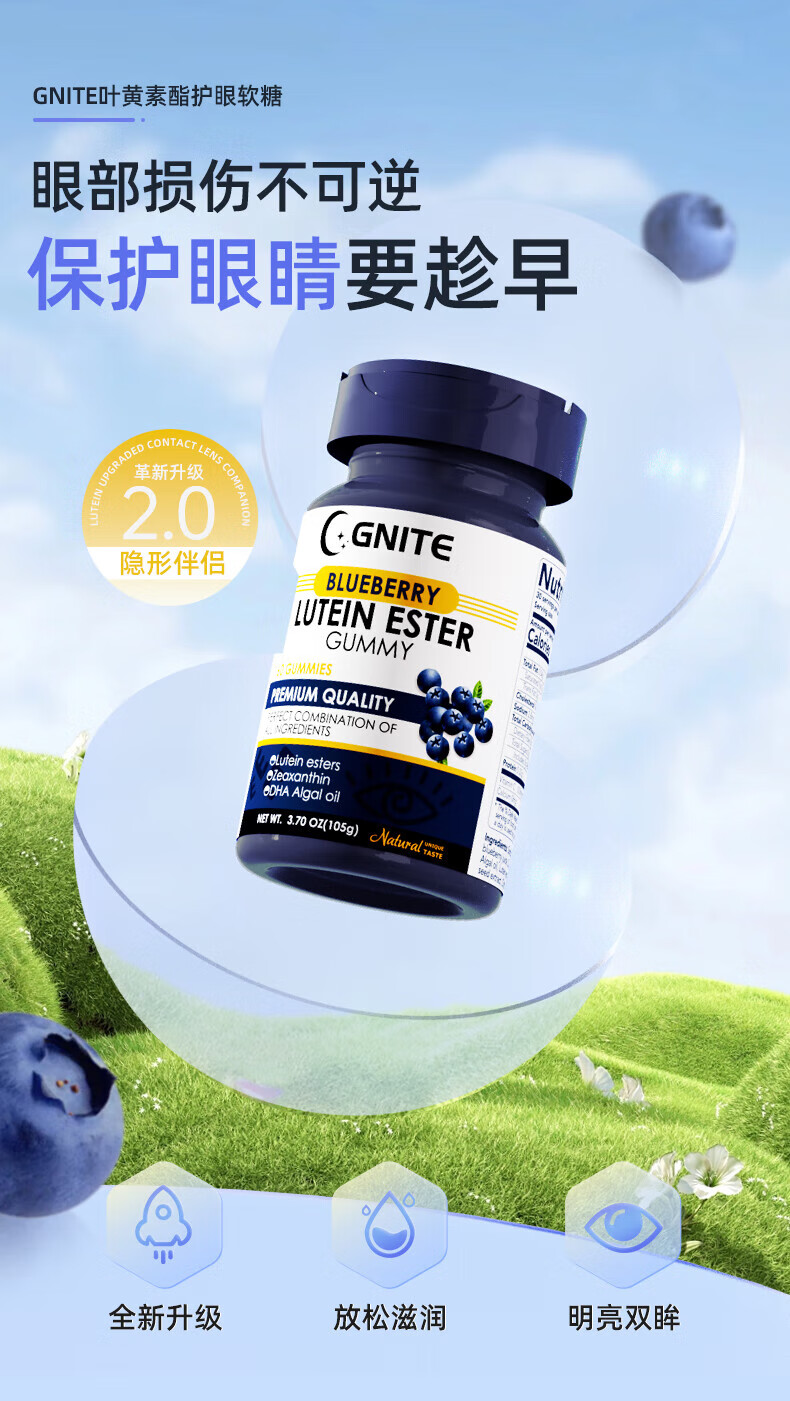 GNITE美国小分子蓝莓叶黄素酯软糖60粒6mg叶黄素软糖儿童叶黄素成人 三代小光盾蓝莓叶黄素软糖60粒*2瓶