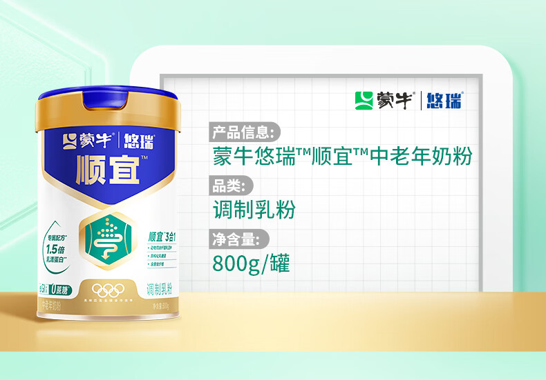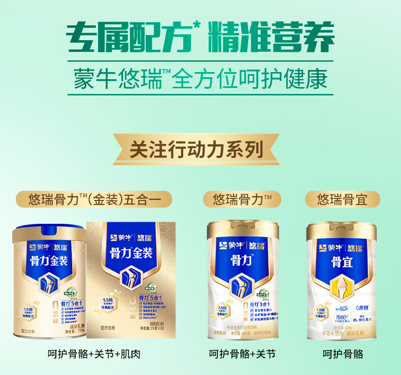 蒙牛杨紫推荐悠瑞中老年奶粉800g/罐成人奶粉送长辈中秋礼品营养早餐 骨宜800gX2(送礼盒+足浴盆