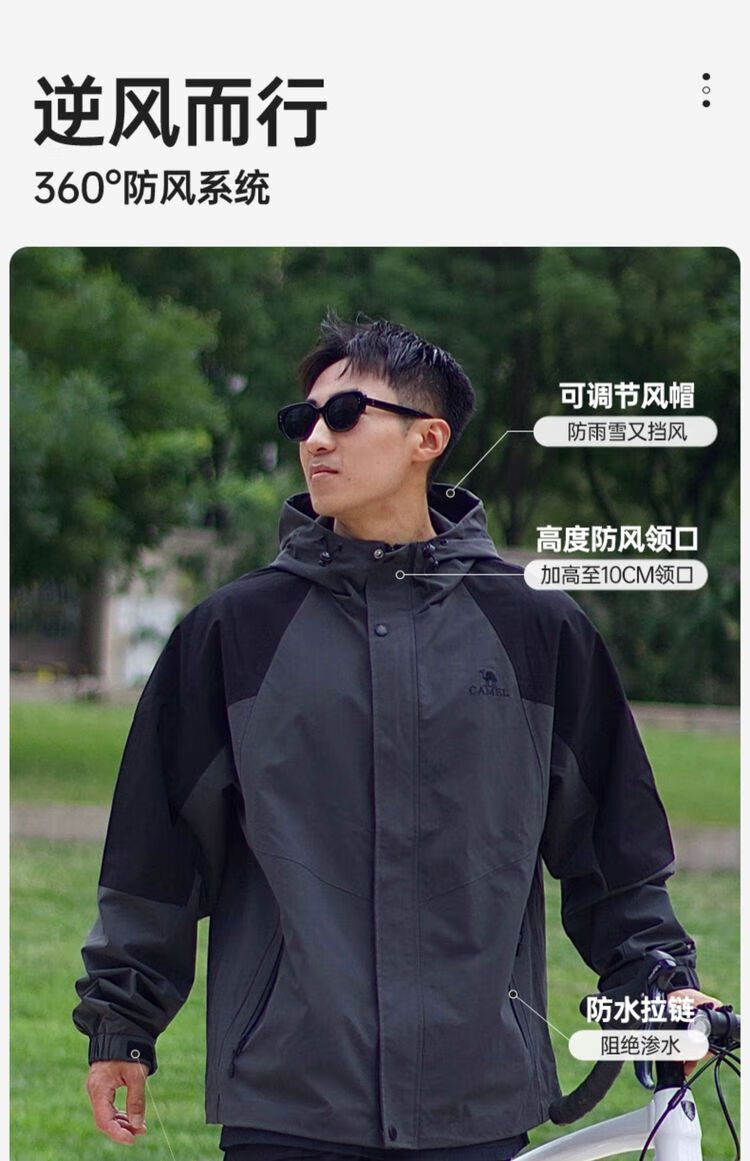 骆驼(CAMEL)骆驼男装夹克男款2024春秋新款户外防风防水工装时尚潮流运动外套