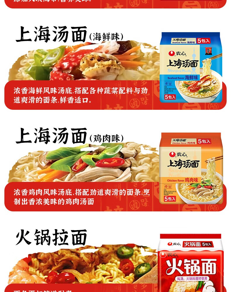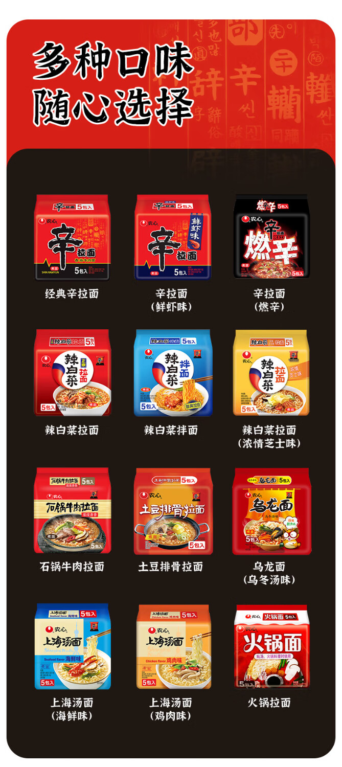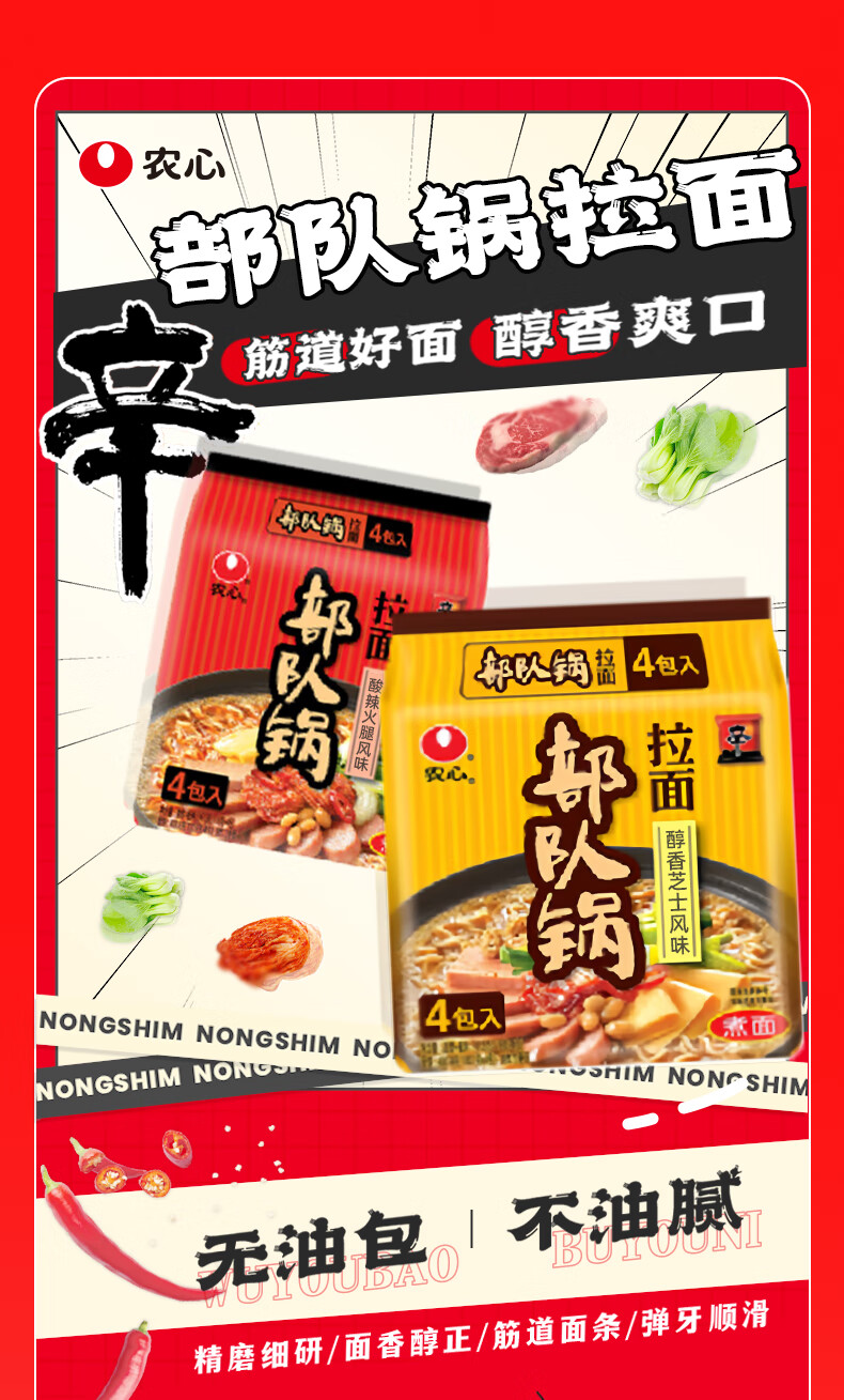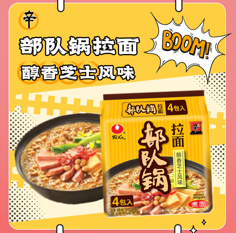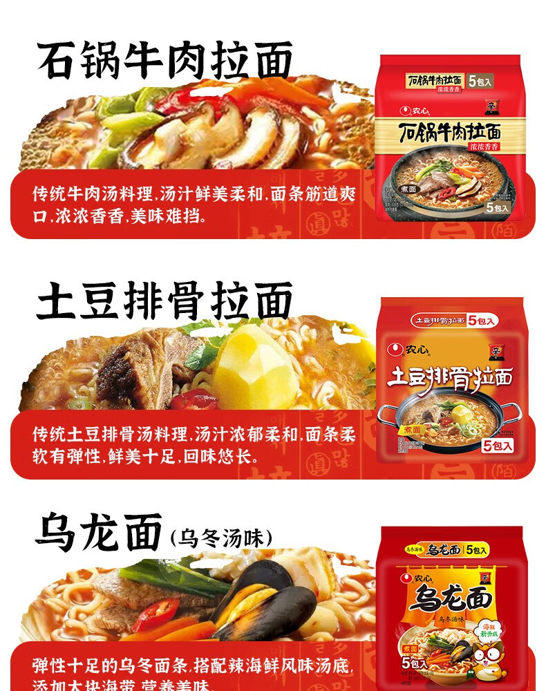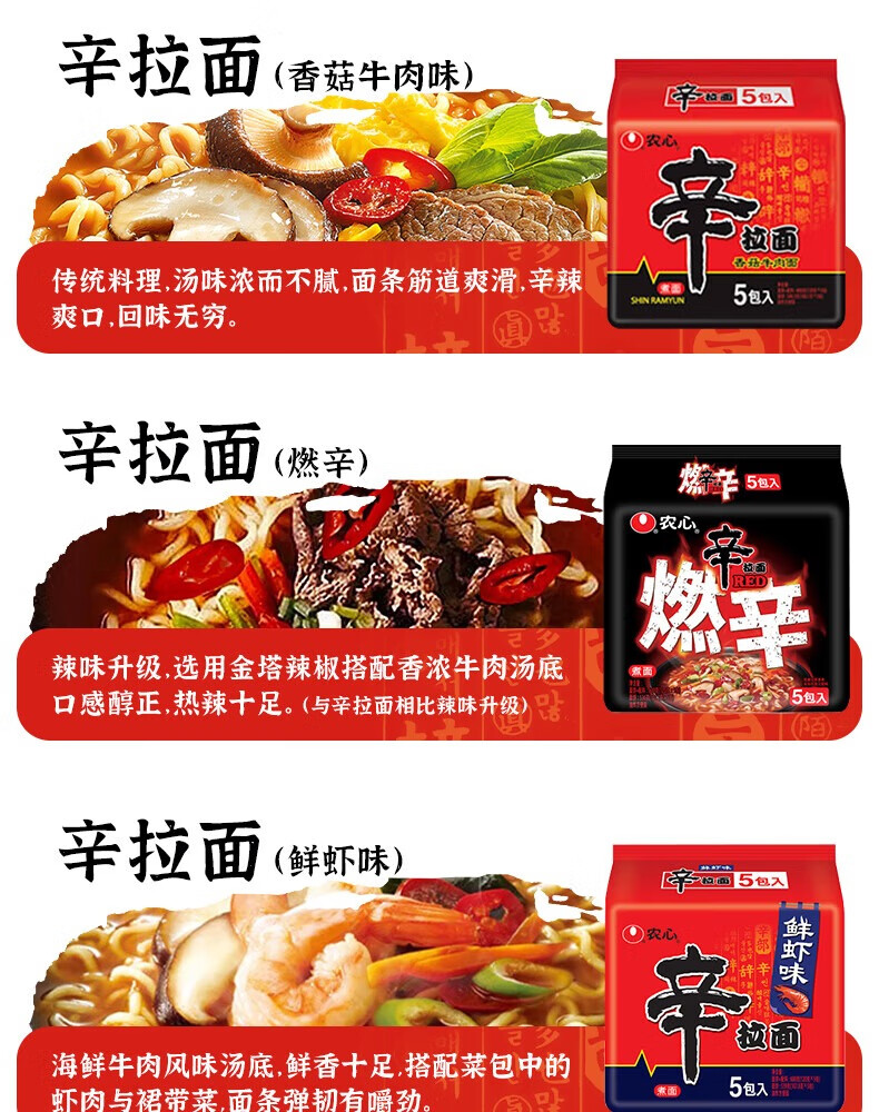 农心经典辛拉面泡面方便面多口味火锅部队锅拉面速食 辛拉面5连包