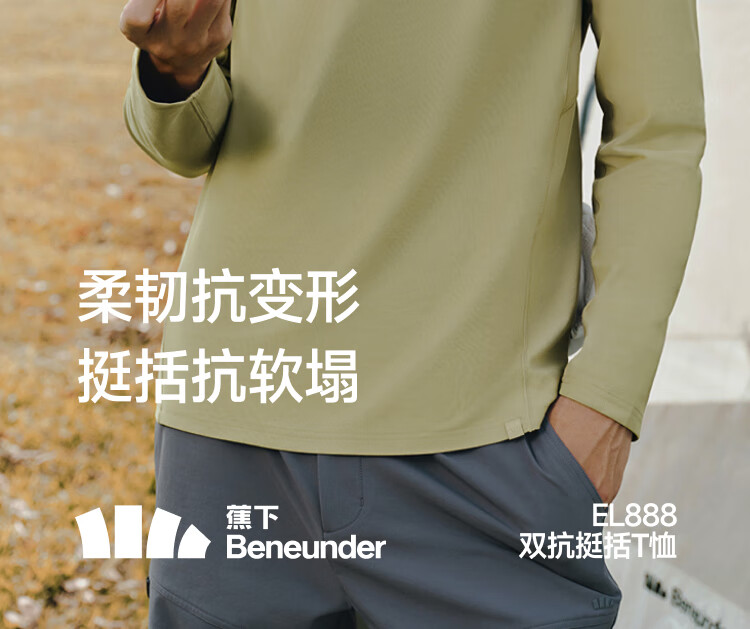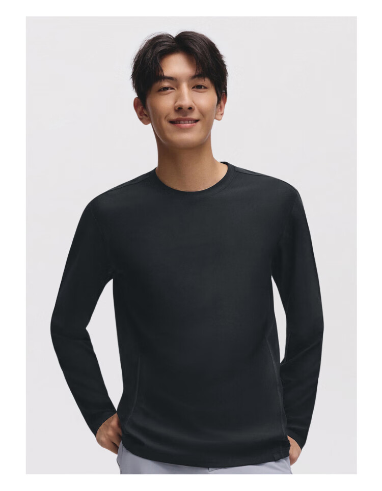 蕉下(beneunder)长袖t恤男士打底衫秋装保暖高弹吸湿速干宽松EL888漫暮黑XL