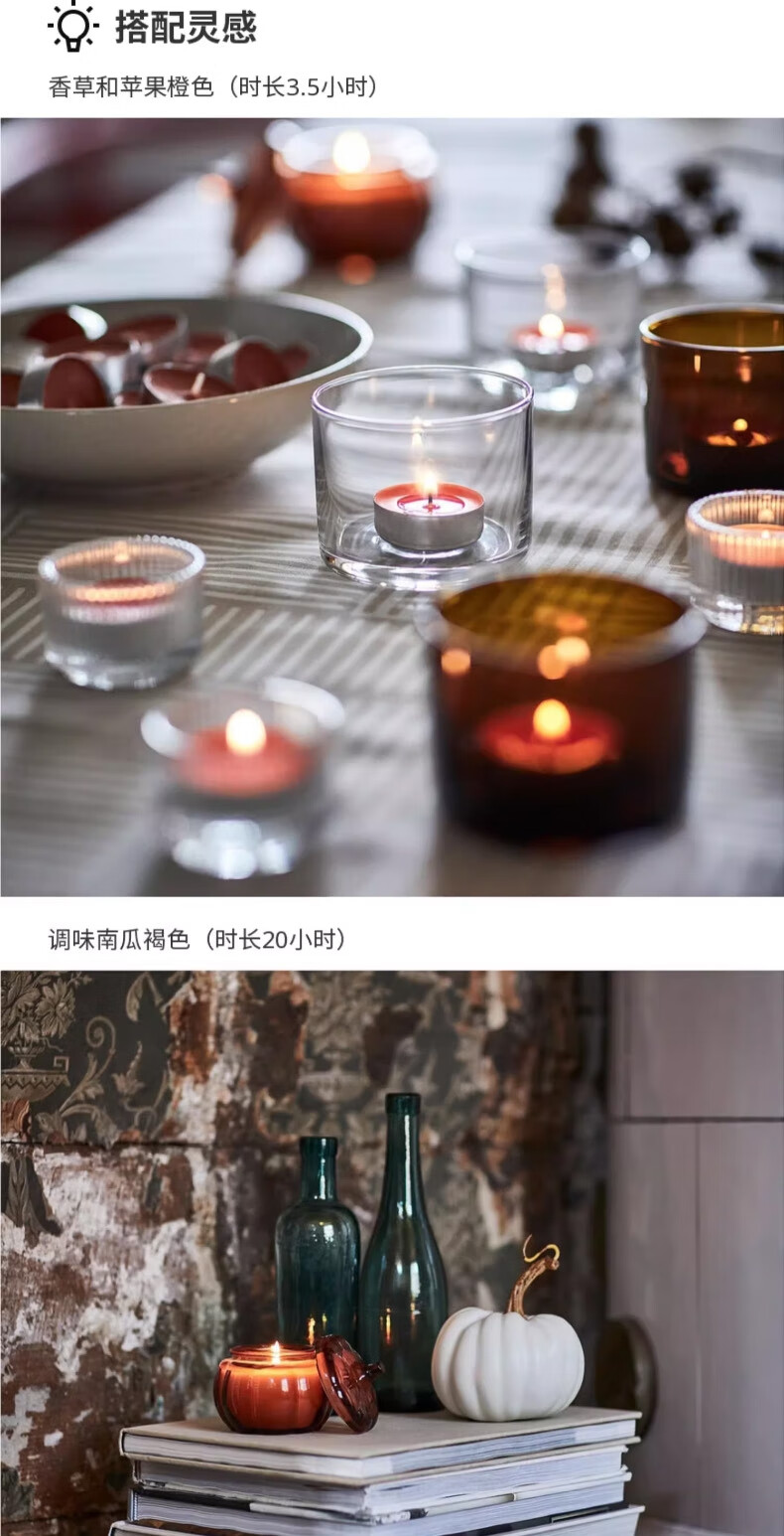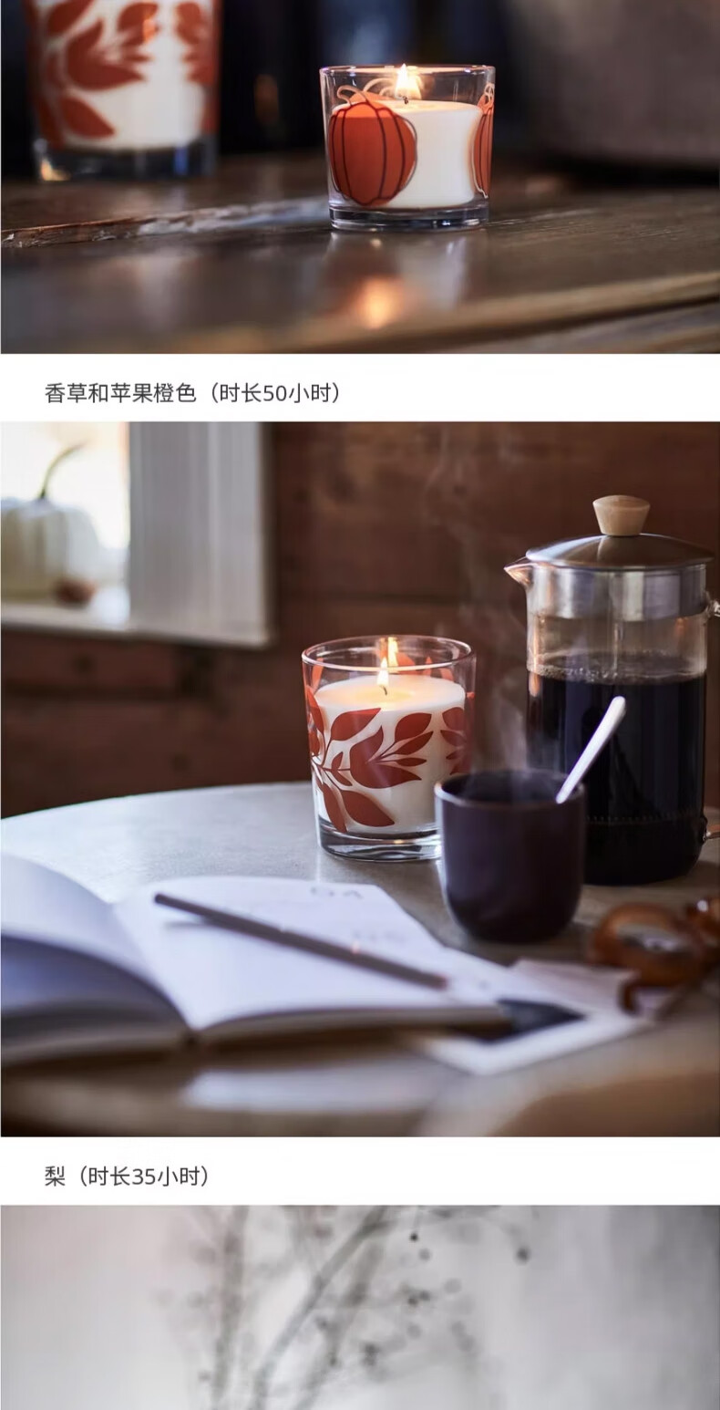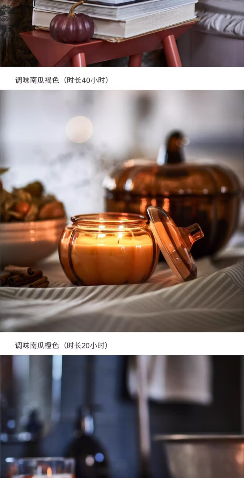宜家(IKEA)HOSTAGILLE赫斯塔吉尔蜡烛附盖碗香薰蜡烛烛台带盖 调味南瓜玻璃橙色20小时