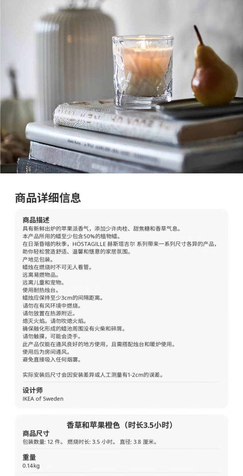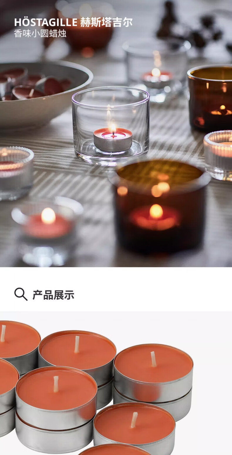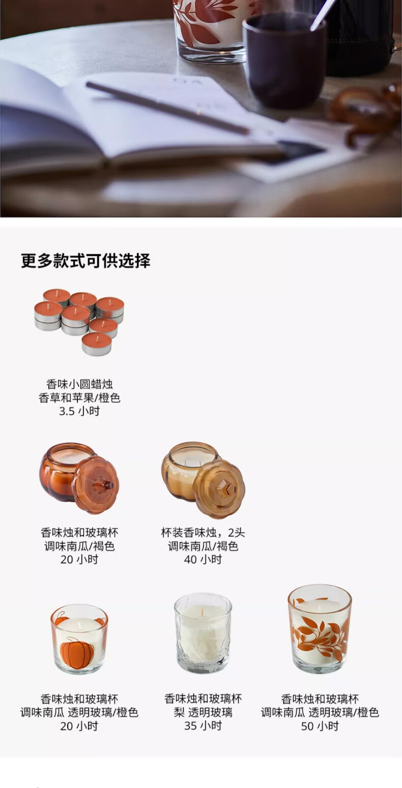 宜家(IKEA)HOSTAGILLE赫斯塔吉尔蜡烛附盖碗香薰蜡烛烛台带盖 调味南瓜玻璃橙色20小时