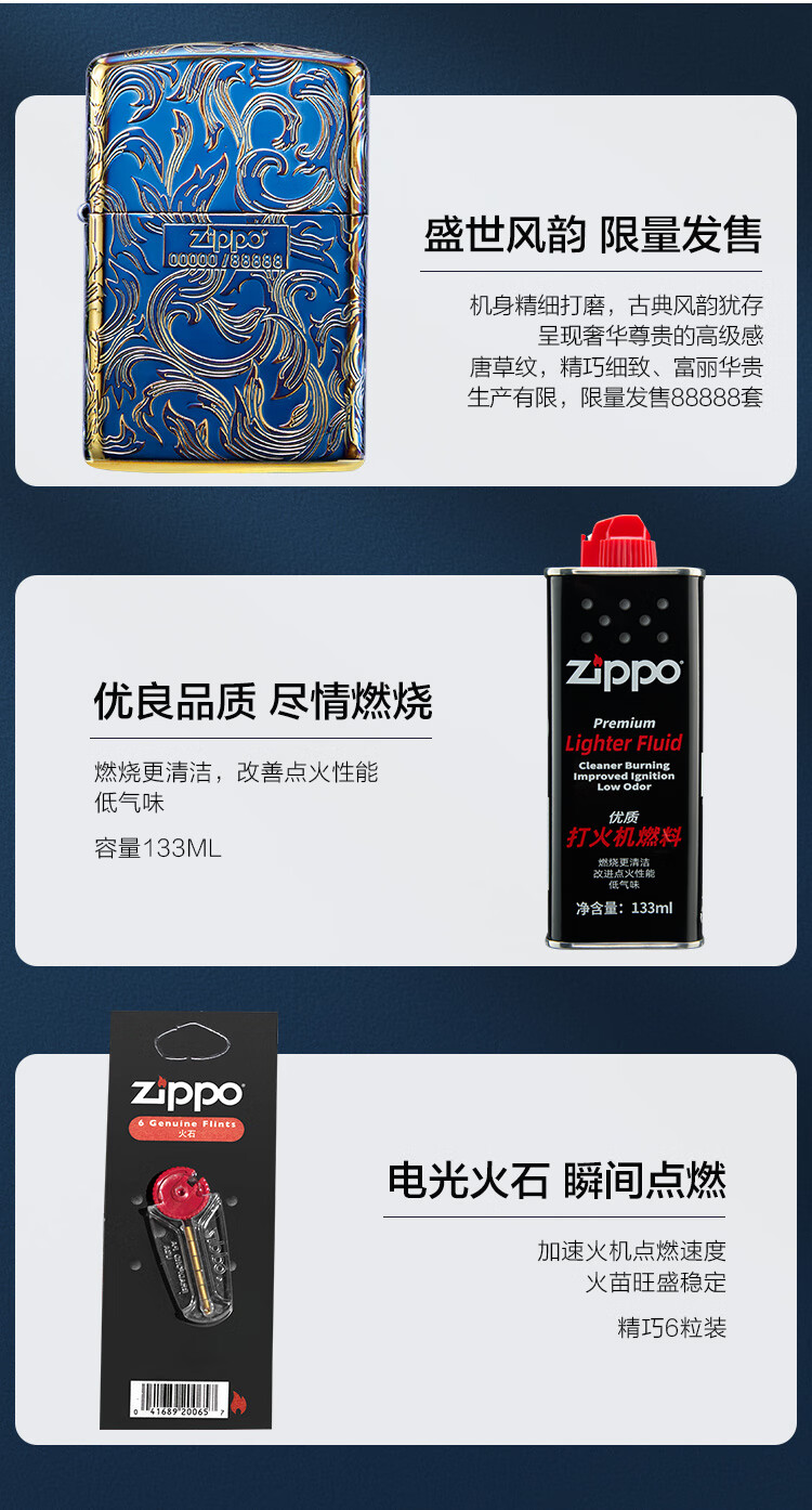 ZIPPO打火机之宝防风煤油 唐草系列唐草·熏金色限量款 生日礼物 套装