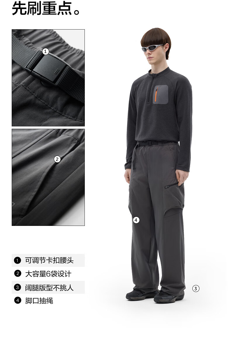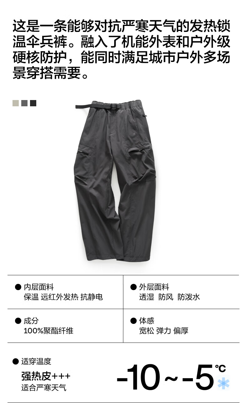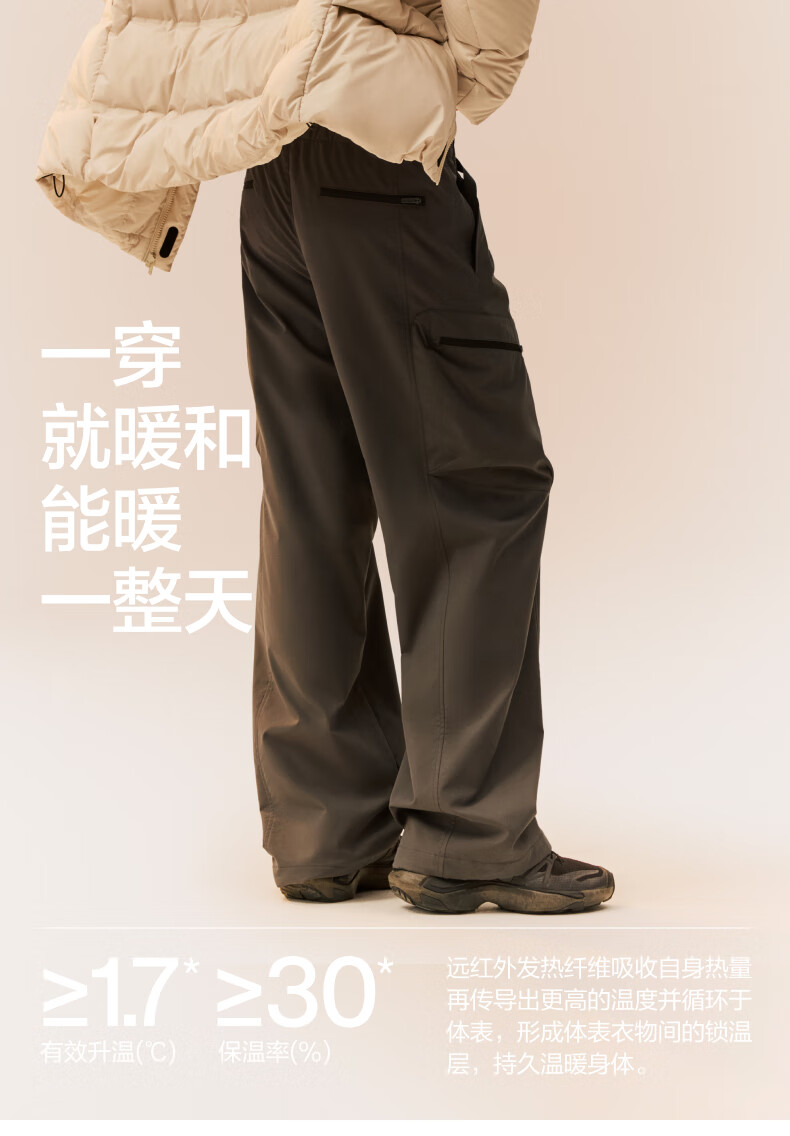 蕉内热皮505+++男士三防阔腿机能裤冬季保暖休闲裤户外伞兵工装长裤