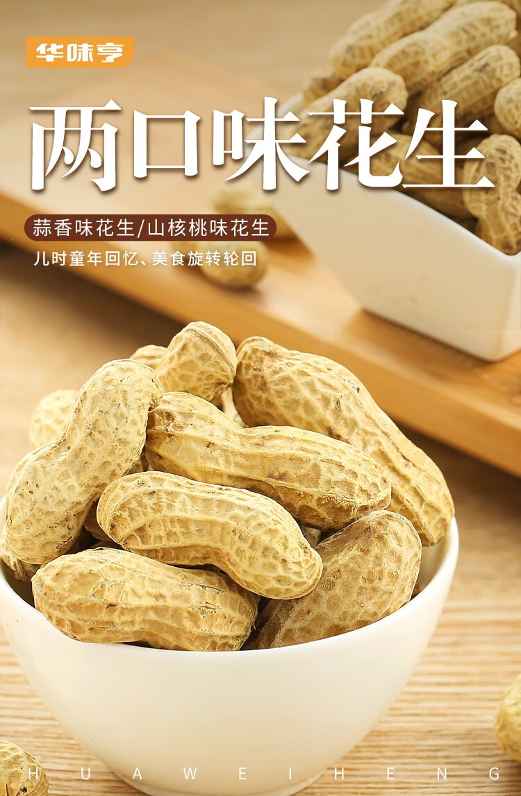 华味亨 420g两口味花生2斤 组合山核桃味/蒜香味 炒货零食花生年货 420g蒜香味+420g山核桃味(共2袋)
