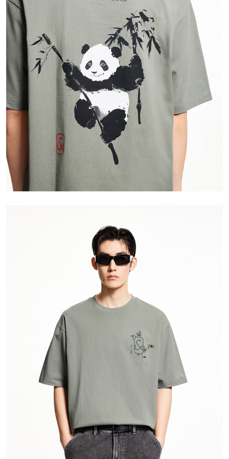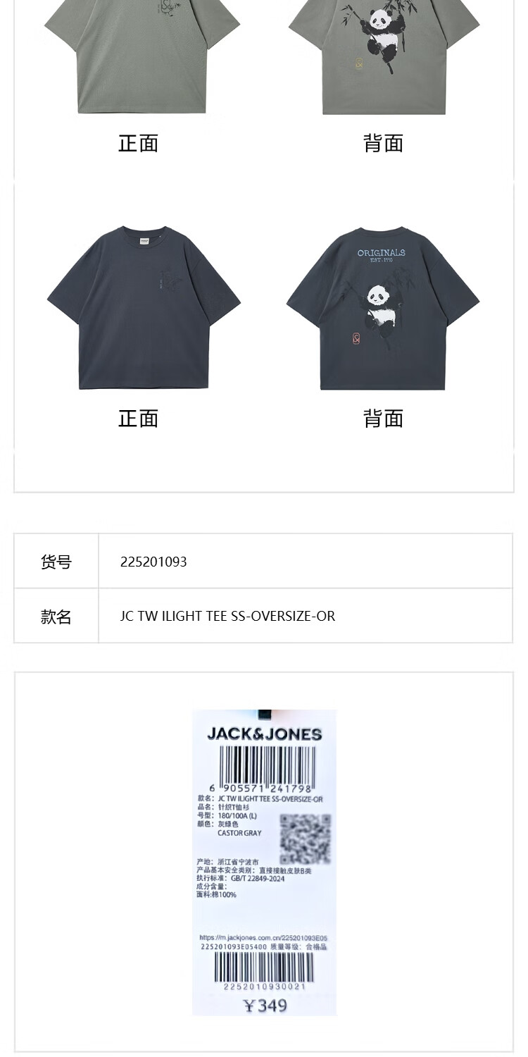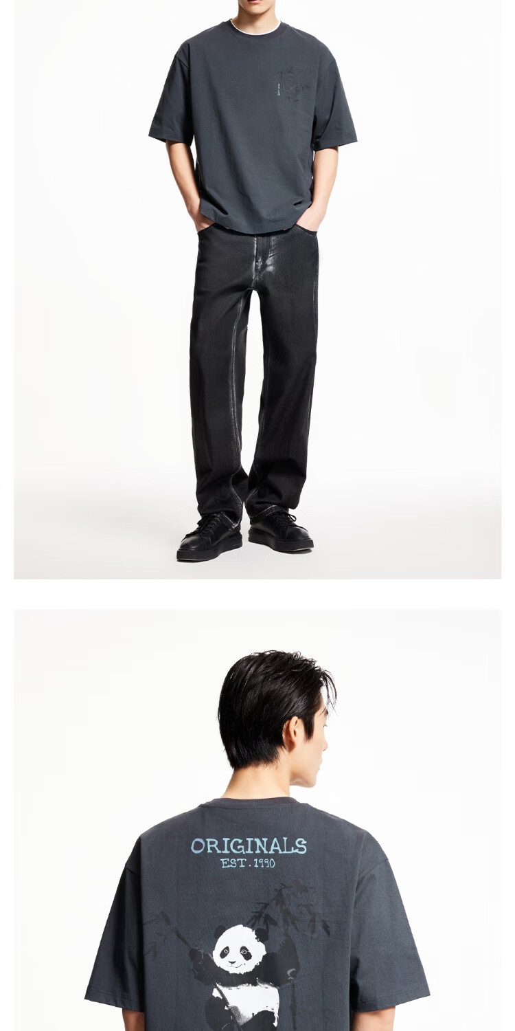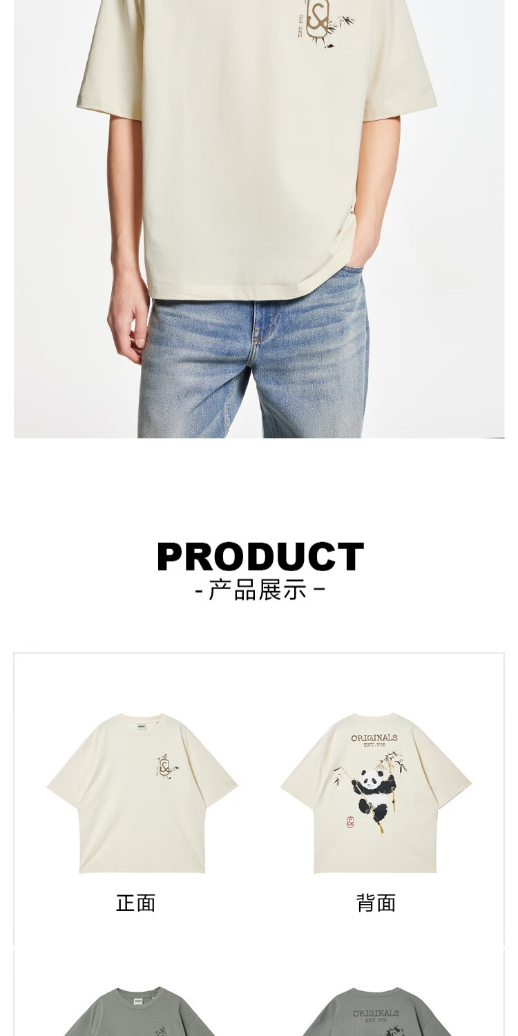 杰克·琼斯(JACK&JONES) 百搭潮流胸前肌理感胶印背后熊猫图案T恤短袖上衣男装225201093