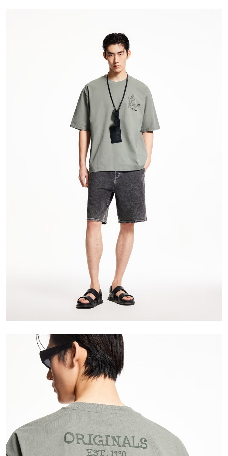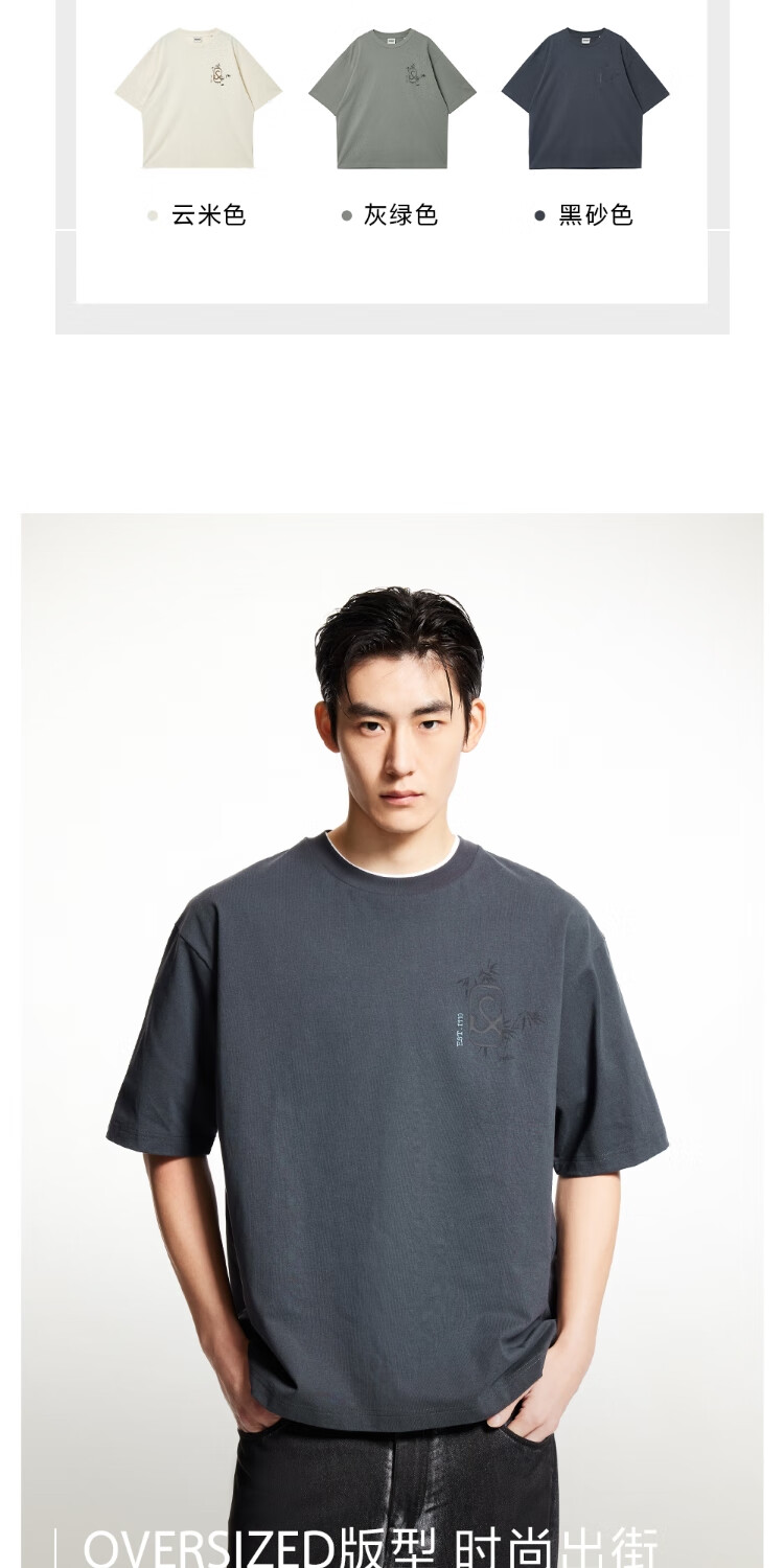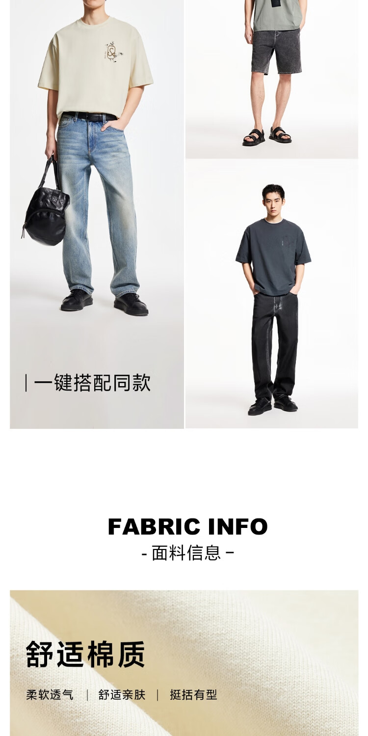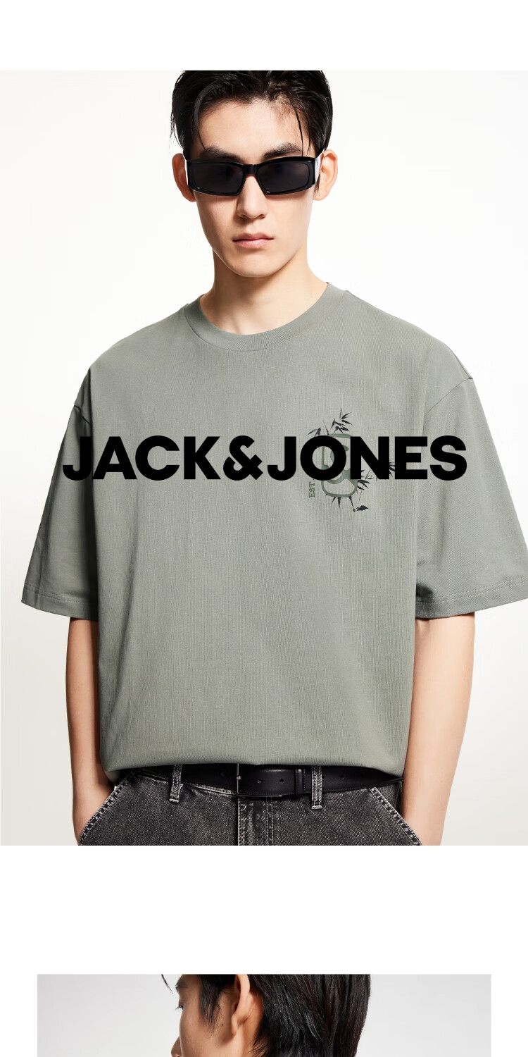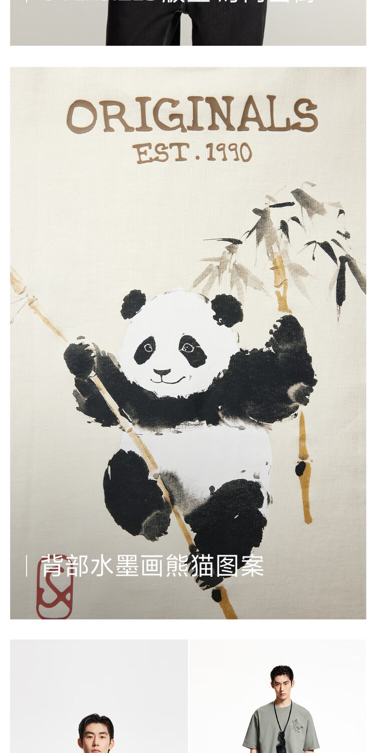 杰克·琼斯(JACK&JONES) 百搭潮流胸前肌理感胶印背后熊猫图案T恤短袖上衣男装225201093