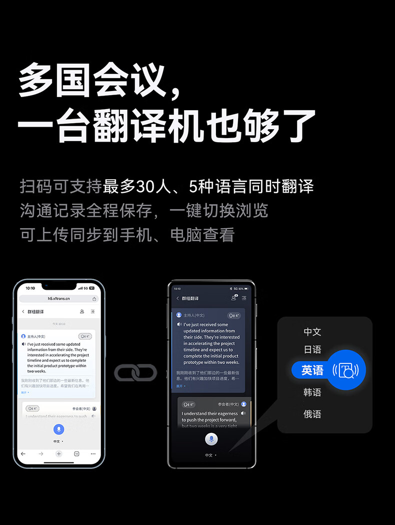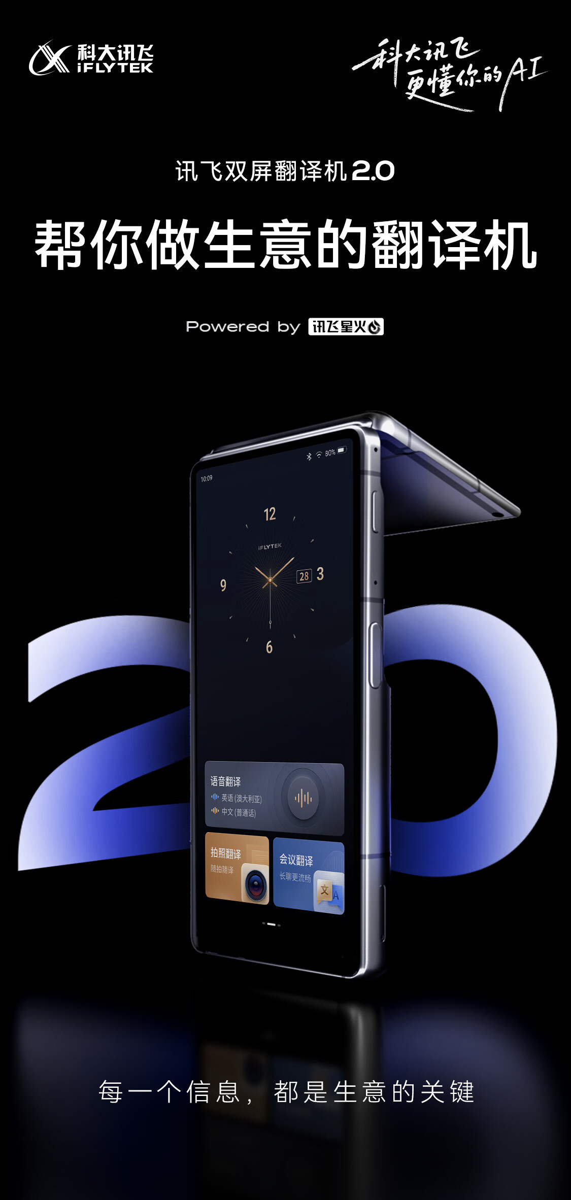 科大讯飞双屏翻译机2.0 多语种离线翻译器 同声字幕翻译 行业翻译 出国随身旅游口语实时翻译